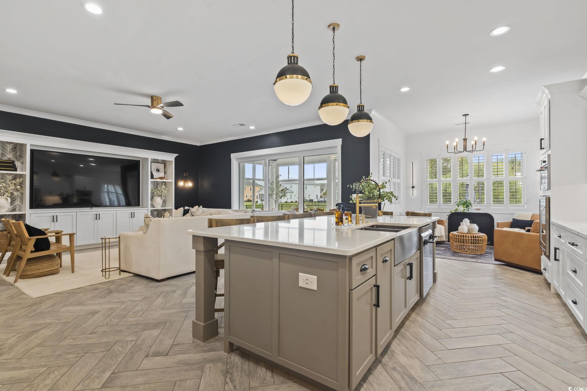 Huge price drop! Nestled on a truly unique and expansive 69-foot-wide lot, this stunning 5-bedroom and 4-full bathroom home offers an unparalleled living experience with captivating pond and clubhouse views. Unlike the standard 42-foot wide lots to the rear of Waterway Palms Plantation's Clubhouse, this property boasts ample space and privacy, complemented by lush, meticulously maintained landscaping. Once you step inside this intelligently designed layout you will see how it caters to both comfort and luxury. Entertainment and relaxation were paramount ideas while creating this home design as well as being functional for active home owners. With a wide open gathering space including hand crafted cabinetry throughout the home made in North Carolina, 10-foot ceilings, 8-foot solid core doors on the first floor, grand kitchen with possibly the largest island in the community that comfortably seats six people, walk in pantry and stainless steel appliances. To further expand the already ample sized gathering space, the 12-foot sliding glass door opens up ALL THE WAY into your EZ Breeze back patio. You have the ability to enjoy all seasons while being protected from the elements or open it up for a refreshing breeze. The backyard is a dream space that includes a sleek salt water black plaster pool and oversized hot tub surrounded by elegant pillow edge pavers creating a personal resort-like sanctuary. Your magnificent primary bedroom is also located on the first floor and is complete with picture frame moulding, ""his & her"" closets with downstairs laundry, two large marble top bathroom vanities with tons of storage and a spa-like walk-through shower with 3 shower heads. While crafting the design of the primary suite it was important not to have a second story living space above to keep the room quiet and free from noise above. You will truly enjoy the peace and quiet in this room. Additionally on the first floor is an in-law-suite complete with 36-inch wide doorways and a zero entry shower, dedicated office space complete with built-in desk and finally a well appointed mudroom for a seamless transition from your outdoor adventures. We can't forget to note the oversized garage that includes tons of built-in storage and is large enough to accommodate 2 vehicles and a golf cart. Moving up to the second story you will find a bonus space with 4 built-in bunk beds complete with nightlights, shelving for books and snacks and also chargers for your electronics. Also in the bonus room is a snack station complete with a fridge and storage cabinet as well as an enormous storage closet for any hobby collector. Finally, to finish up the upstairs are three well sized bedrooms with walk-in closets, two full bathrooms and a second story laundry room as well. This exceptional property perfectly balances elegance and functionality, creating an ideal setting for entertaining, relaxation and family living. With the expansive lot and prime location offering serene pond views, luxurious features and thoughtfully crafted ideas, this home is a rare find. Call your trusted Realtor partner today to schedule your private tour.