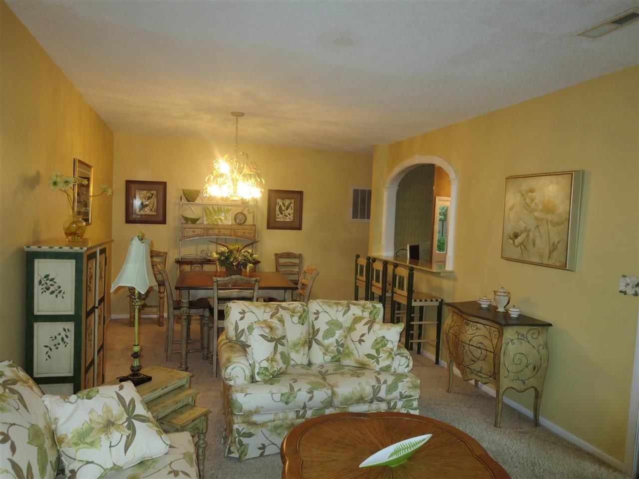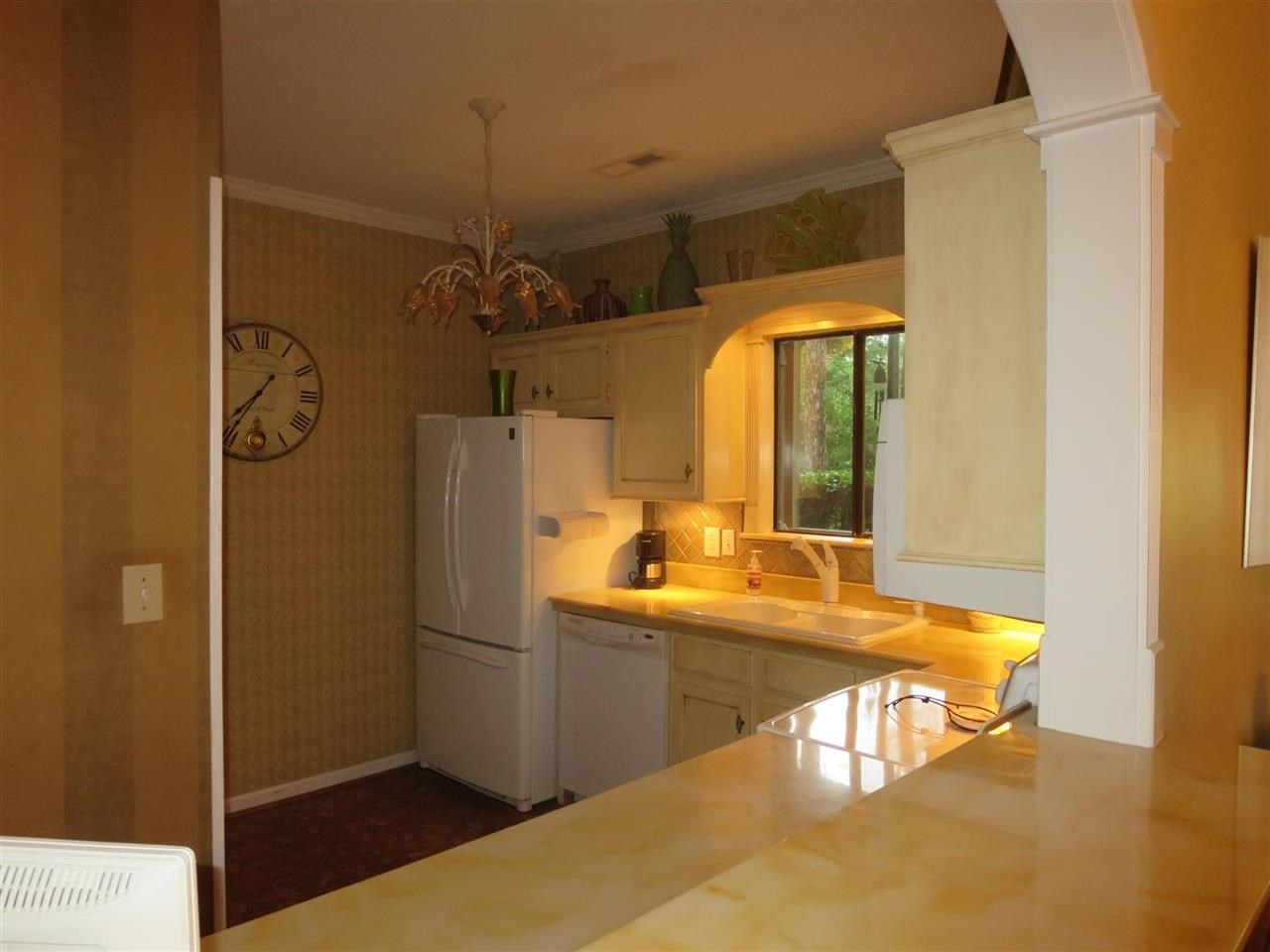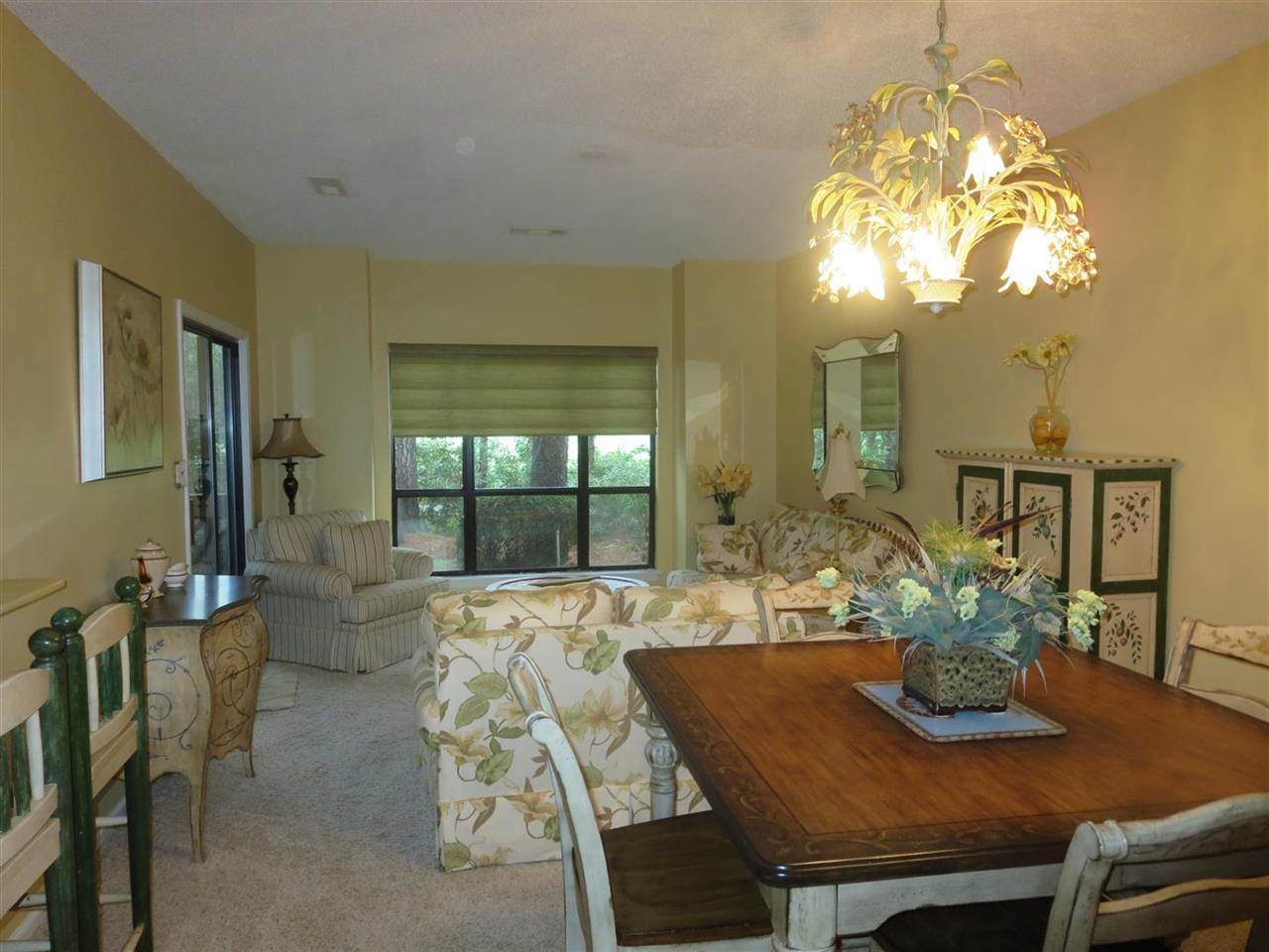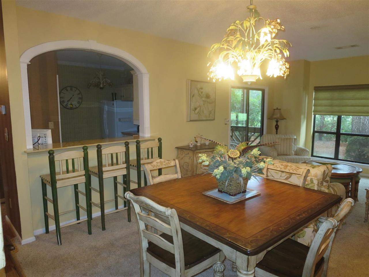 Beautifully appointed, warm and inviting, this renovated property is a wonderful opportunity to own this FIRST FLOOR, 2 bedroom/2 bath golf villa. Only 2 miles to the ocean,and within minutes to the Murrells Inlet Marshwalk, Huntington Beach State Park, and Brookgreen Gardens. This small community is centrally located, yet tucked away among the pines and lush landscaping along the Indian Wells golf course. This end unit overlooks the greens and is perfectly shaded by the tall pines that line the course. A perfect spot to enjoy your morning coffee on the back screened in porch. Inside you will find detailing galore where there is a large living/dining room area with a breakfast bar overlooking the spacious, bright kitchen. The unit has been updated with lovely detailing from cork flooring, antique style cabinets, to arched molding over the breakfast bar. Furnishings and decoration items are being offered separately by the seller. Ask agent for details. Additional closet space has been added to the one bedroom and just adds to the already great closet spaces available throughout. Additionally there is an extra storage closet off of the porch. Short term rentals are not allowed by the C&Rs, which provides owner and renter stability. Square footage is approximate and not guaranteed. Buyer is responsible for verification. Act now...this one is sure to go quickly.