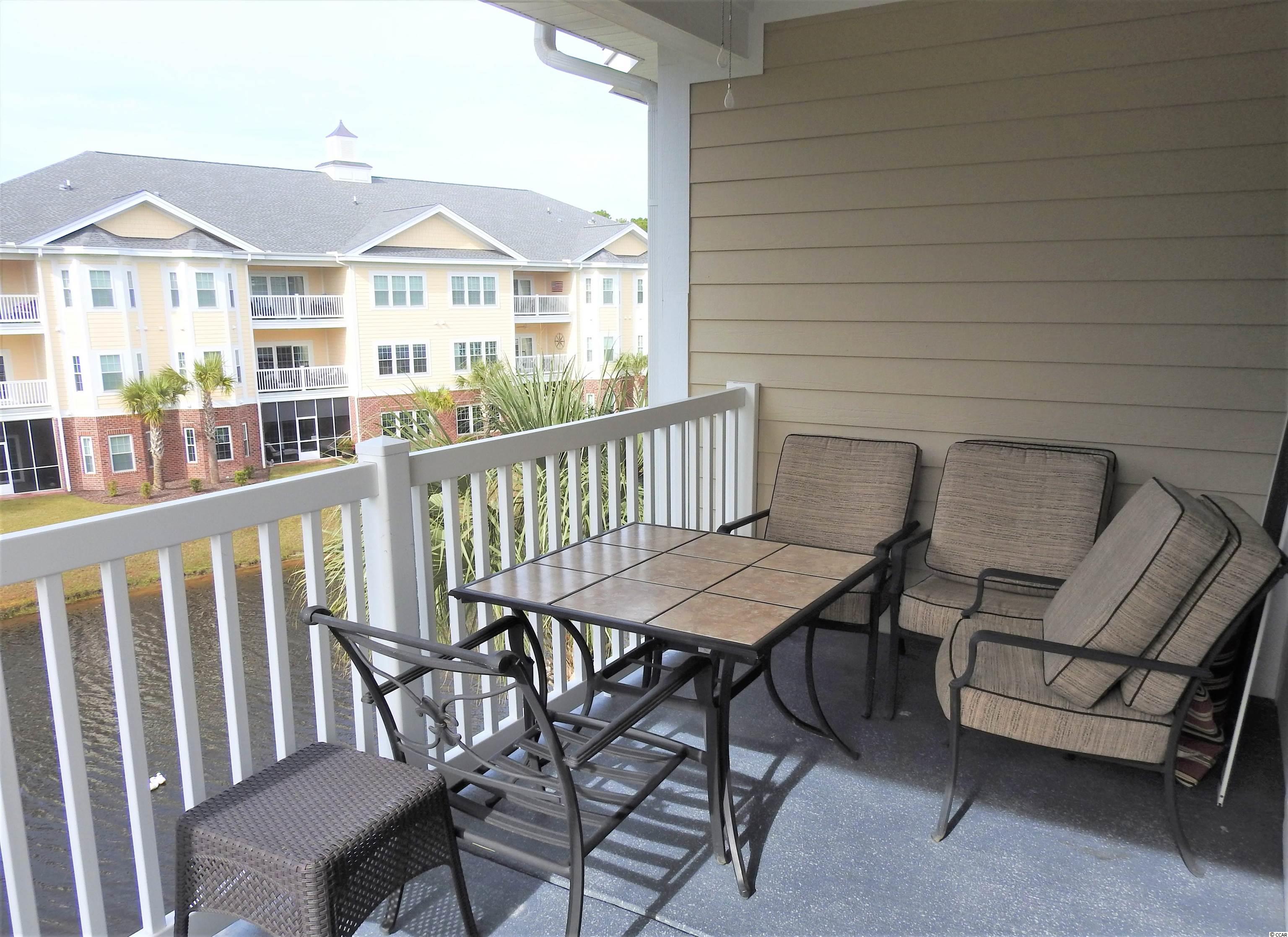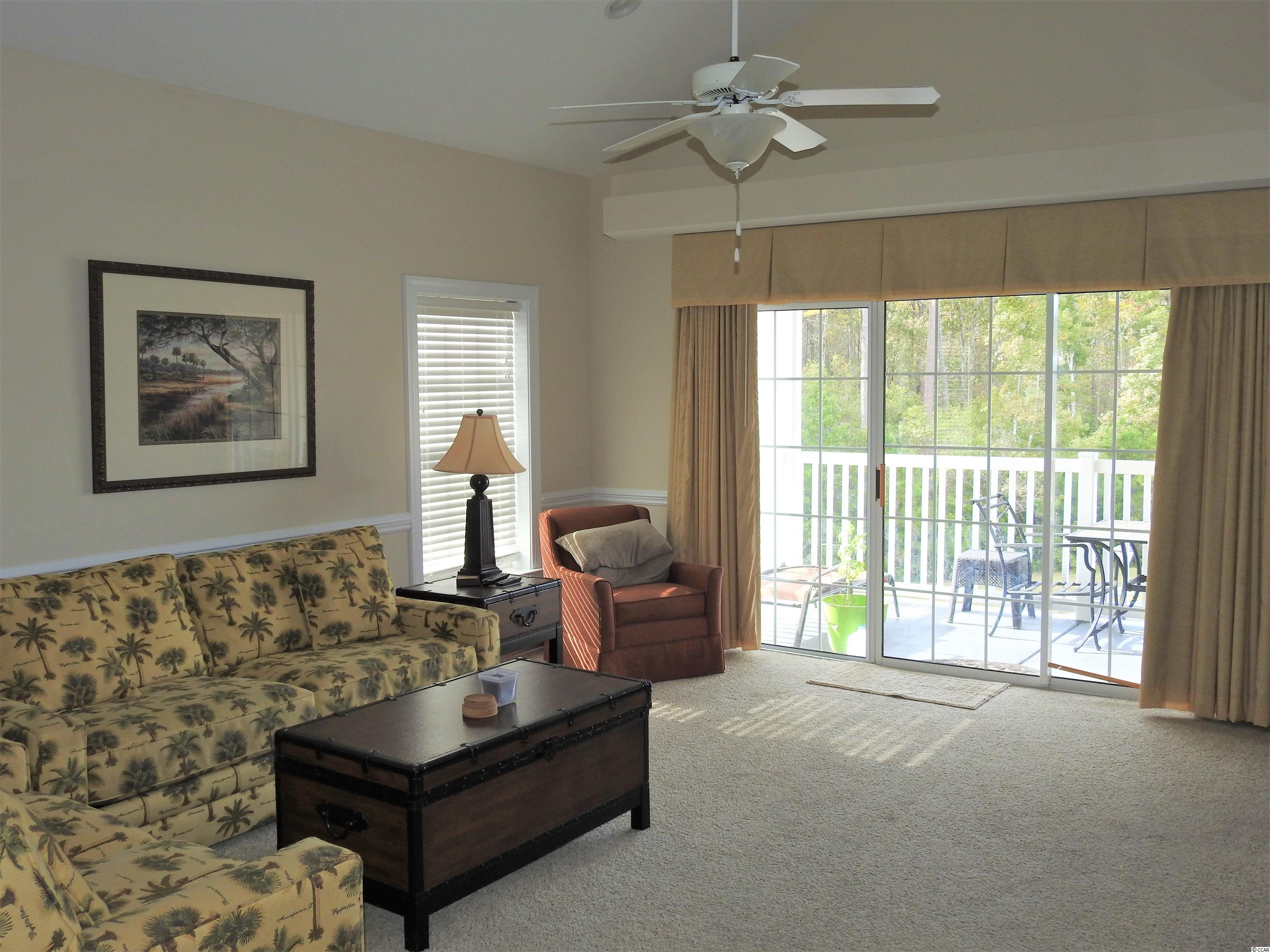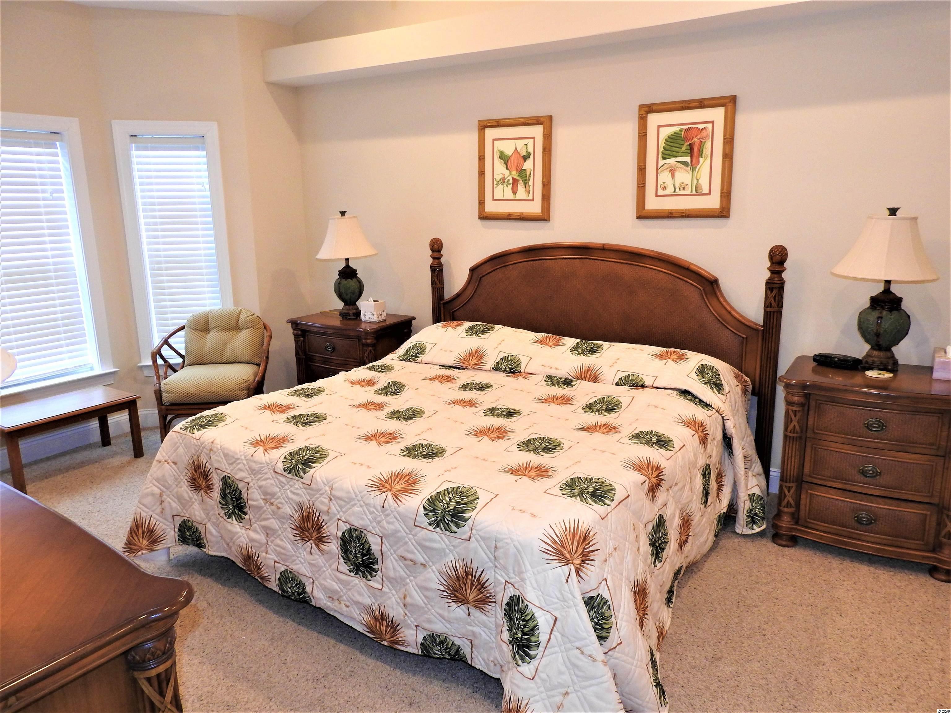 Welcome to the penthouse! This amazing, top floor Villa is also an end unit with expanded space and extra windows in the dinning area and owner's suite to provide most space and natural light. It is being sold furnished with beautiful Caribbean style furnishing throughout providing that tropical island feel. The large owner's bedroom suite features a comfortable sitting area, two closets plus a view of the lake and manicured landscaping which is ground lit for a dramatic view at night. The owner's bath includes a a double vanity and a tub and glass shower combination. Both of the two guest bedrooms are well furnished and share a full bathroom. The large laundry room has a convenient folding table and two sets of cabinets for storage. The living and dining areas offer a spacious, comfortable place to relax after a great day on the golf course or at the beach. The open, bright kitchen is ready to prepare fresh Shrimp and Grits or a Southern Fried Flounder dinner. After dinner enjoy a beverage and the fresh air on your back porch with panoramic views of the natural wooded surrounding and lake. Amenities include one outdoor pool and one indoor pool, exercise room, small library to check out books on site and discount golf coupons for the golf club. Tupelo Bay Golf Villas are located just four miles away from Brookgreen Gardens, the largest outdoor sculpture garden in the world. Just across from Brookgreen you will find the beaches of Huntington Beach State Park which stretch for six miles making it a paradise for sun bathing, walking and jogging. Watching the moon rise over the ocean is a popular evening activity. Myrtle Beach, one of the country's top tourist destinations, is only twenty-minute drive to the north and historic Charleston is just 70 miles to the south. Make this part of South Carolina your new destination to create your own treasured family memories.