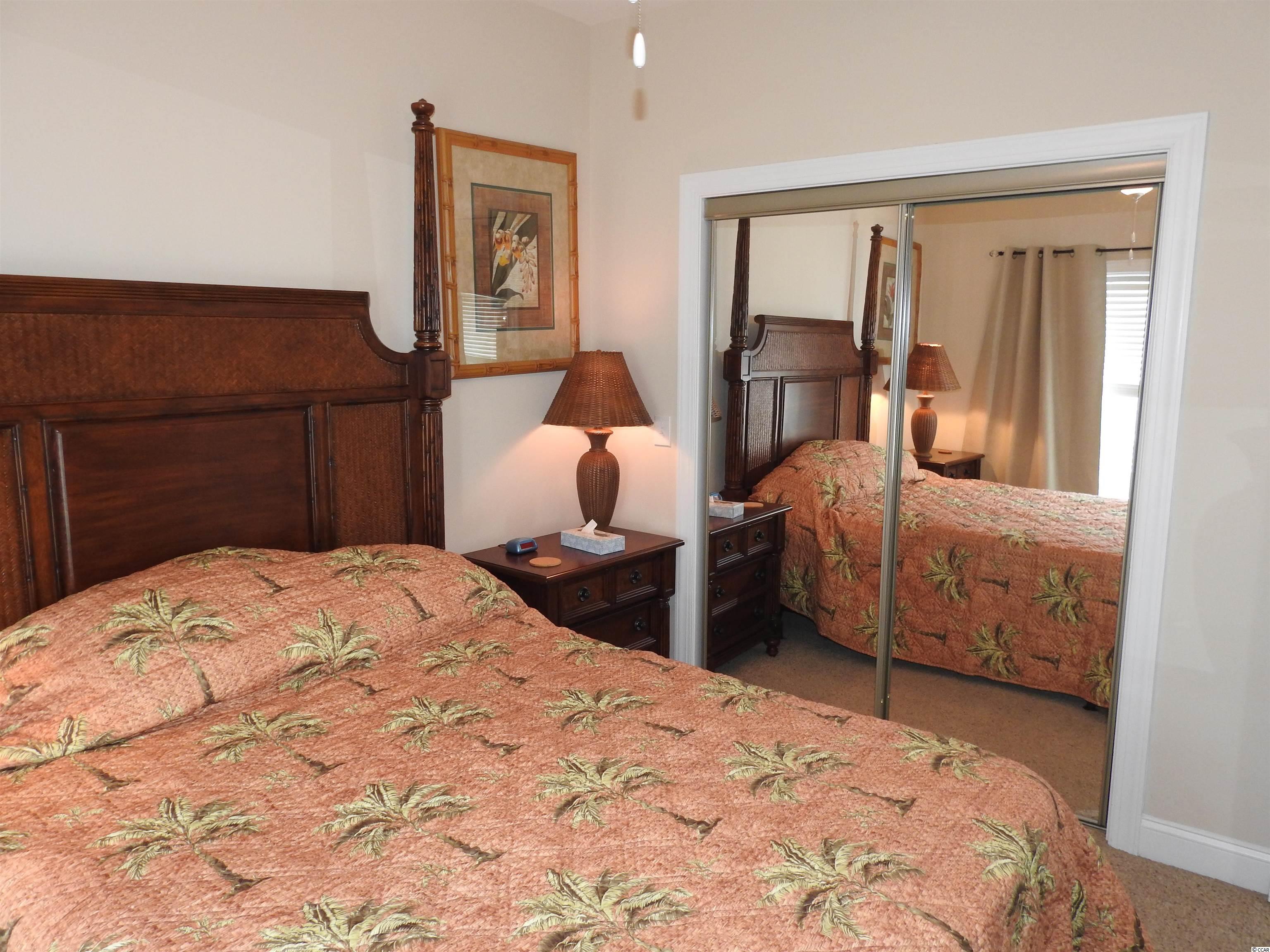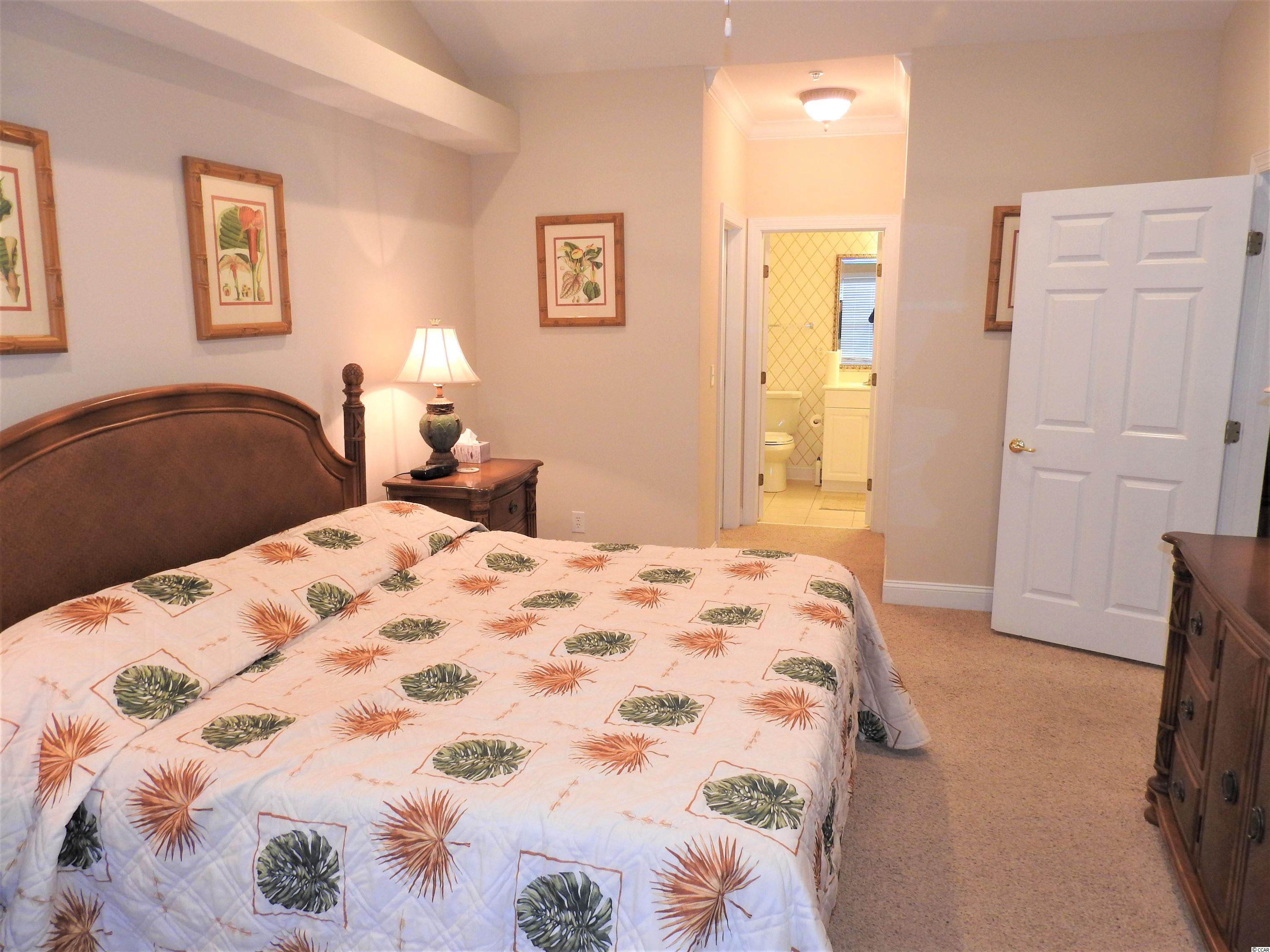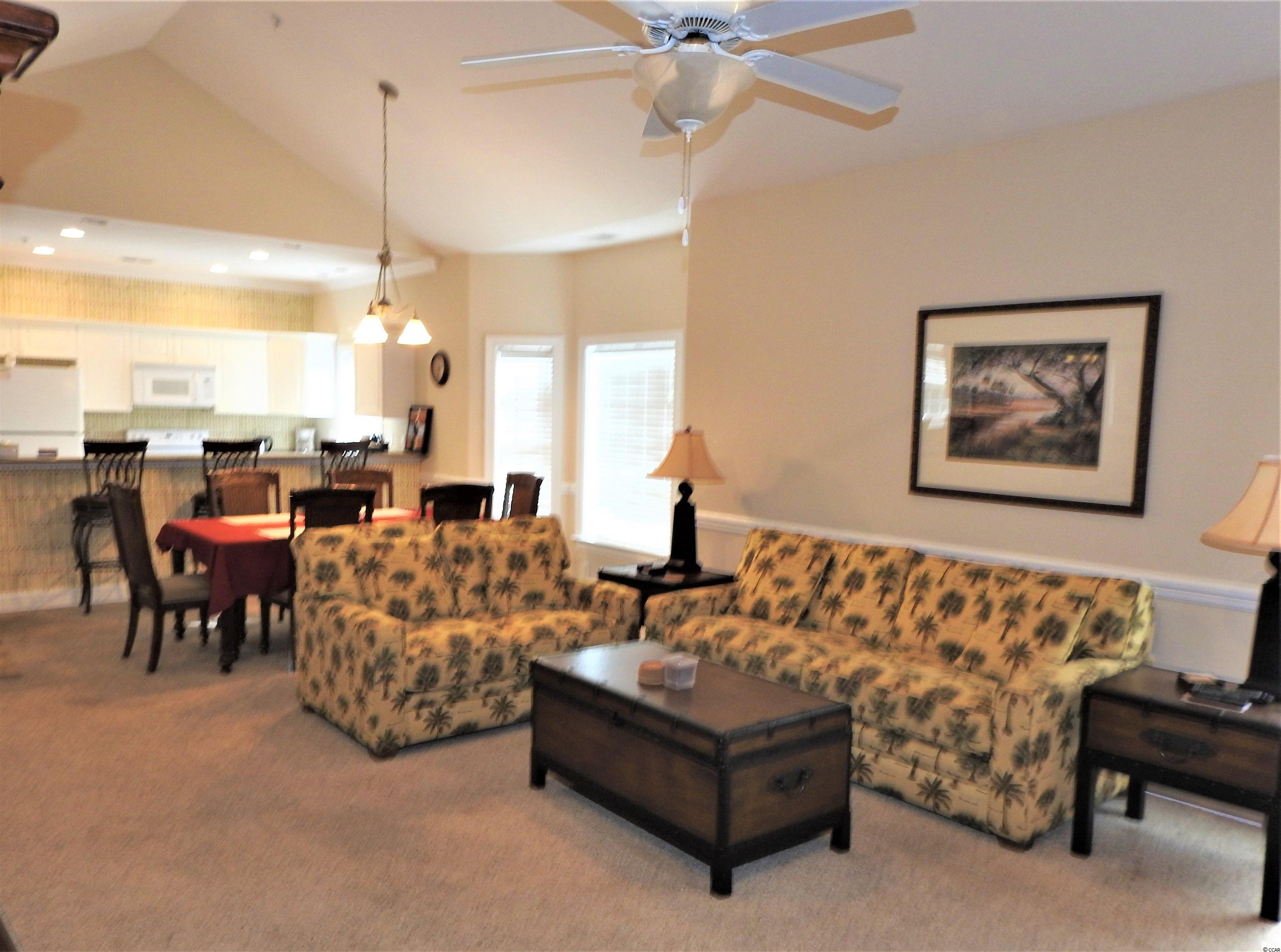 Welcome to the penthouse! This amazing, top floor Villa is also an end unit with expanded space and extra windows in the dinning area and owner's suite to provide most space and natural light. It is being sold furnished with beautiful Caribbean style furnishing throughout providing that tropical island feel. The large owner's bedroom suite features a comfortable sitting area, two closets plus a view of the lake and manicured landscaping which is ground lit for a dramatic view at night. The owner's bath includes a a double vanity and a tub and glass shower combination. Both of the two guest bedrooms are well furnished and share a full bathroom. The large laundry room has a convenient folding table and two sets of cabinets for storage. The living and dining areas offer a spacious, comfortable place to relax after a great day on the golf course or at the beach. The open, bright kitchen is ready to prepare fresh Shrimp and Grits or a Southern Fried Flounder dinner. After dinner enjoy a beverage and the fresh air on your back porch with panoramic views of the natural wooded surrounding and lake. Amenities include one outdoor pool and one indoor pool, exercise room, small library to check out books on site and discount golf coupons for the golf club. Tupelo Bay Golf Villas are located just four miles away from Brookgreen Gardens, the largest outdoor sculpture garden in the world. Just across from Brookgreen you will find the beaches of Huntington Beach State Park which stretch for six miles making it a paradise for sun bathing, walking and jogging. Watching the moon rise over the ocean is a popular evening activity. Myrtle Beach, one of the country's top tourist destinations, is only twenty-minute drive to the north and historic Charleston is just 70 miles to the south. Make this part of South Carolina your new destination to create your own treasured family memories.