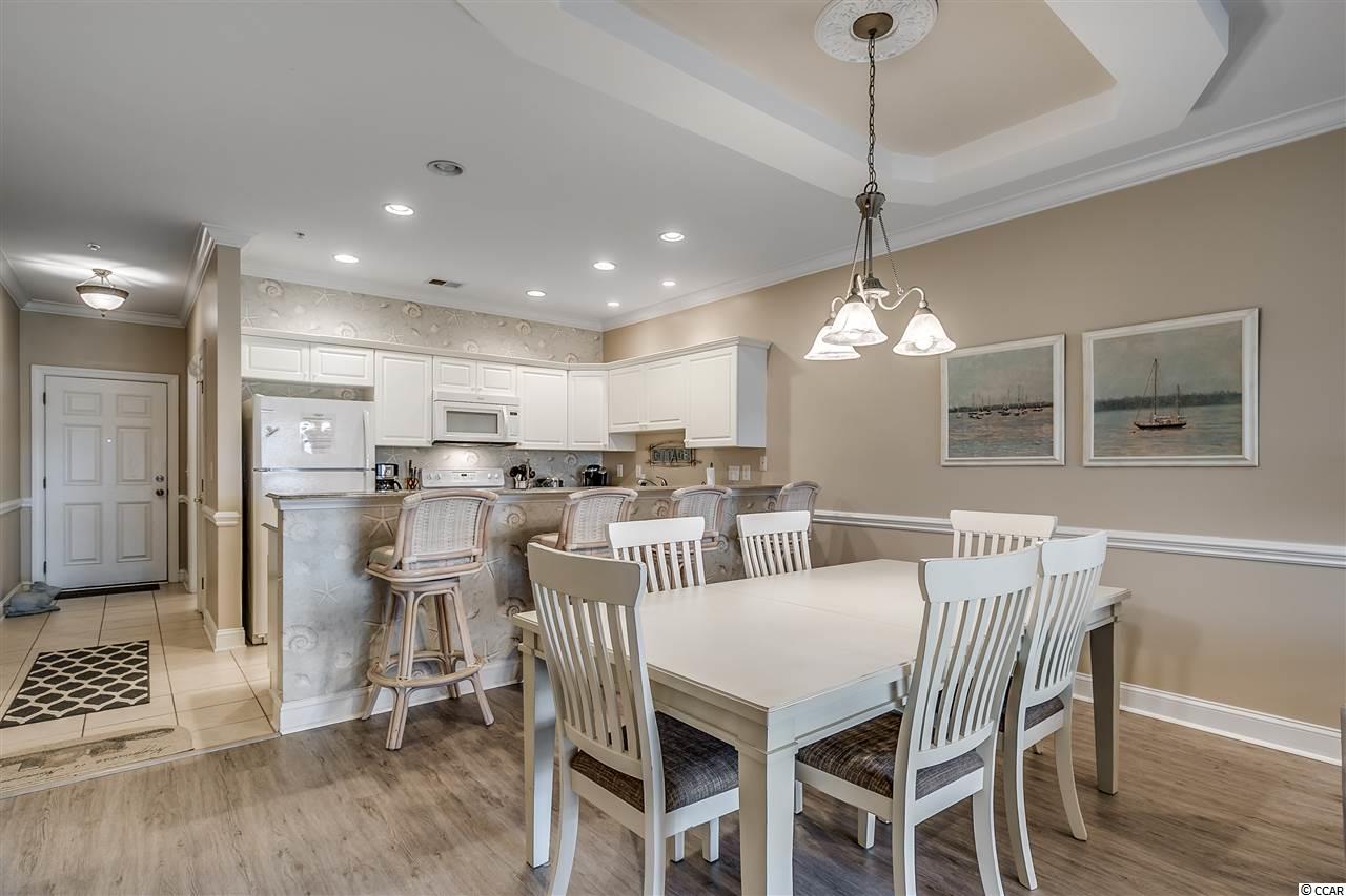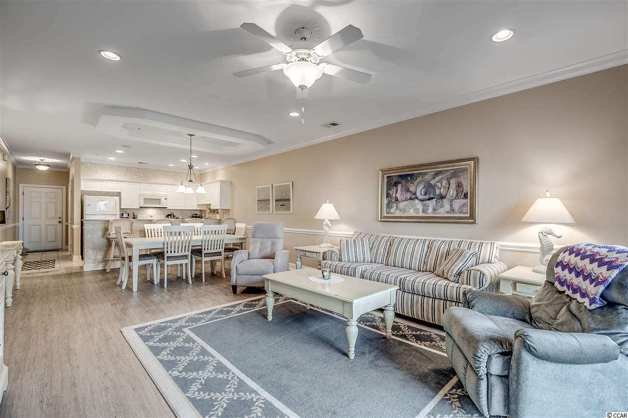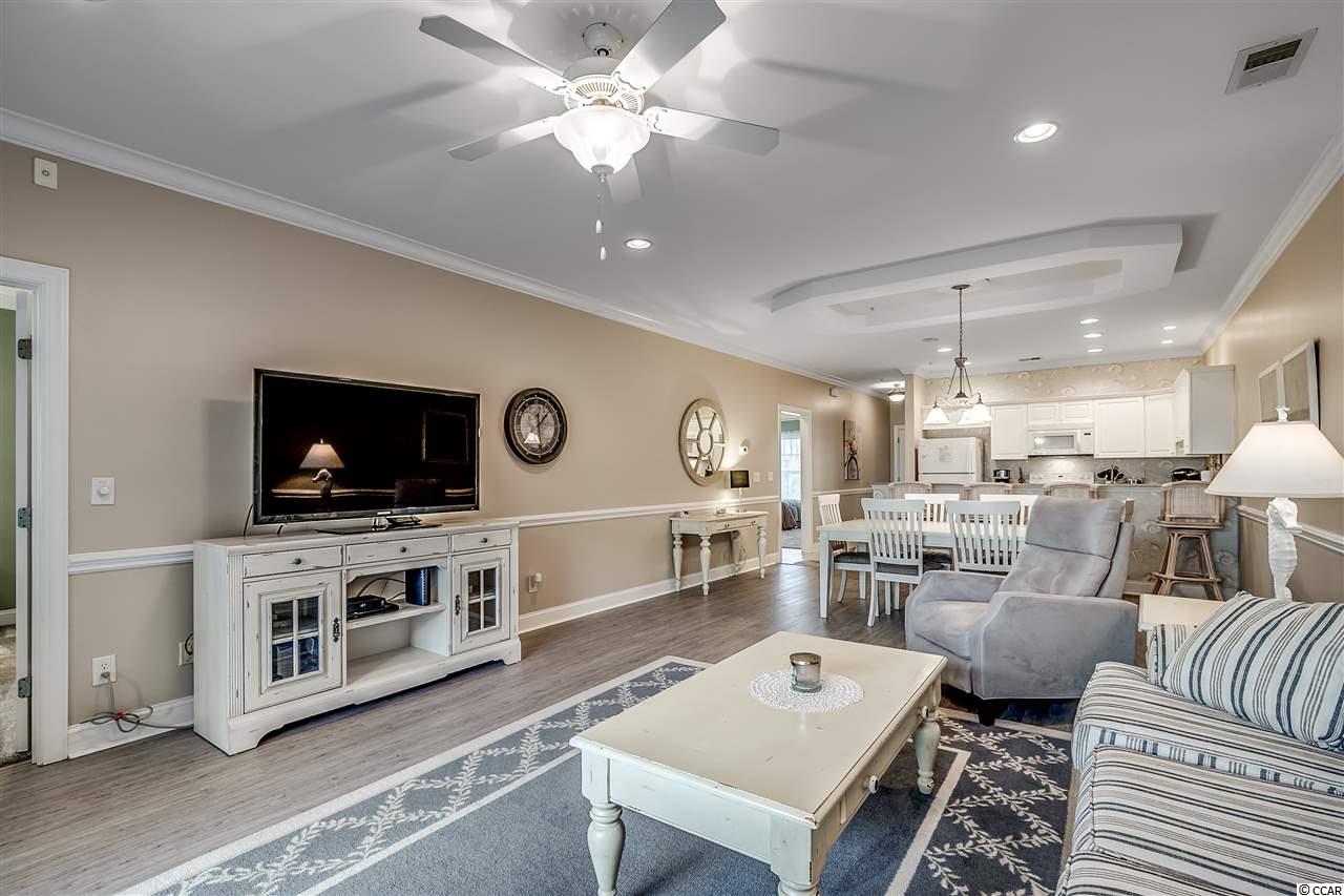 Gorgeous Beach style Furnished Golf Villa is very spacious and has an open floor plan, ground level condo with a detatched storage room. This villa features 3 bedrooms and 2 baths , crown moulding and chair railing, living area and screen porch with water views of the lake and fountain, large breakfast bar, generous sized living and dining room. Owners suite features a bay window, tray ceiling, walk in shower and double vanity, and his and her closets. Tupelo Bay hosts many amenities including indoor and outdoor pool, tennis court, fitness center, clubhouse facilities, miniature golf, Par 3, Driving range and executive course. A beach shuttle is also offered to the ocean or golf course in the summer months. Tupelo Bay Golf Villas are close to the beach, restaurants, shopping, ocean, but tucked away in a quiet area. All information is approximate, not guaranteed. Buyer is responsible for verification.