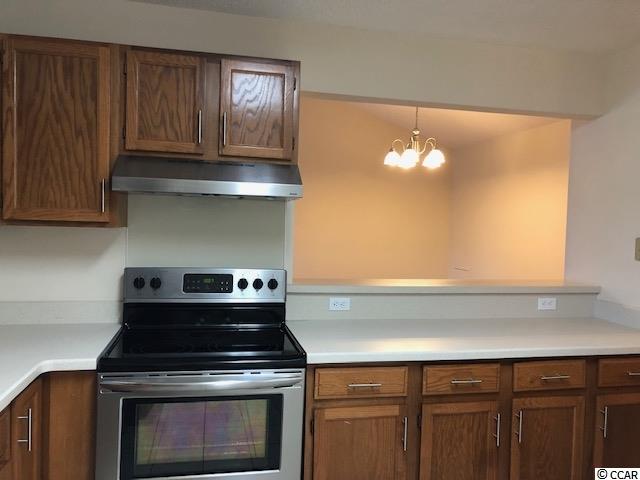 This cute condo needs nothing but a new owner. Very well maintained with engineered hardwood flooring throughout. Ample kitchen has stainless steel appliances and has a window looking out onto the screened in porch which overlooks the golf course. Golf course views from nearly every window and door! Community pool and covered picnic area is perfect for relaxing! Only a five minute drive to the beach! You don't want to miss this one!