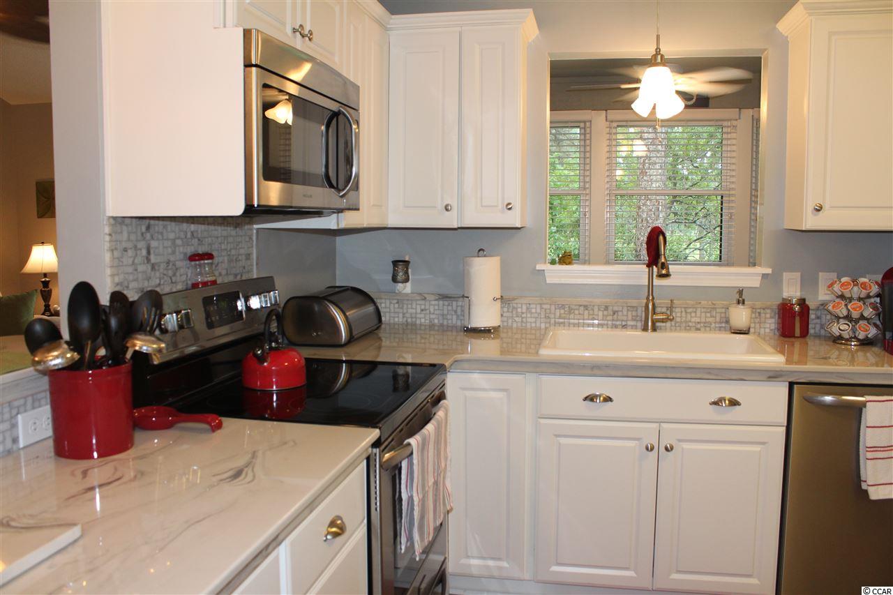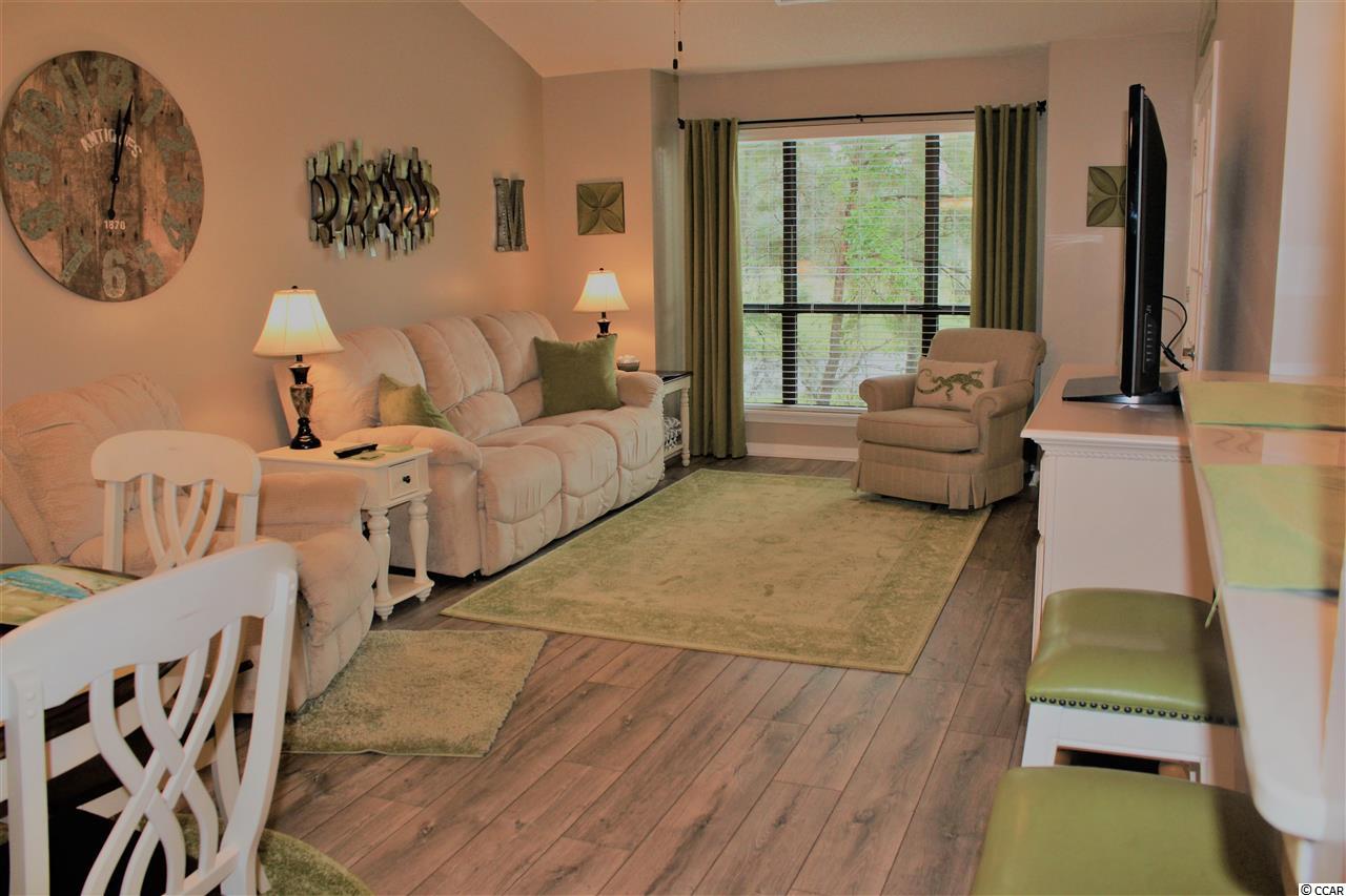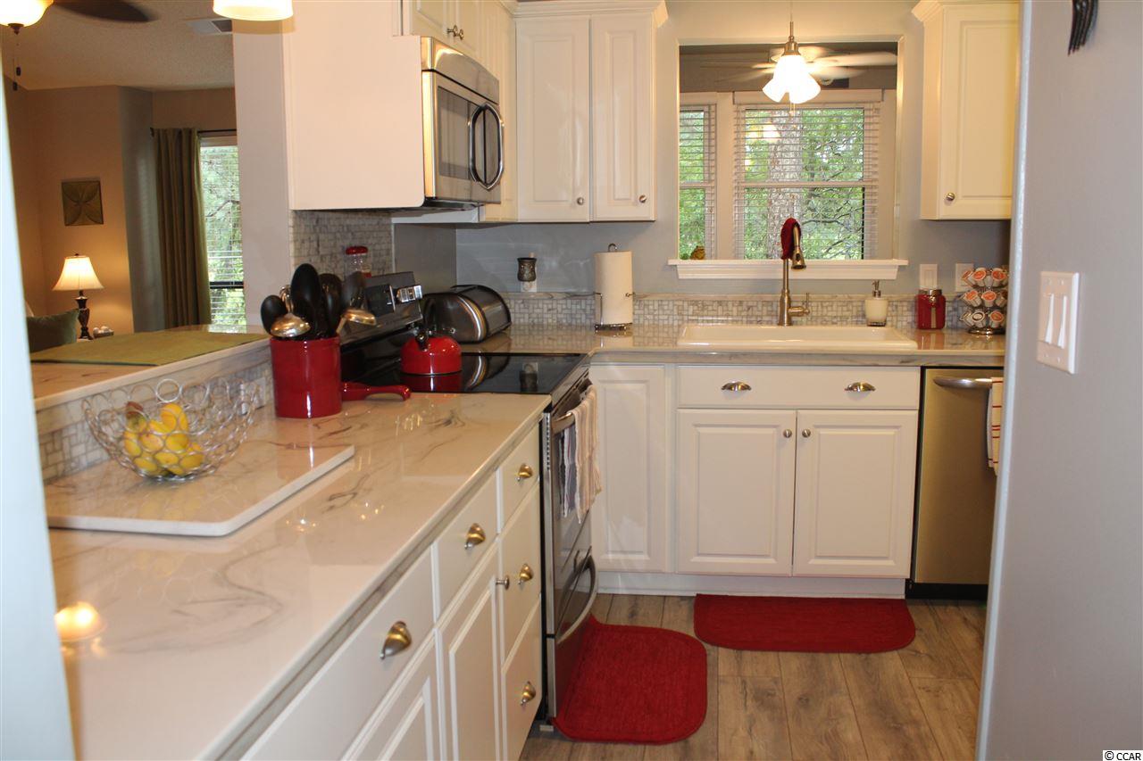 This immaculate two bedroom two bathroom condo features vaulted ceilings, new wood and tiled flooring through out. The master bedroom includes double pane floor length windows with views of the 18th hole of the golf course, a walk-in closet, new wood flooring, new paint, and new ceiling fan with lighting. The master bathroom has been updated with a new tiled shower including shelving and a seating area, new vanity, new brushed nickel lighting, and new brushed nickel faucets. The guest bedroom includes fresh paint, new ceiling fan, new wood flooring and spacious walk-in closet. The guest bathroom has a tub/ shower combo, new paint, new vanity, and tiled flooring. The kitchen has new stainless steel Frigidaire gallery appliances, new marble Eastonite counter-tops, new large white single bowl farm sink with a garbage disposal, new lighting, white soft close drawers with extra flatware storage, and soft close kitchen cabinets with a lazy Susan & pull out pot bin inside. The living room dining room combo features vaulted ceilings, new ceiling fan, new lighting, fresh paint, new wood flooring, and a spectacular view of the golf course. The Carolina room includes a huge storage closet, fresh paint, tiled flooring, and golf course views. The home has all new interior doors and a new custom storm & security entry door with a side window and blinds inside. The Maytag washer and dryer and 2"" white blinds on windows will convey. The heat pump and water heater were installed in 2014 and the roof was replaced in 2016. The HOA is currently painting the building as well as painting and resealing the parking lots. There is a covered picnic area and a resort style pool in the community. The HOA covers common maintenance and repair, insurance, water, sewer, basic cable, trash pick-up, lawn maintenance, pool service and more. It is located close to shopping, doctors, hospitals, easy access to Hwy 17-Bypass or Hwy 17 Business and only 2 miles to the sandy beaches and beautiful Atlantic Ocean.