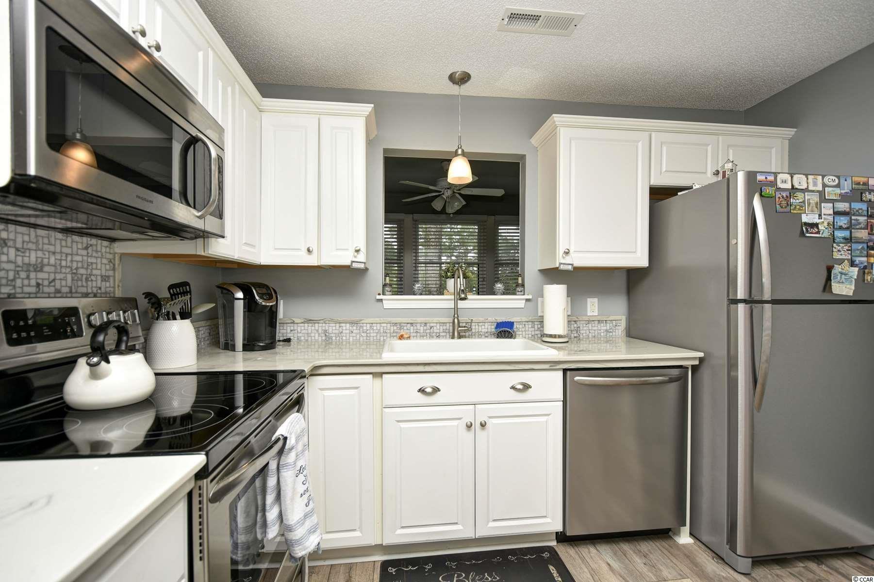 Don't miss out on his immaculate two bedroom two bathroom condo in Indian Wells Golf Villas This gorgeous unit has been totally renovated. You will feel at home the moment you walk in the front door to vaulted ceilings. Every room has been newly painted with wood flooring through out the living areas bedrooms and kitchen. The master bedroom includes double paned floor length windows, a walk-in closet, ceiling fan with lighting. The master bathroom has been updated with a new tiled shower, with shelving and a seating area, new vanity, new brushed nickel lighting and faucets. The guest bedroom includes , new ceiling fan and spacious walk-in closet. The guest bathroom has a tub/ shower combo, new vanity, and tiled flooring. The kitchen has updated soft close cabinets with additional flatware storage, pot storage and lazy susan. Kitchen also has stainless steel Frigidaire gallery appliances, updated marble Eastonite counter-tops, new large white single bowl farm sink with garbage disposal, new lighting. The living room dining room combo features vaulted ceilings, new ceiling fan, new lighting, fresh paint, new wood flooring. French doors that enter into the Carolina room which has a huge storage closet, has been paint, tiled flooring and was up dated will all new enclosed windows . The home has all new interior doors and a new custom storm & security entry door with a side window and blinds. Unit includes Maytag washer and dryer and 2"" white blinds. There is a covered picnic area and a resort style pool in the community. The HOA covers common maintenance and repair, insurance, water, sewer, basic cable, trash pick-up, lawn maintenance, pool service and more. Indian Wells Golf Villas is a fantastic community and is centrally located to Garden City beaches and fishing pier, the very popular Marsh Walk for all your entertaining needs that has the top sea food restaurants and live music, Brookgreen gardens, shopping and all that the Grand Strand has to offer. Just pack your bags!