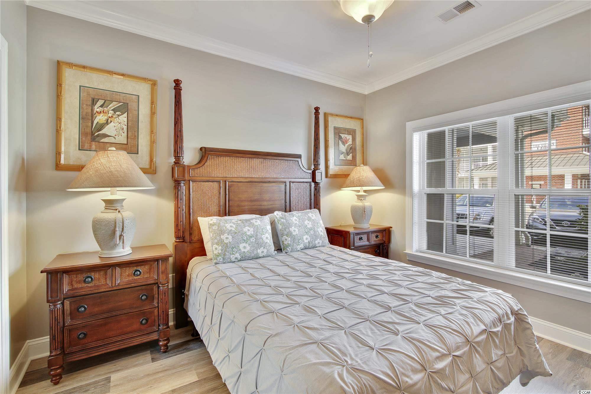 This 3 bedroom, 2 bathroom spacious condo is located in the golf community of Tupelo Bay in Garden City, just minutes from all that Myrtle Beach has to offer. A short drive or free shuttle ride (Memorial Day to Labor Day) to the gorgeous Garden City Beach. This first floor unit features an open floorplan, tasteful coastal dcor, crown molding throughout, ceiling fans throughout, tile in kitchen & bathrooms, laundry room with washer and dryer, covered patio overlooking a serene pond, large master suite, & more! Plus many recent upgrades including: new HVAC system, new tile backsplash in kitchen, new LVT flooring, new smart TV's, and new washer/dryer. Being sold fully furnished, rental ready and setup to accommodate 8 guests with 1 king suite, 1 queen bedroom, and a bedroom with 2 singles, plus 1 queen sleeper sofa in living area. The Tupelo Bay community boasts a seemingly endless list of amenities including a clubhouse with indoor and outdoor pools, grilling areas, tennis court, and on-site fitness center. Have some family fun at Runaway Bay miniature golf, a cold treat at the on-site ice cream shop, or enjoy a round of golf at the eighteen-hole pristine golf course within the community! Don't miss the opportunity to own this turnkey unit at the beach with incredible resort style amenities to enjoy. Schedule your private showing today, as this unit won't last long! Subject to the SC Vacation Rental Act.