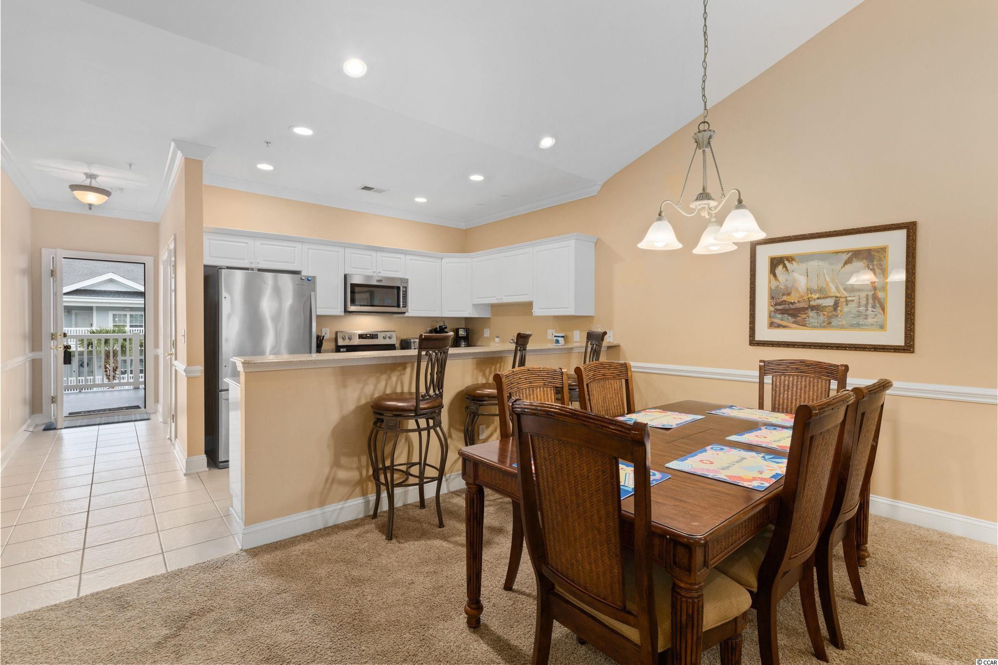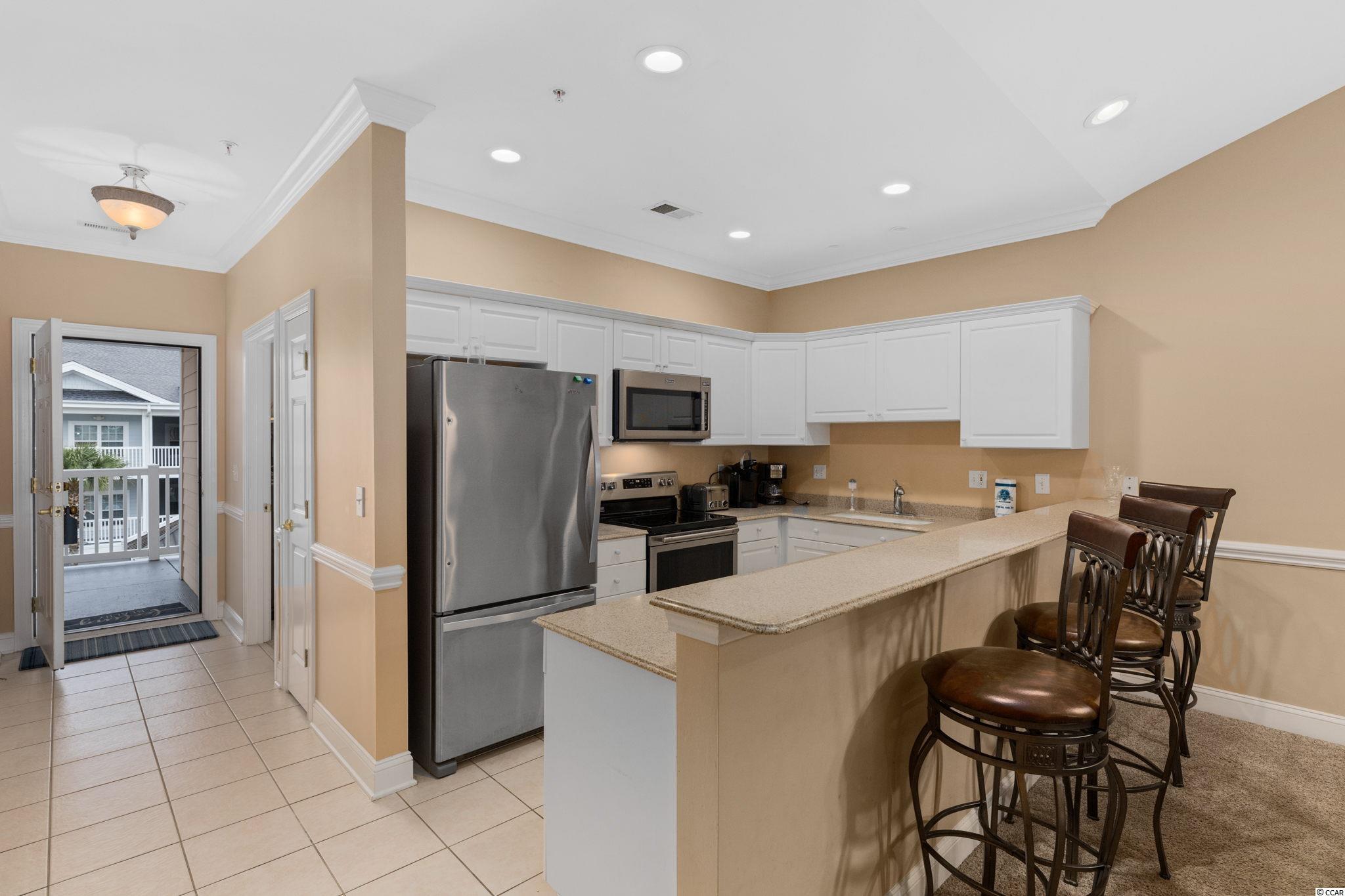 Welcome home to this fully furnished, 3 bedroom, 2 full bath condo in the beautiful Tupelo Bay community in Murrells Inlet, SC. This unit is on the 3rd floor, the top floor, which means no one is above you and also means that it features vaulted ceilings! There is the option of an elevator, or stairs to get to this great home. Walk in through the front door and have a furnished bedroom on each side with a full bathroom on the right as well as a stackable washer/dryer and utility room for storage. The main living area is spacious and open to the kitchen. The kitchen features stainless steel appliances and a full sized refrigerator that were all installed in 2017. There is a breakfast bar with several barstools, a dining area and living room with new furniture. The owners' suite has a view of the pond, a walk-in closet, a double vanity, and shower. There are French door that open to the beautiful sunroom that overlooks the water outside. This sunroom can be utilized as extra space that opens to the living room, a good space for plants to get lots of light, or a home office! There is also an owners' closest outside for extra essentials or beach equipment. The HVAC was replaced in 2016 to a Trane unit. This condo could make for a fantastic primary residence, second home, or investment opportunity. Tupelo Bay has great amenities including exclusive tennis courts, outdoor pool, heated indoor pool, grilling areas, and fitness center. Have some fun with the family fun at Runaway Bay miniature golf, on-site ice cream, a par 3 mini course, or the 18 hole executive course. Tupelo Bay is in Murrells Inlet so it is a short drive to The Murrells Inlet Marshwalk, the option of Surfside Beach, or Myrtle Beach. The Myrtle Beach International Airport, shopping, dining, and numerous golf courses are all nearby. Come and be a part of this community, schedule your showing today!