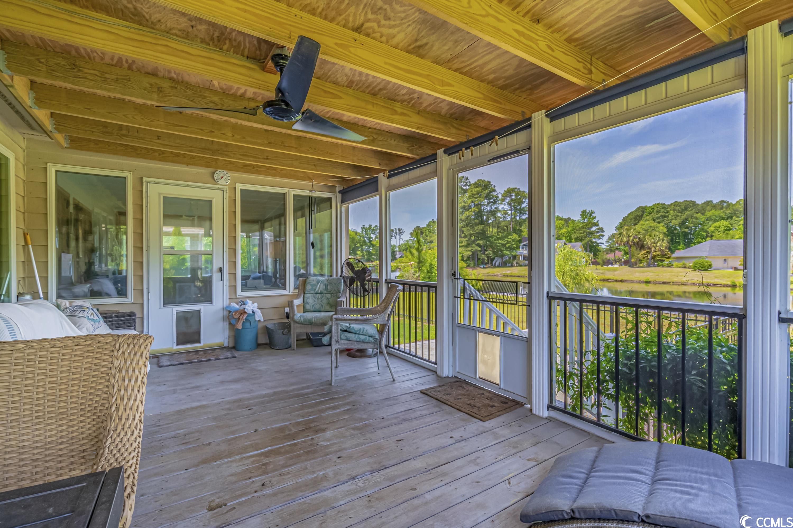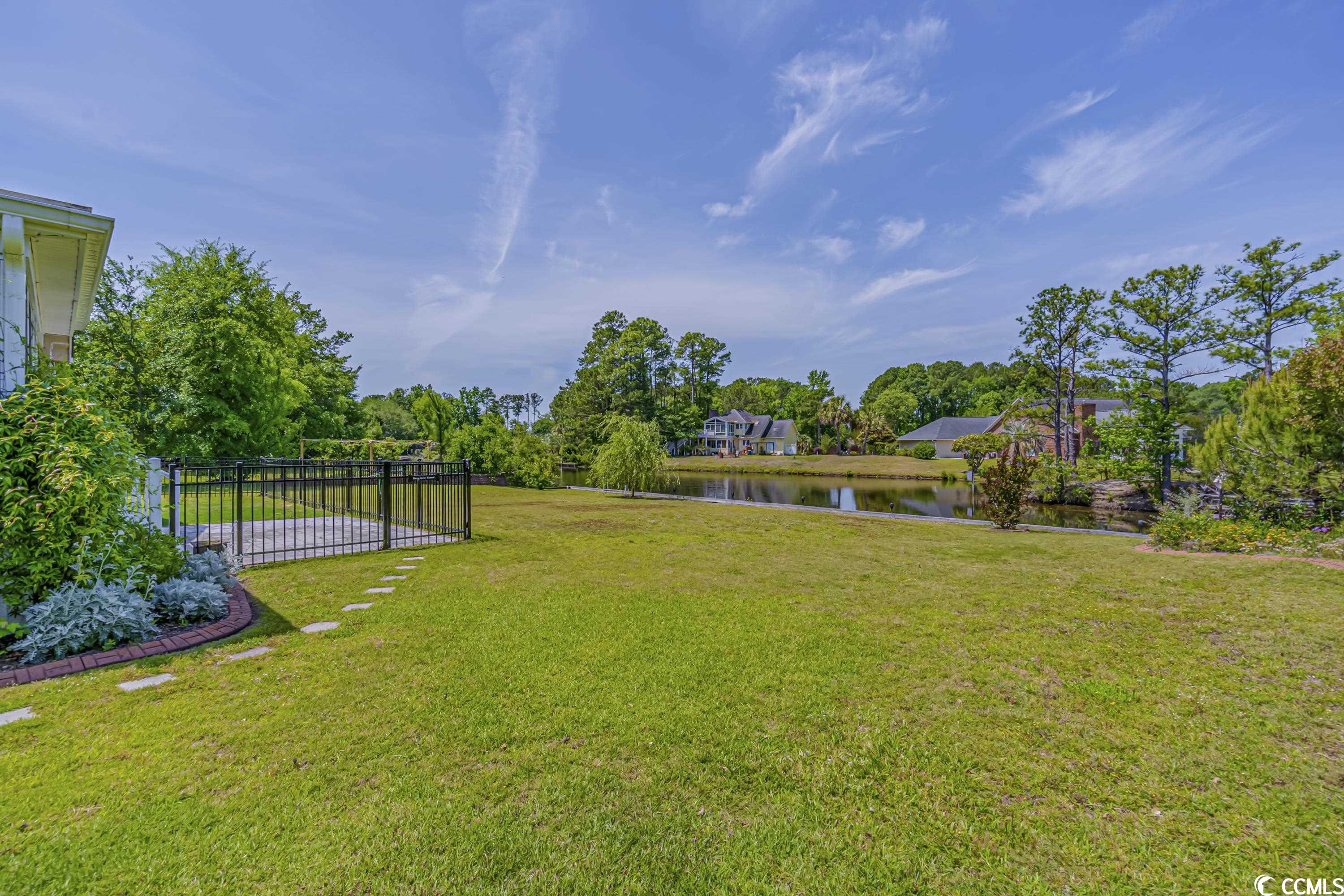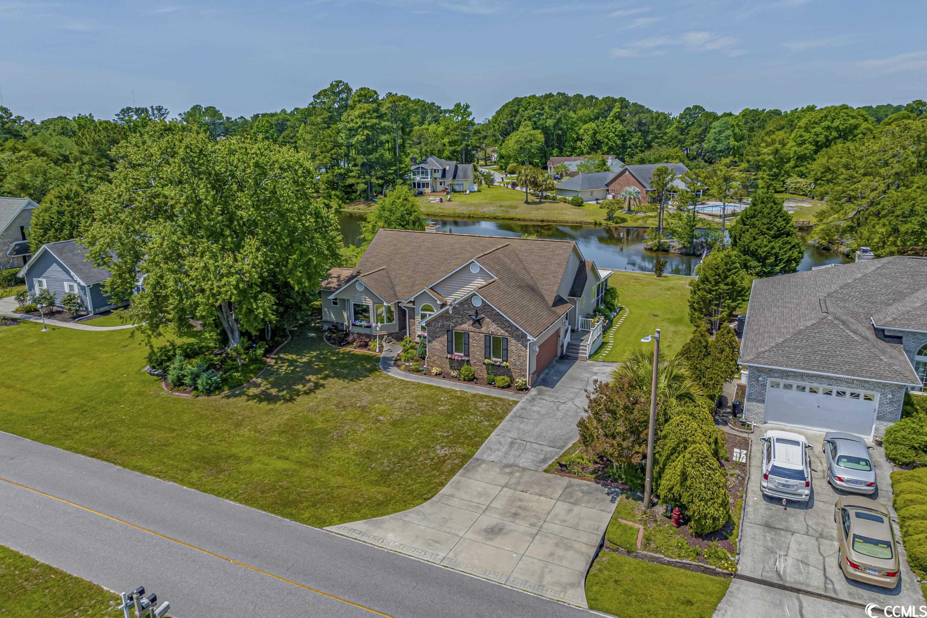 Wish you had a single level home with a water view? Then this home is for you! Incredible visibility of Lake Marion from all rooms that line the back of the home. This includes the kitchen, family room, sun room, screened porch and even a bathroom. While gazing at those remarkable views, take note of the fenced in area of the yard and also the dock located directly on the lake. Inside you will find 3 bedrooms plus 3 full, updated bathrooms. Lots of great features including a double sided fireplace, updated lighting, granite counters, white cabinets, stainless appliances, wood floors through-out, tile floors in wet areas & tile walk-in showers in primary & 2nd bath which also has large oval soaking tub. The tiled sun room will be a favorite place to read and relax. The spacious main bedroom has a vaulted ceiling, bay window and sitting area with fireplace. The kitchen also includes glass tile backsplash and a new gas stove. The screened porch was added in 2020. New HVAC system installed in 2021. The Lakes subdivision has several access points with the main entrance off of Holmestown Road. This Myrtle Beach address is neighbors with both Surfside Beach and Murrells Inlet and is conveniently located off Hwy 17 Bypass and Holmestown Road. Shopping, dining, golf and beach are all in close proximity. Put this one on your list to see! All square footage is approximate and up to buyer/buyer's agent to confirm.