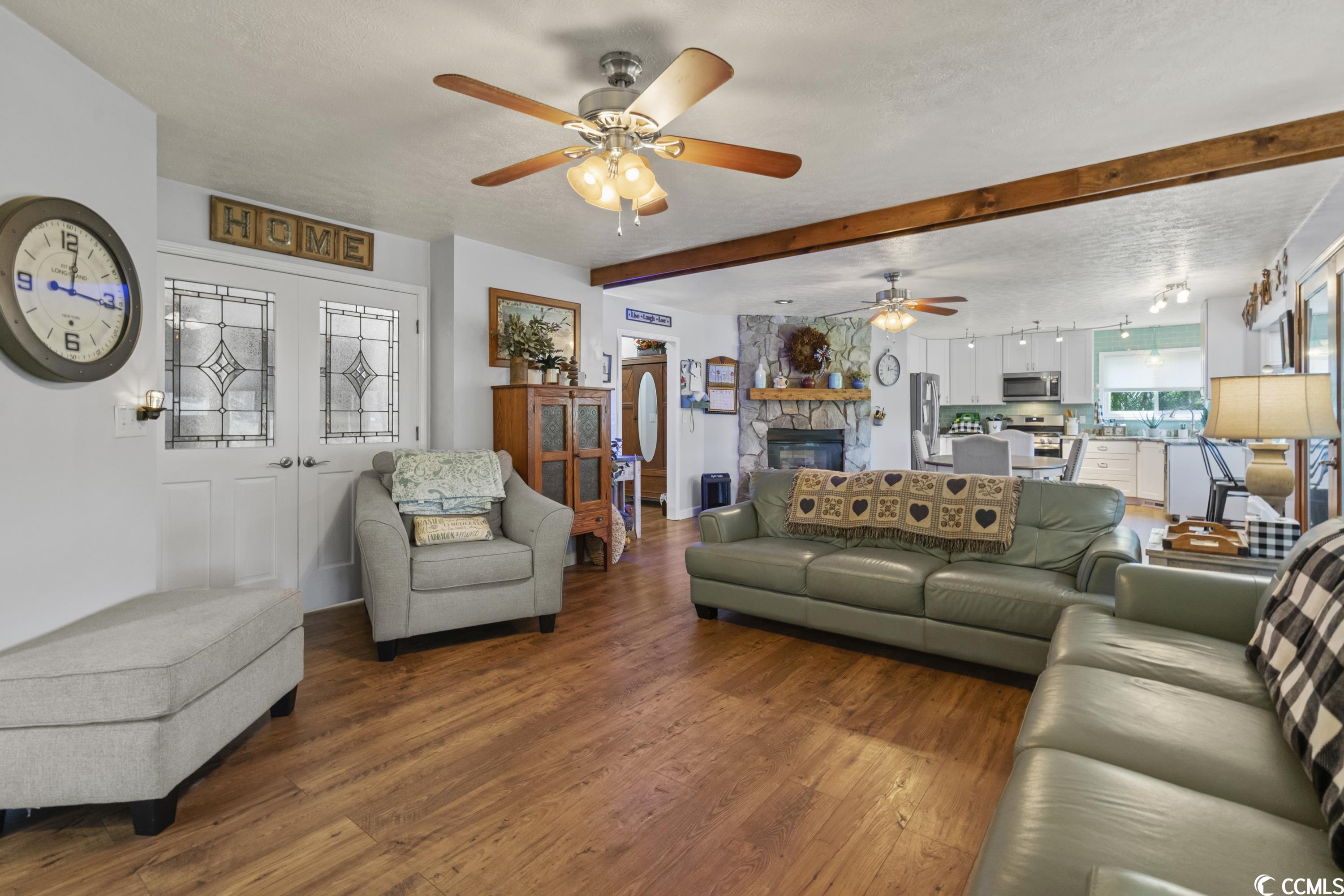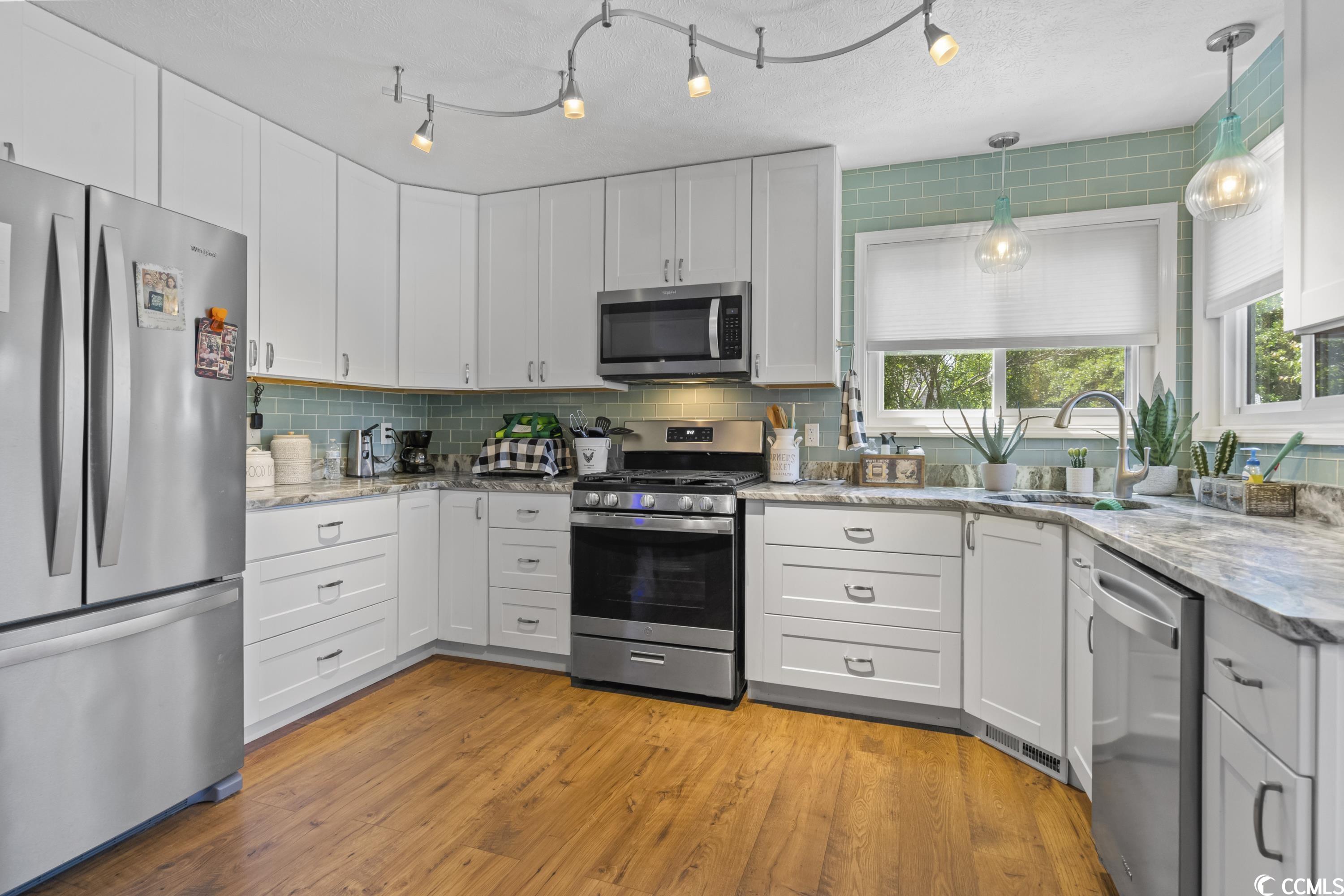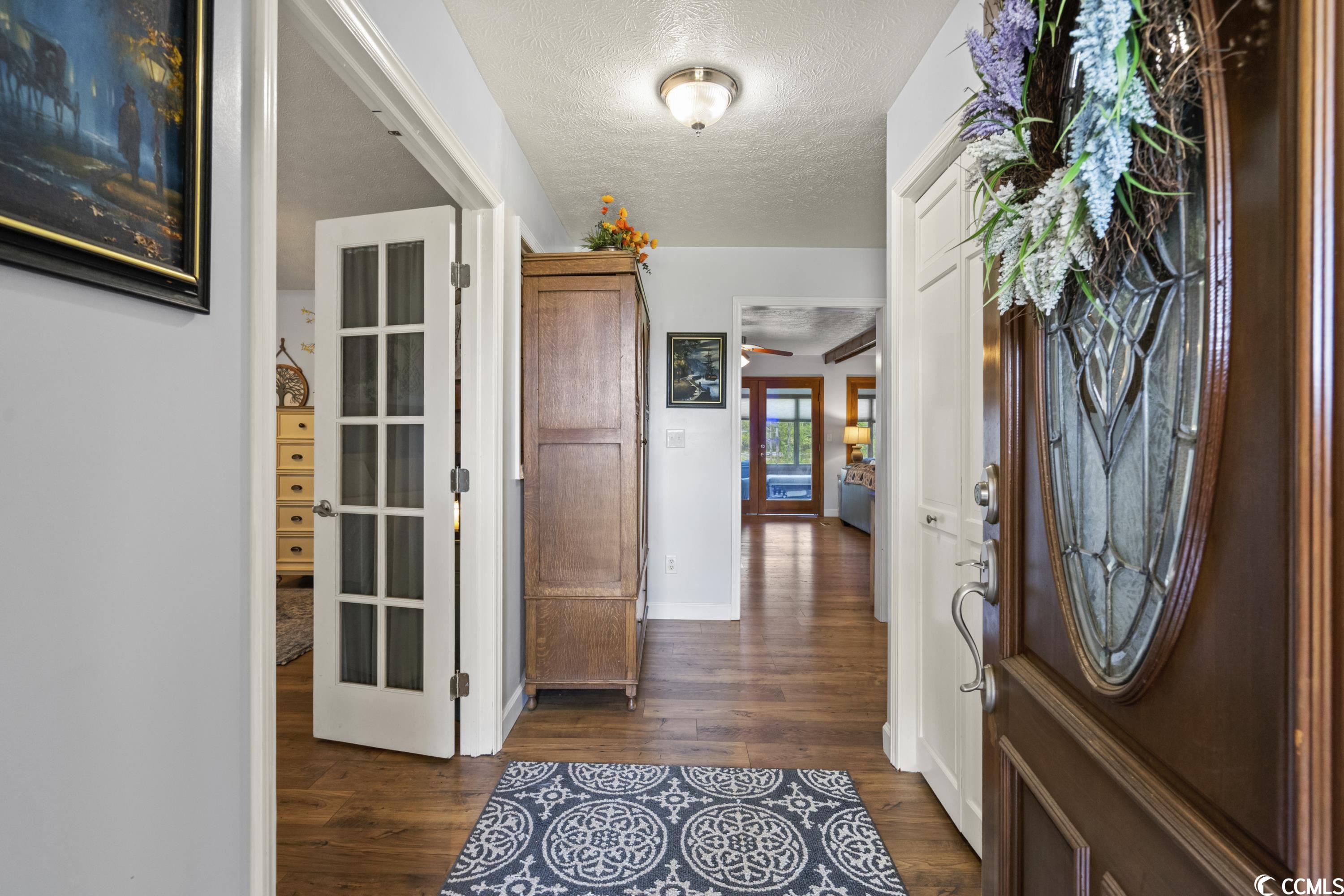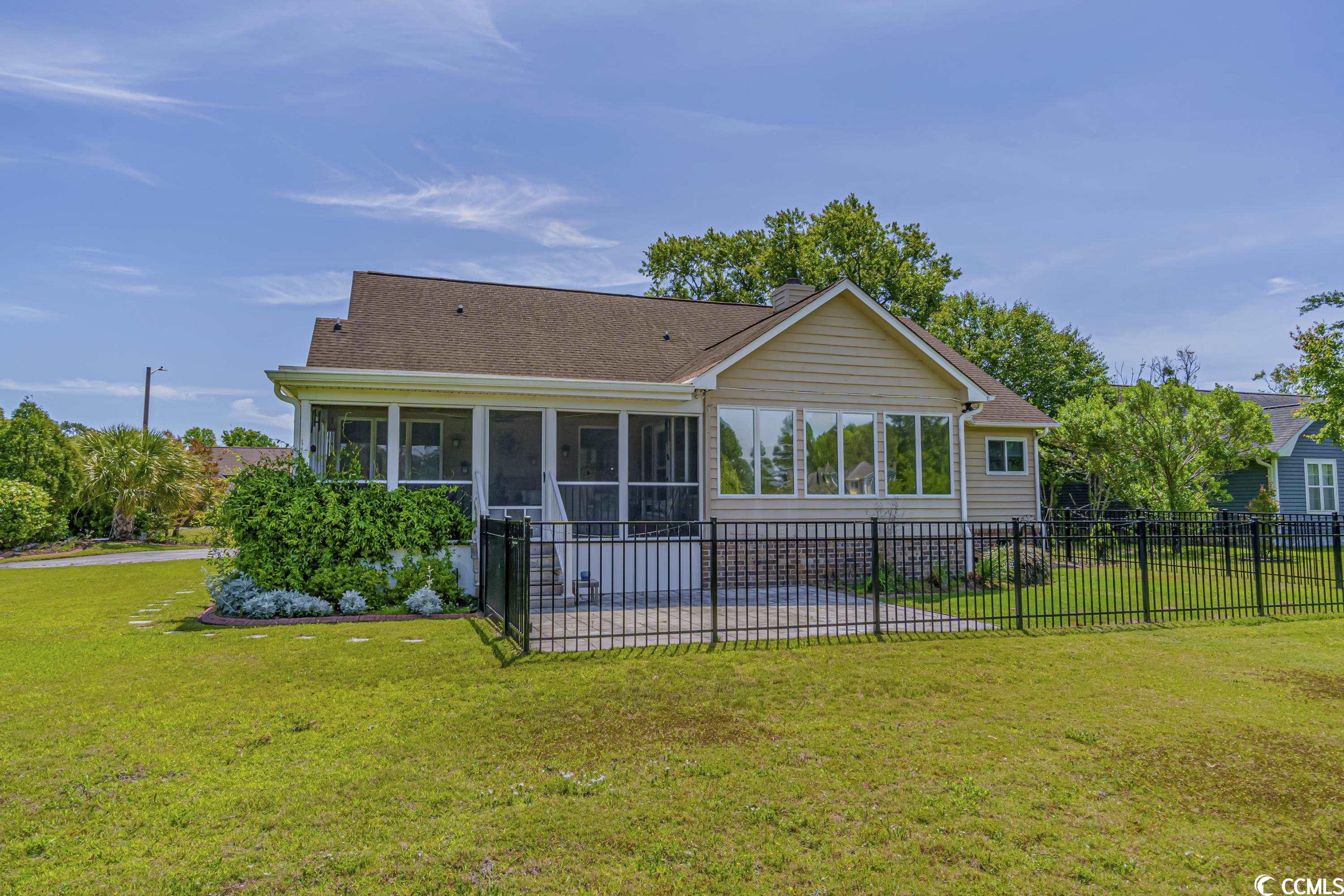 Wish you had a single level home with a water view? Then this home is for you! Incredible visibility of Lake Marion from all rooms that line the back of the home. This includes the kitchen, family room, sun room, screened porch and even a bathroom. While gazing at those remarkable views, take note of the fenced in area of the yard and also the dock located directly on the lake. Inside you will find 3 bedrooms plus 3 full, updated bathrooms. Lots of great features including a double sided fireplace, updated lighting, granite counters, white cabinets, stainless appliances, wood floors through-out, tile floors in wet areas & tile walk-in showers in primary & 2nd bath which also has large oval soaking tub. The tiled sun room will be a favorite place to read and relax. The spacious main bedroom has a vaulted ceiling, bay window and sitting area with fireplace. The kitchen also includes glass tile backsplash and a new gas stove. The screened porch was added in 2020. New HVAC system installed in 2021. The Lakes subdivision has several access points with the main entrance off of Holmestown Road. This Myrtle Beach address is neighbors with both Surfside Beach and Murrells Inlet and is conveniently located off Hwy 17 Bypass and Holmestown Road. Shopping, dining, golf and beach are all in close proximity. Put this one on your list to see! All square footage is approximate and up to buyer/buyer's agent to confirm.
