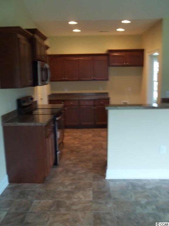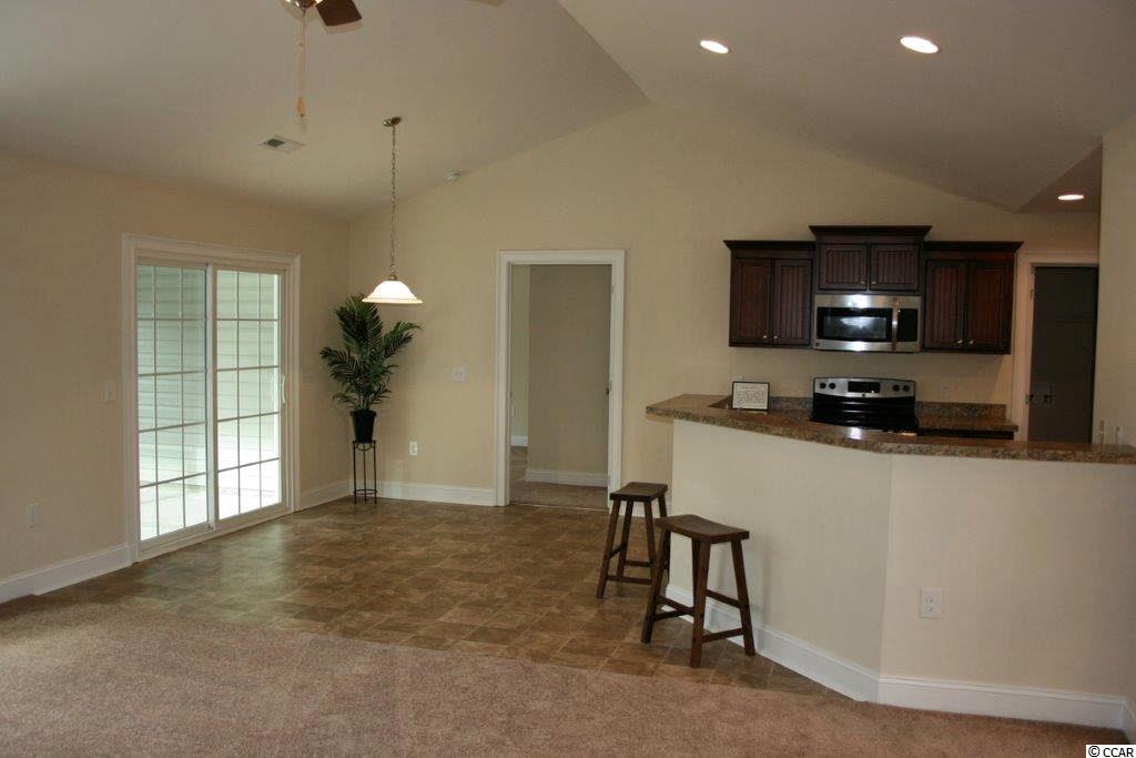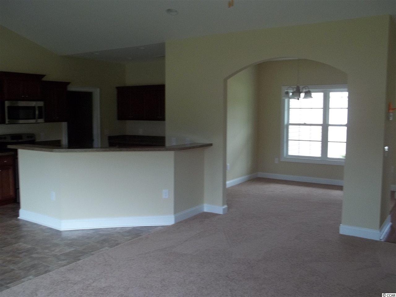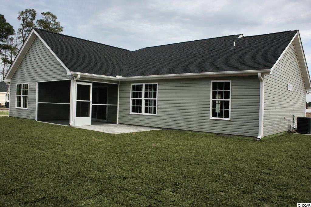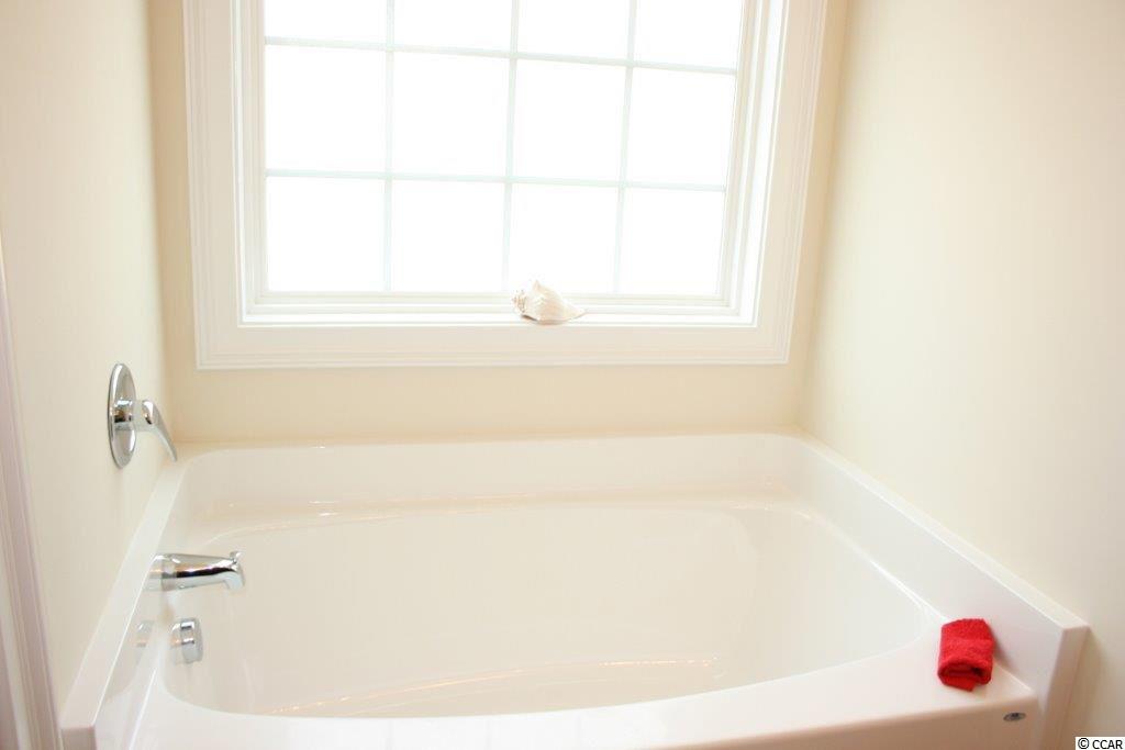 Popular Hickory 70, with open floor plan, split bedrooms, large relaxing front porch. Foyer has hardwood flooring, dining room has tray ceiling. Spacious kitchen has wrap around breakfast counter, breakfast nook, lots of counter top space and solid wood cabinets with crown molding and knobs, stainless steel appliances. Private 12' x 14' Master suite with vaulted ceiling, ceiling fan w/light, huge L shaped walk-in closet, two sinks, raised height vanity, garden tub with obscure privacy window to let light in, plus a separate walk-in shower. Rear screened porch and concrete patio. Smooth ceilings, 30 year roof shingles, cottage style doors, gutters, sodded yard, fully finished 21' x 24' garage with automatic door opener, pull down stairs to attic storage. Gated community, pool and clubhouse. Close to North Myrtle Beach, shopping, dining, etc. Photos and video are for illustrative purposes only and may be of similar home built elsewhere. Square footage is approximate and not guaranteed. Buyer is responsible for verification.