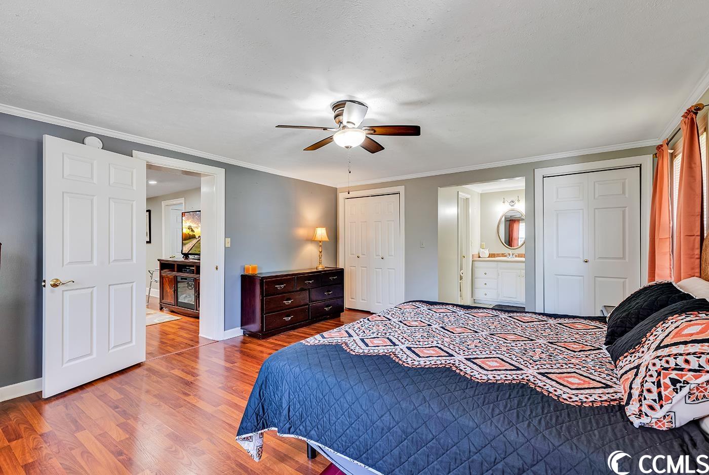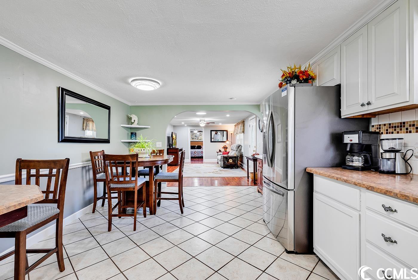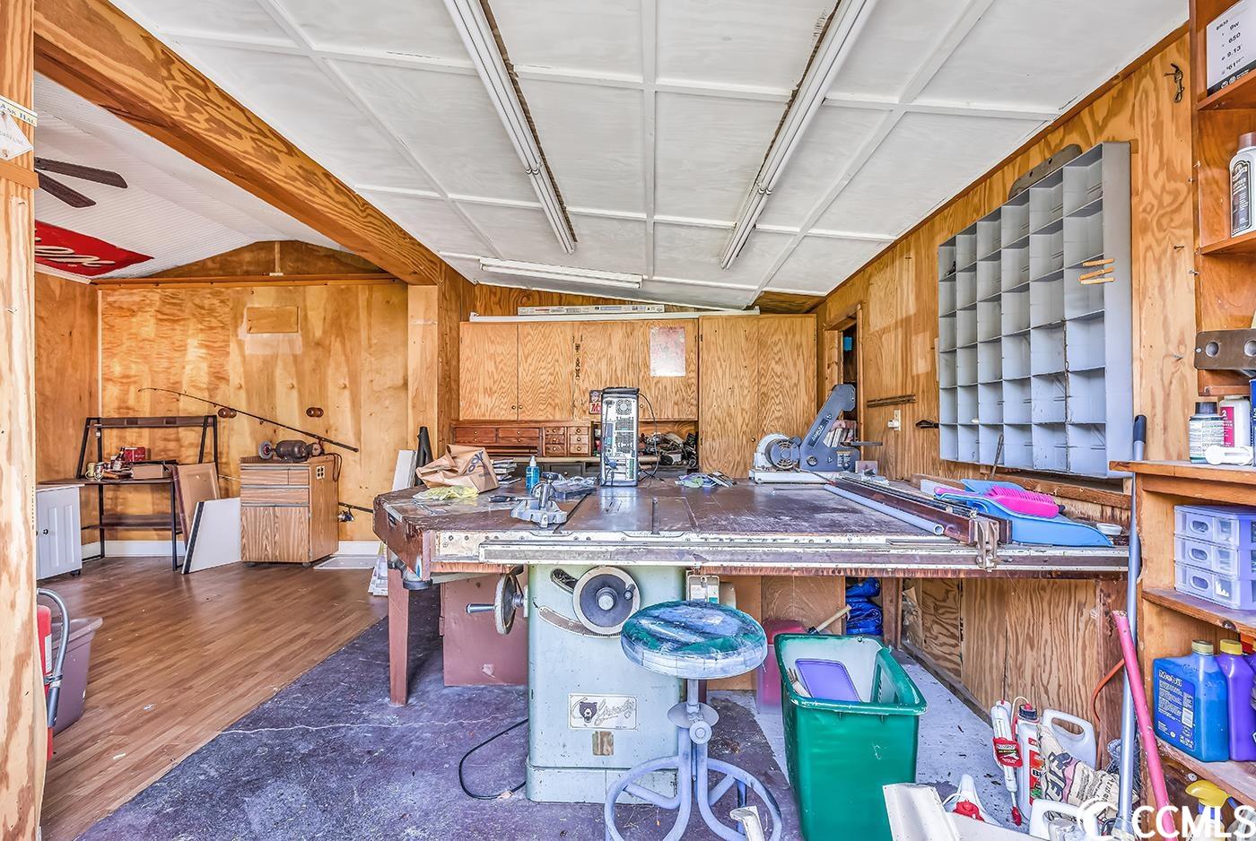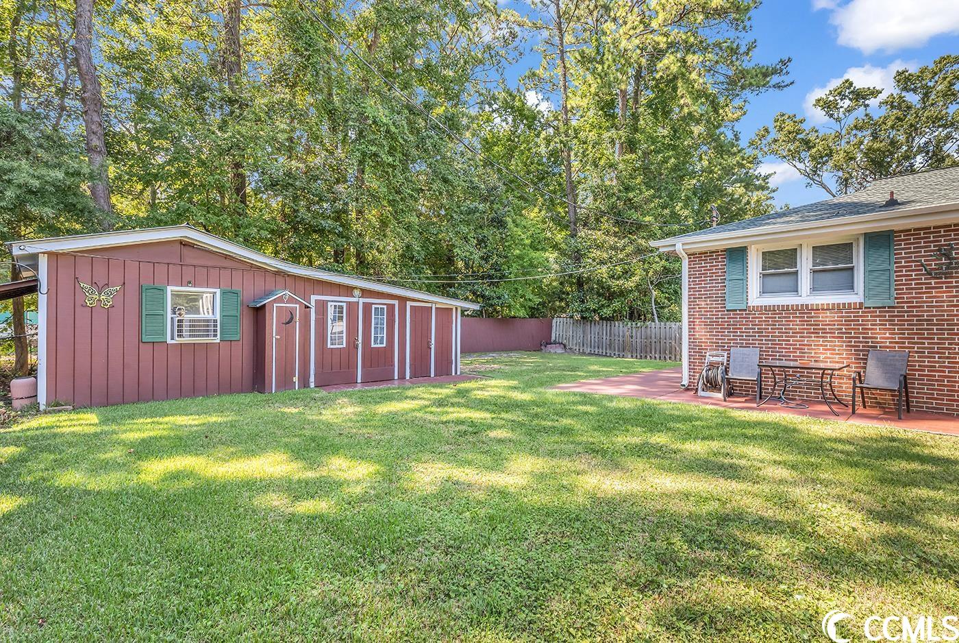 This is the one you have been waiting for! All brick home, well maintained that is literally 5 minutes to the beach with NO HOA! You enter into a front porch (has an ac unit) for relaxing year round. Once in the home you'll enjoy easy care laminate flooring throughout plus tile in kitchen and bathrooms. The kitchen is very large with a ton of custom cabinets and new stainless steel appliances . Dining furniture provides plenty of seating for your meals. Adjacent to the kitchen is a giant pantry perfect for all of your food items and plenty of storage for kitchen equipment. A generous sized laundry room includes the washer and dryer, more storage and a sink for quick clean up from the side yard entrance door. Master bedroom is huge with lots of light and includes a king size bed and other furnishings. Adjacent master bath has a tub shower combo and closets provide plenty of storage. Two other guest bedrooms share a jack and jill bathroom with tub/shower combination. The outdoor workshop is perfect for anyone needing additional storage or someone who enjoys woodworking as there is plenty of space for all of your tools.....and everything in the workshop conveys including tools and equipment. This space in the workshop could also house a golf cart or motorcicle. Large driveway can accommodate up to 6 cards, boat, truck etc . The property has been well cared for with mature landscaping and a a very generous sized fenced in lot perfect for your furry friends! All major items have been updated including the roof replaced in 2018. This home is being sold furnished and is move in ready. Ideal as a primary residence, vacation home or investment property. NO HOA. This home is being sold AS IS.