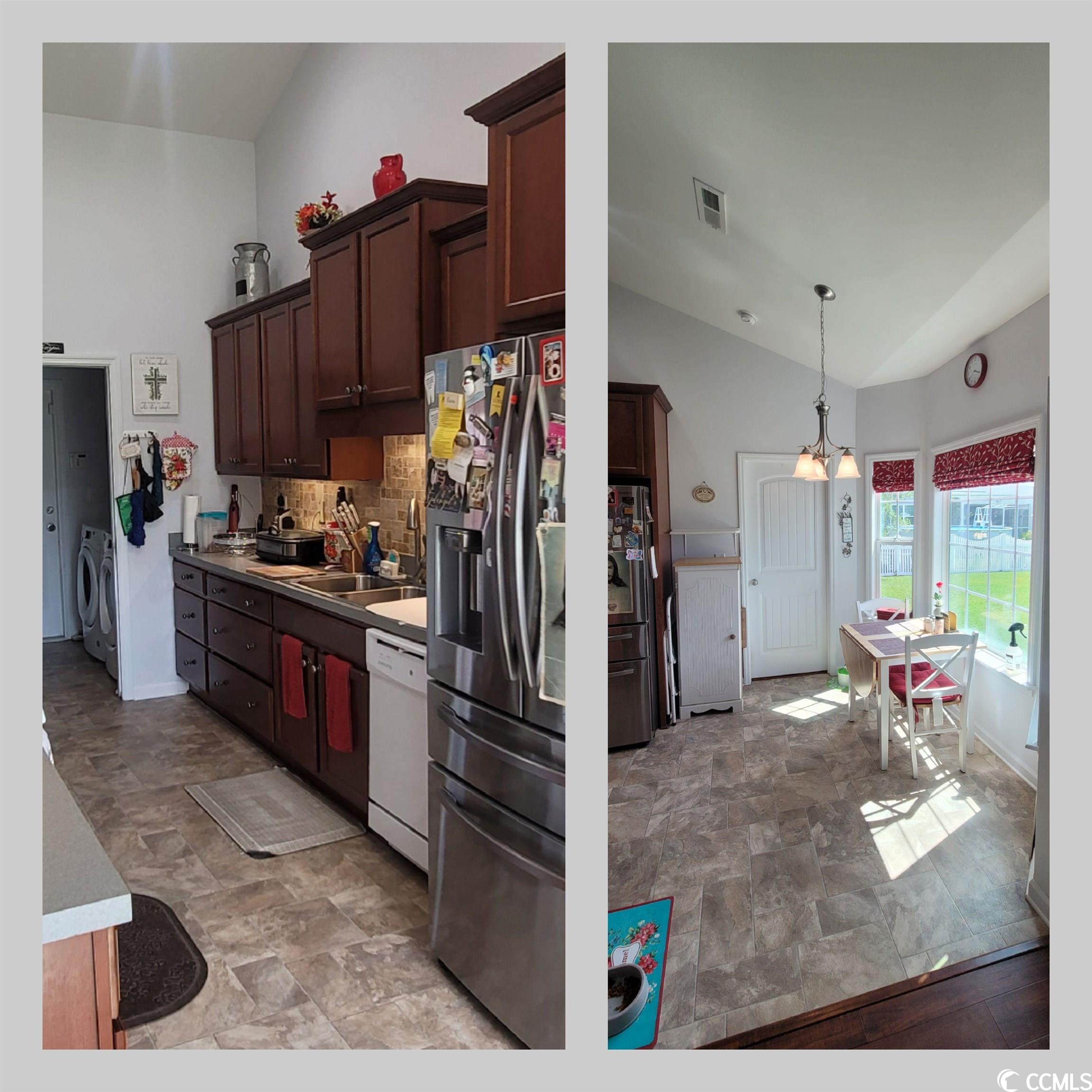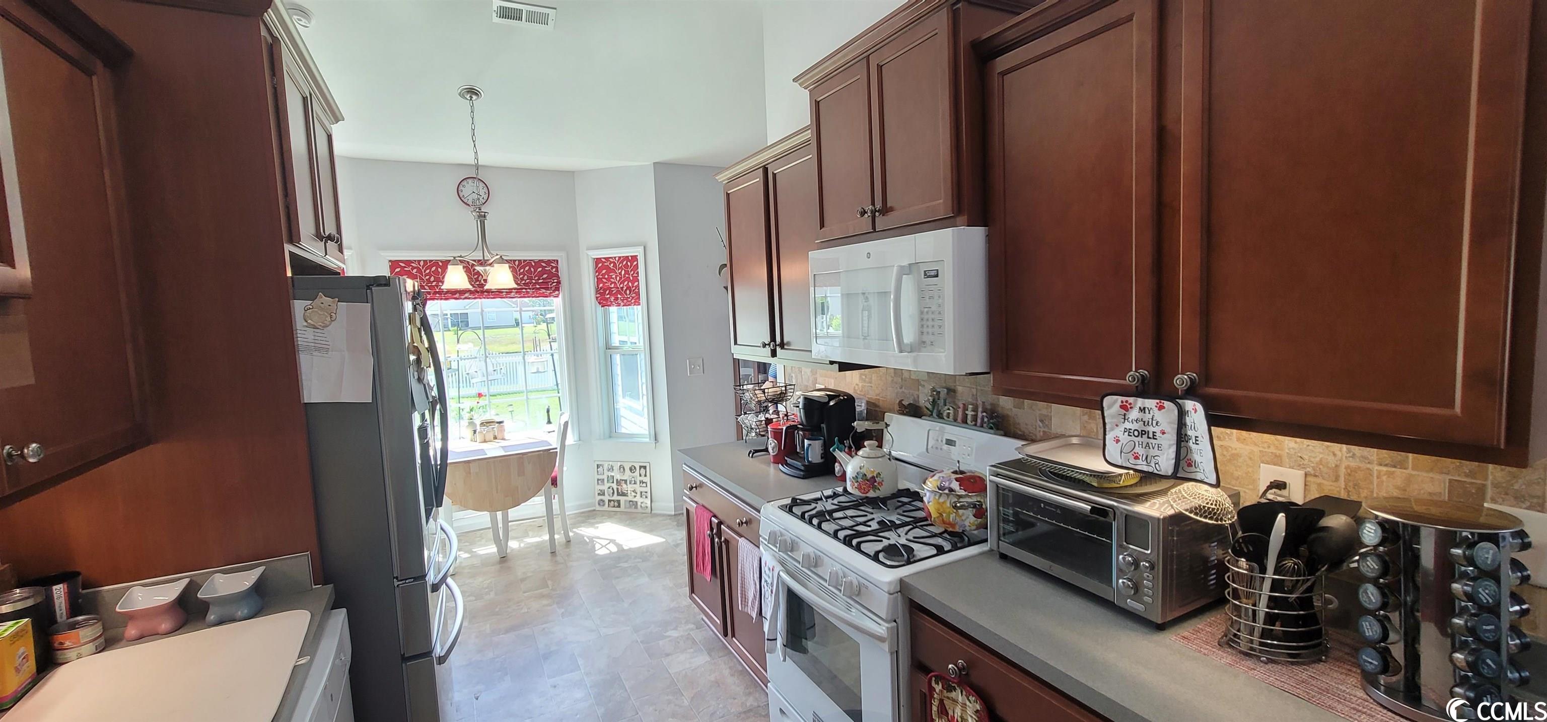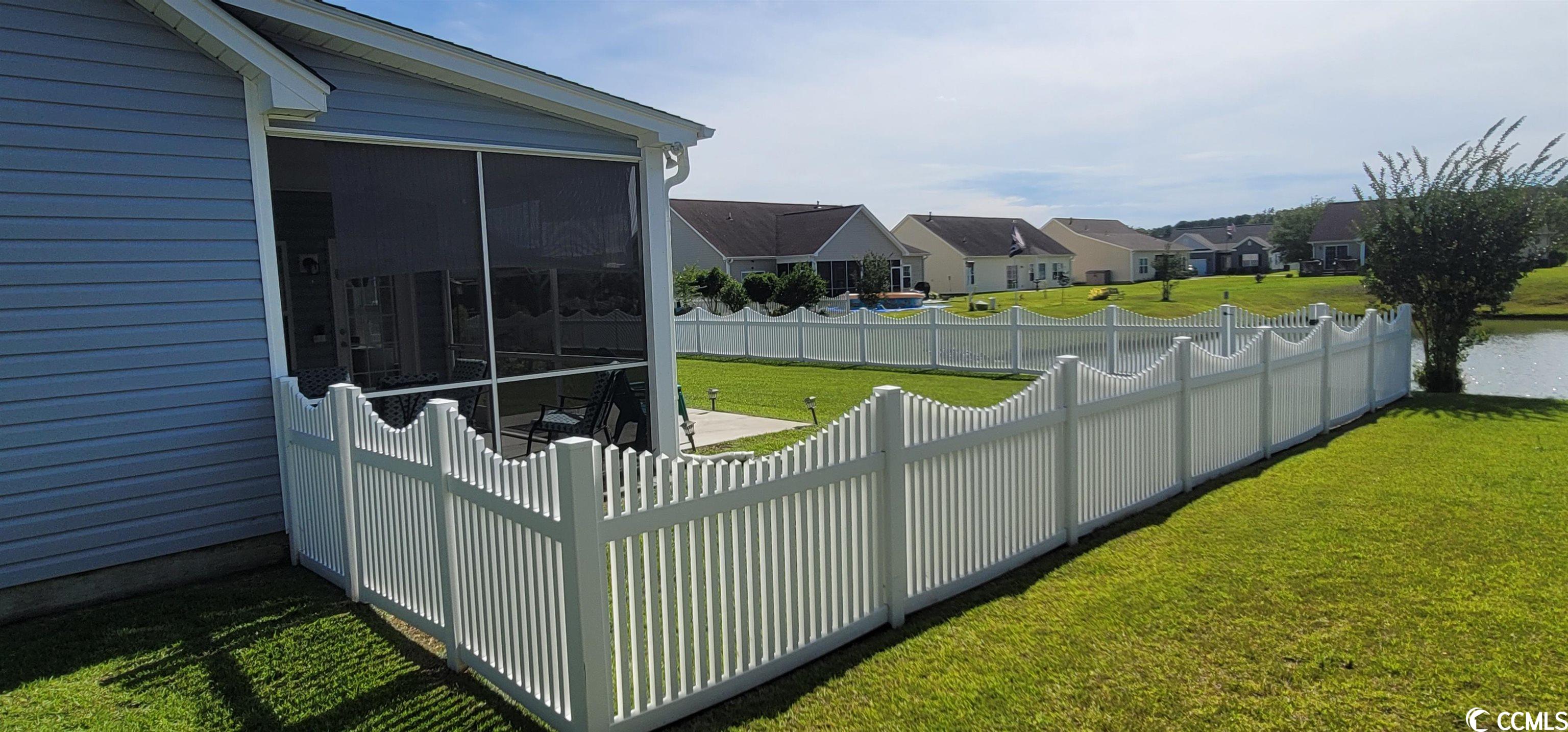 Welcome to this beautiful lake front, split plan home. Enter spacious living room with high vaulted ceilings from inviting entry porch. Carolina room provides a tranquil setting with plenty of natural light overlooking the water. Ceramic tile back-splash, breakfast nook and loads of storage in the kitchen. Laminate floors throughout. Large primary bedroom with walk-in closet and private bath balanced by remaining two bedrooms and full bath on opposite side of home. Lake view from almost every room. Convenient screened porch off Carolina room opens to sizeable fenced backyard. Professional landscaping creates solid curb appeal. Great Conway location in well established natural gas community near shopping and restaurants. This beautiful lake front property offers ideal design and setting for graceful living.