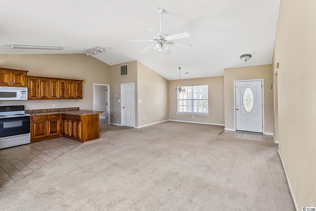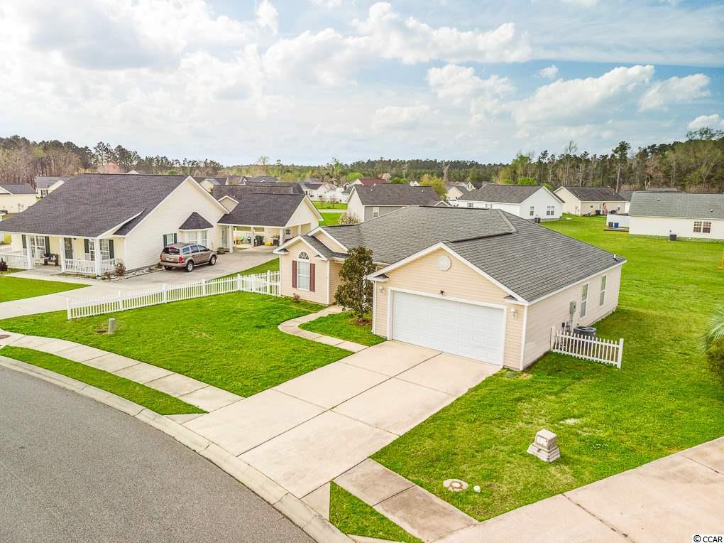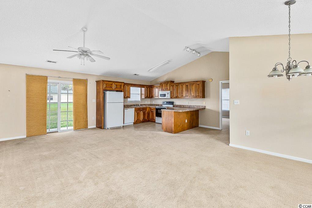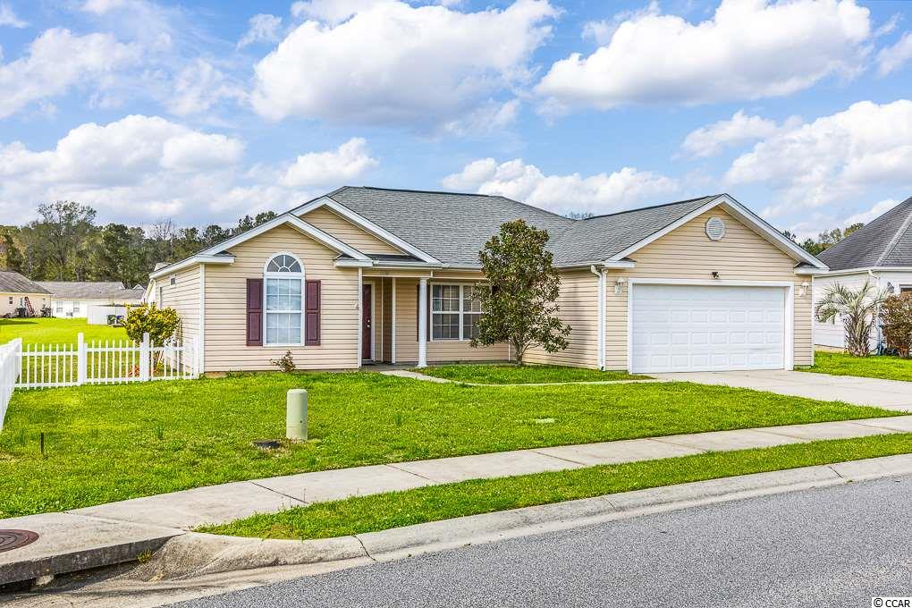 Lovely ranch home style home located in an USDA eligible area with 100% financing and inside the city limits of Conway, SC. A charming single story home featuring a spacious layout of 3 bedrooms and 2 bathrooms. Very clean, modern colors and move in ready! Beautifully landscaped with an adorable front porch. Upon entry is the open concept living room, dining room, and kitchen. Featuring high vaulted ceilings and bright windows. The kitchen has maple colored cabinets with black and white appliances. The master bedroom is located off the kitchen and features a walk in closet and on suite bathroom. The bathroom has a tub/ shower combo with a vanity and sink area plus toilet. The laundry room has ample space for a full size washer /dryer. Leading from the laundry room is the spacious two car garage. The other 2 bedrooms are located on the opposite side of the home. Featuring ceiling fans, carpeting, and plenty of closets. The second bathroom features a tub/ shower combo with a sink and toilet plus double linen closets. The sliding glass door leads outside to a small patio and a large backyard. There is plenty of room for privacy fencing in the backyard for extra privacy. The Wood Creek neighborhood is quiet and charming with LOW HOA fees! The neighborhood has beautifully landscaped sidewalks and trash included in the dues. Located only minutes from downtown Conway, SC with all the best dining, shopping and attractions. Be sure to add this home to your list today!