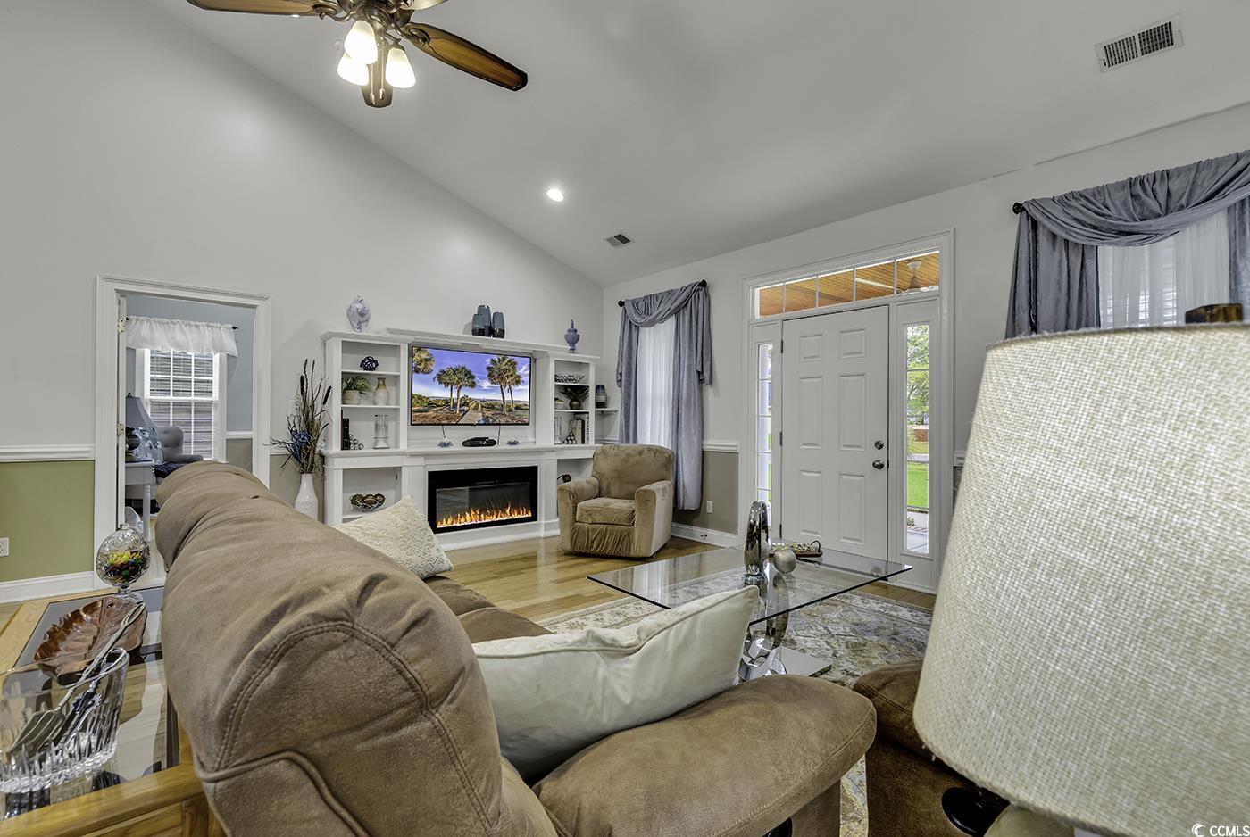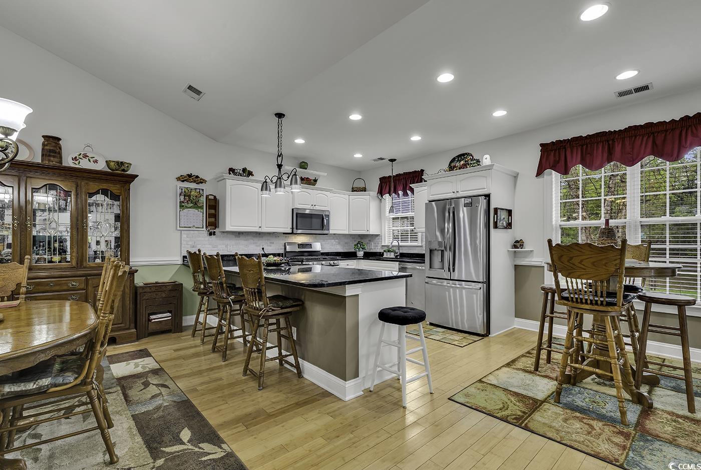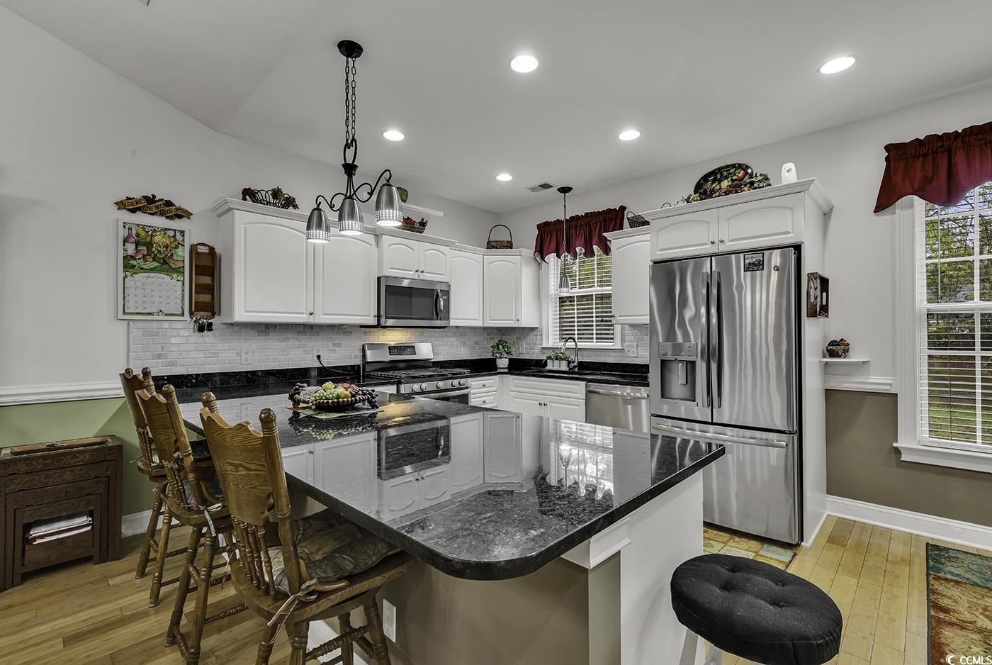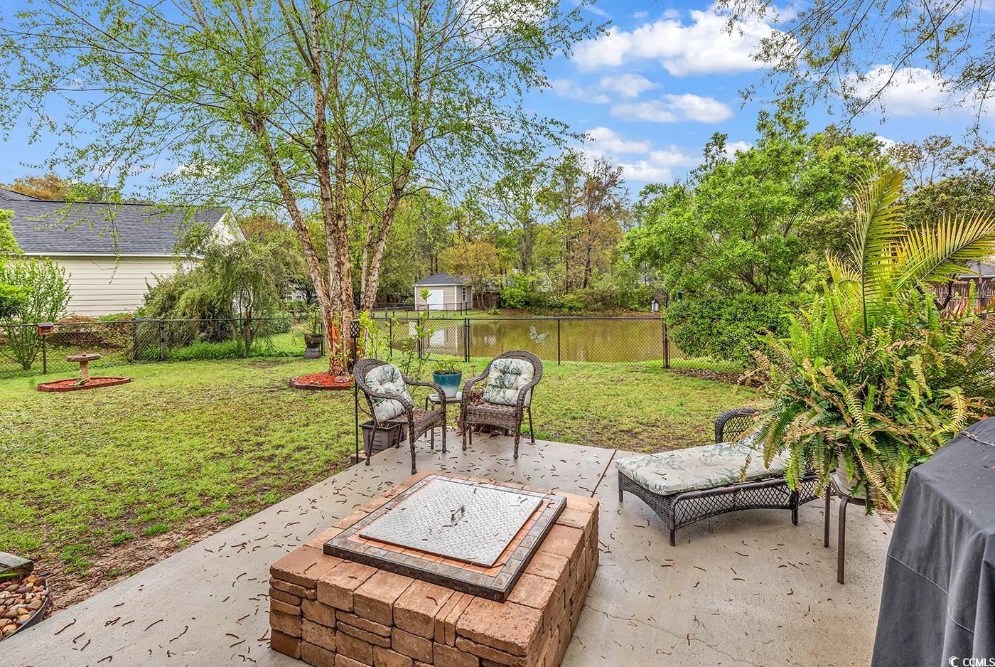 Take advantage of this incredible opportunity, this charming 3-bedroom, 2-bathroom home nestled in Hagley Estates. Boasting an open concept layout with generous counter and cupboard space in the kitchen, it's tailor-made for comfortable living. The expansive owner's suite and bathroom. Set on a substantial corner lot, this home features a one-car garage with additional storage space, exquisite landscaping, and a fenced backyard that overlooks a tranquil spring fed pond. Relax and unwind on the large front porch or back patio, both perfect for leisurely moments. Benefit from private irrigation sourced from the pond. Positioned halfway between the Intracoastal Waterway and the beach, it offers the best of both worlds. Plus, with Pawleys Island's shopping, dining, and ocean just moments away, convenience is yours to enjoy. Don't let this opportunity pass you by! Bring all offers!