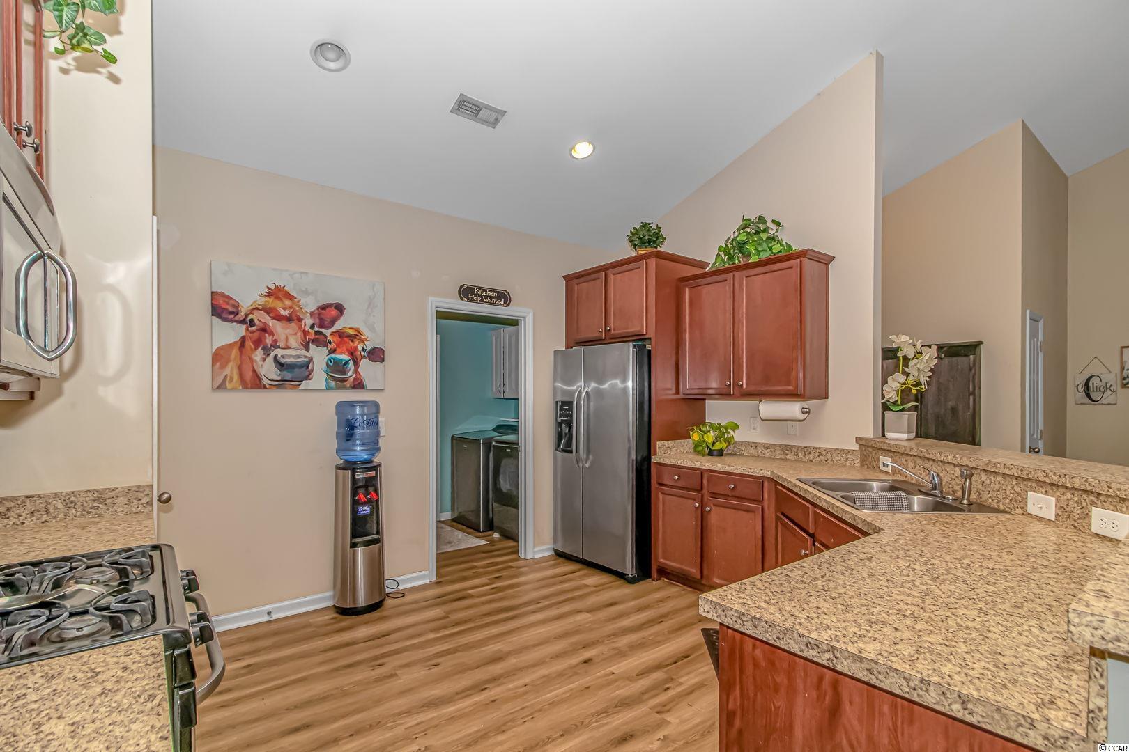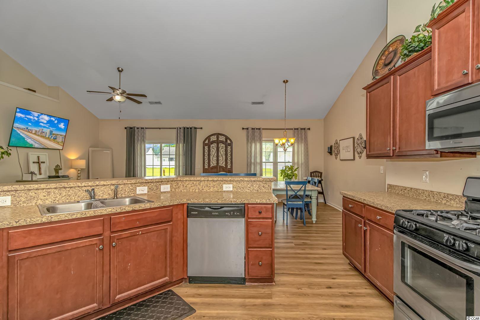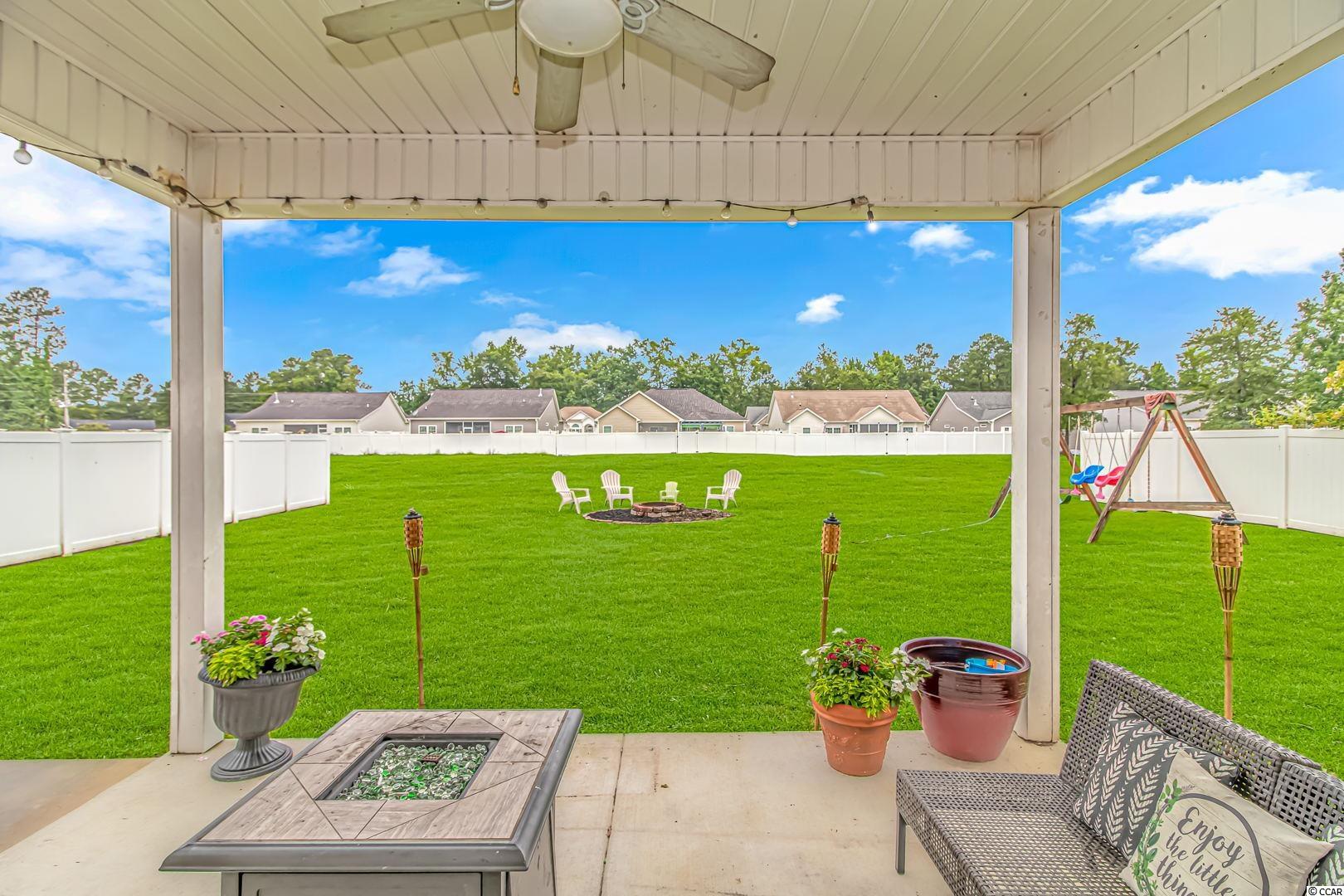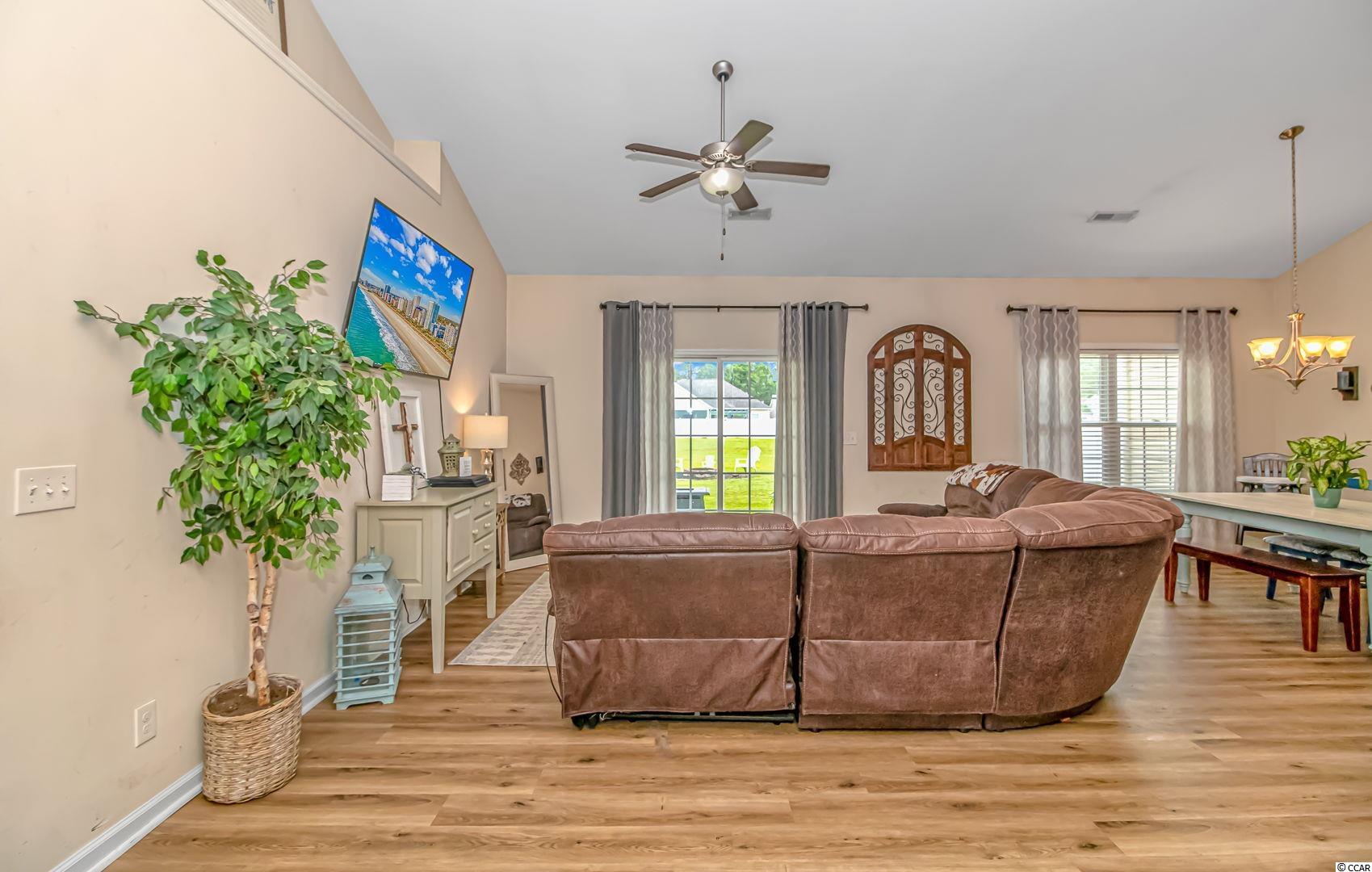 Welcome Home to 113 Yeomans Drive located in the heart of Conway, SC. Upon pulling into the driveway take notice of the well established and mature landscaping, two car garage, brick veneer and custom light fixtures. Walking up the concrete sidewalk, past the spacious front porch through the storm and front door you'll enter this fresh oasis. The entryway overlooks the main open concept living area which provides ample space, natural light, vaulted ceilings, custom light fixtures and lux LVP flooring throughout. The living area provides a ceiling fan, coat closet and sliding glass doors that draw your attention to the covered patio that overlooks the backyard featuring plush grass and a custom fire pit. Adjacent to the living area is the dining area which has enough room for a great size table to fit the whole family and rests just in front of the kitchen. The kitchen boasts hard surface countertops, stainless steel appliances, custom cabinets with crown molding, a pantry, and large breakfast bar that overlooks the main living areas. To the left of the main living area is where the master bedroom rests. This master bedroom comes equipped with tray ceilings, a ceiling fan, lush carpeting and large windows with a lovely view of the backyard and an ensuite bathroom. The master bathroom features laminate flooring, a large standing shower with seat, a private toilet area, and double sink vanity with ample storage as well as the master closet which has a window. The home is enhanced by a split floor plan so the two guest bedrooms and guest bathroom are located on the opposite side of the home to the right of the main living areas. The two guest bedrooms feature lush carpeting, ample natural light, closets, and ceiling fans. The guest bathroom has laminate flooring, a vanity with sink and storage, a shower tub combo and toilet. Just beyond the guest bedrooms is where the laundry closet is as well as private access to the two car garage. This home is located in the community of Barons Bluff and provides a community pool and recreation area. This property is located close to downtown Conway which rests along the Waccamaw River and has a plethora of local shops and eateries to enjoy as well as a short car ride to the beach and all the tourist attractions it has to offer. Schedule a tour today, buy this home tomorrow!