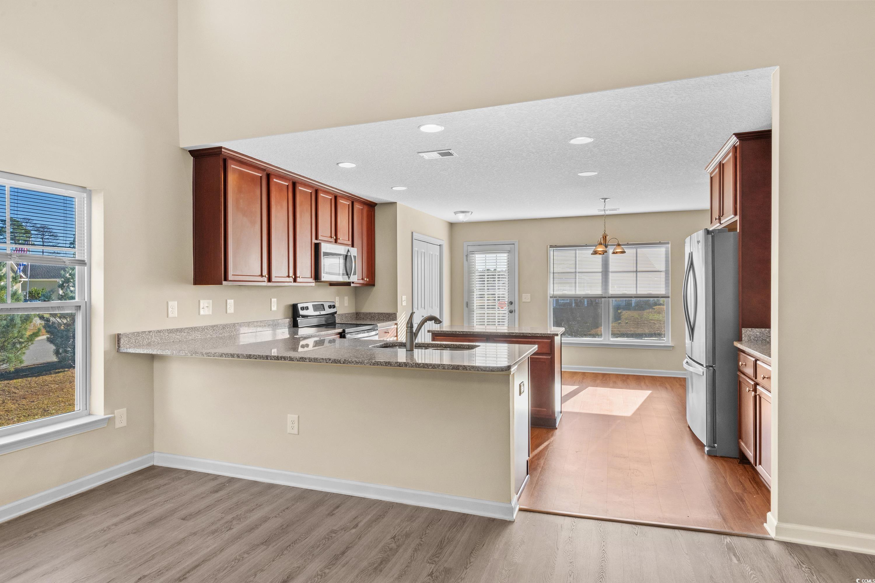 Welcome to your dream home in the heart of the highly sought-after Carolina Forest area in Myrtle Beach, SC! This exquisite 3-bedroom, single-family residence sits proudly on a spacious corner lot, offering unparalleled views of a tranquil pond. As you enter, you'll be greeted by an open and inviting floor plan that seamlessly blends modern convenience with classic charm. The living space is bathed in natural light, creating a warm and welcoming atmosphere for both relaxation and entertainment. The well-appointed kitchen features stainless steel appliances, granite countertops, and ample cabinet space, making it a chef's delight. The first level owner's suite provides a peaceful retreat with a functional ensuite bathroom and generous closet space. The additional two bedrooms offer comfort and versatility for family, guests, or a home office, ensuring that this residence caters to your every need. Located in the heart of Carolina Forest, you'll have access to walking/biking paths, schools, shopping, and dining, all within a short drive. This home offers the perfect combination of tranquility and convenience, allowing you to enjoy the best that Myrtle Beach has to offer. All measurements and data are deemed reliable, but not guaranteed, subject to the verification of the purchaser and purchaser's agent. Inquire today!