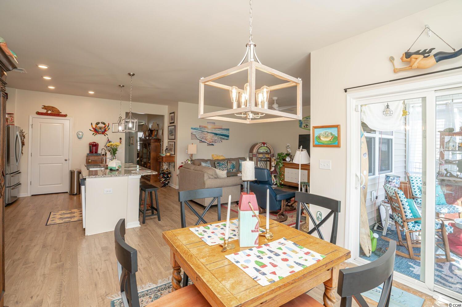 BACK ON THE MARKET NO FAULT OF SELLERSl, Beautiful 3BR 2BA home vacant and ready for quick move in. Heather Glen offering with some of the finest amenities in all of Little River. This 2 year old Aria, J Model is freshly painted has many beautiful and value added upgrades. The Fenced lot gives you great pond and fountain views. Owner has completed many upgrades to this home including: wood flooring, new lighting fixtures, new plumbing fixtures in baths and kitchen, high commodes, gutters have been added, covered rear porch screened, large concrete 10'x28'patio added behind the screened porch, storm shutters with clear panels for all doors and windows, including wood look blinds on all windows, as well as ceiling fans in all bedrooms and unique retractable fan light in the entry hall.. The exterior of the home has been landscaped and the rear has been fenced with aluminum wrought iron look fencing. This gives you a freshly painted upgraded home with a kitchen fully appointed with all major appliances in stainless steel and granite counter tops. All the upgrades give you a better than new offering and it is ready for your touches to make it home quickly. The community has gardens, resort pool amenities, and one of the largest club houses on the grand strand, including owner gym well outfitted facilities. The seller is providing a prepaid home warranty effective to September 29th. of 2024 and the transfer is paid to new owners by sellers at closing.The Heather Glen community has stunning amenities including berry gardens, doggie park, and a spectacular pool, clubhouse and work out area. Heather Glen is located just as you enter Little River, SC from the North Carolina line and offers fine dining, golf, the spectacular Cherry Gove beaches, boating including marinas are all nearby. Little River offers Great Dining, entertainment and North Myrtle Beach shopping is all close by. Move right in to this beautiful upgraded home that is ready for a new owner.