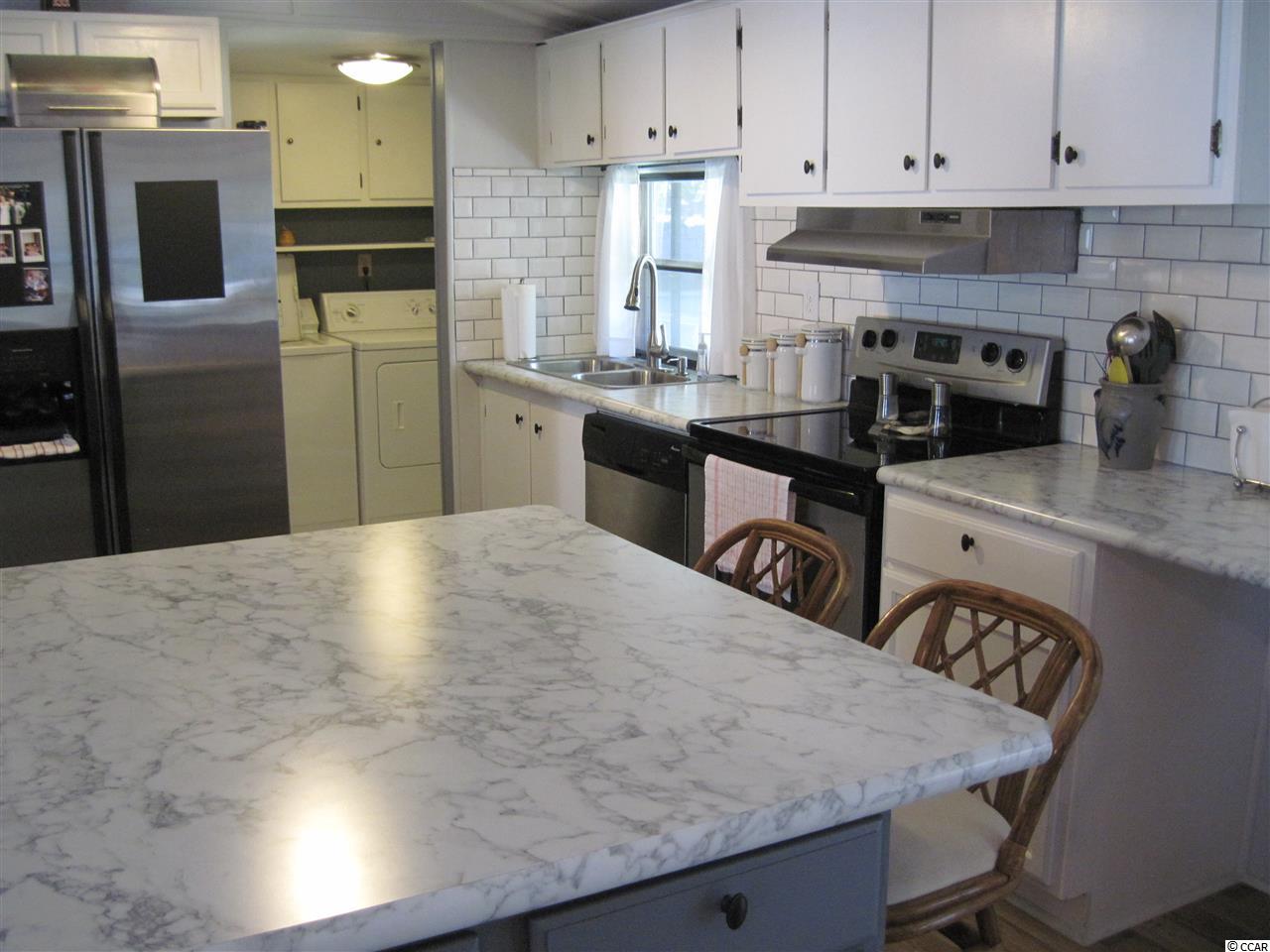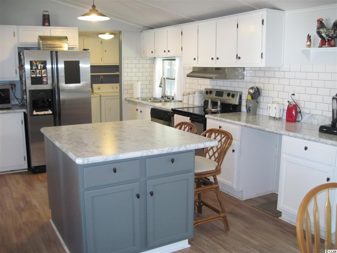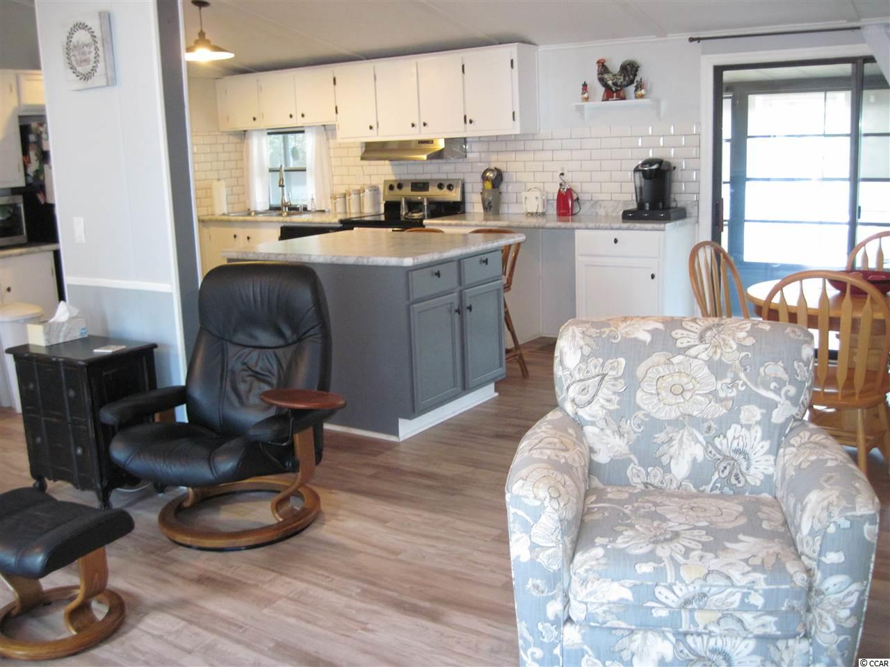 3 BR 2 BA manufactured home in Captain's Cove, a quiet community for folks 55 & older located in Murrells Inlet, SC, approximately 15 minutes South of Myrtle Beach. Community has a clubhouse & pool, and lots of activities for residents who wish to participate. Near Murrells Inlet's famous sound front restaurants & boardwalk, close to Huntington Beach (Oceanfront) State Park & beautiful Brookgreen Gardens. Also near lots of golf courses & many other types of entertainment. Only minutes from a modern hospital & doctors' offices. This is a beautiful home in a great location. It is sitting on a corner lot, has a large new front deck, a nice back screen porch, plus a large L-shaped side screen porch. It has been beautifully remodeled during the past year. A new metal roof was installed on the home and on storage shed, replaced sub flooring in kitchen, din rm, liv rm, bath and mud rm, then new laminate floor covering thru-out with water proof floor in laundry rm. New kit cabinets, counter tops and back splash, center island, dish washer and microwave. Fresh paint inside and out, and much more, too much to list. You may call for a complete list. This is one of the nicest homes in the community, it won't last long call today.