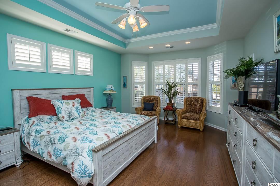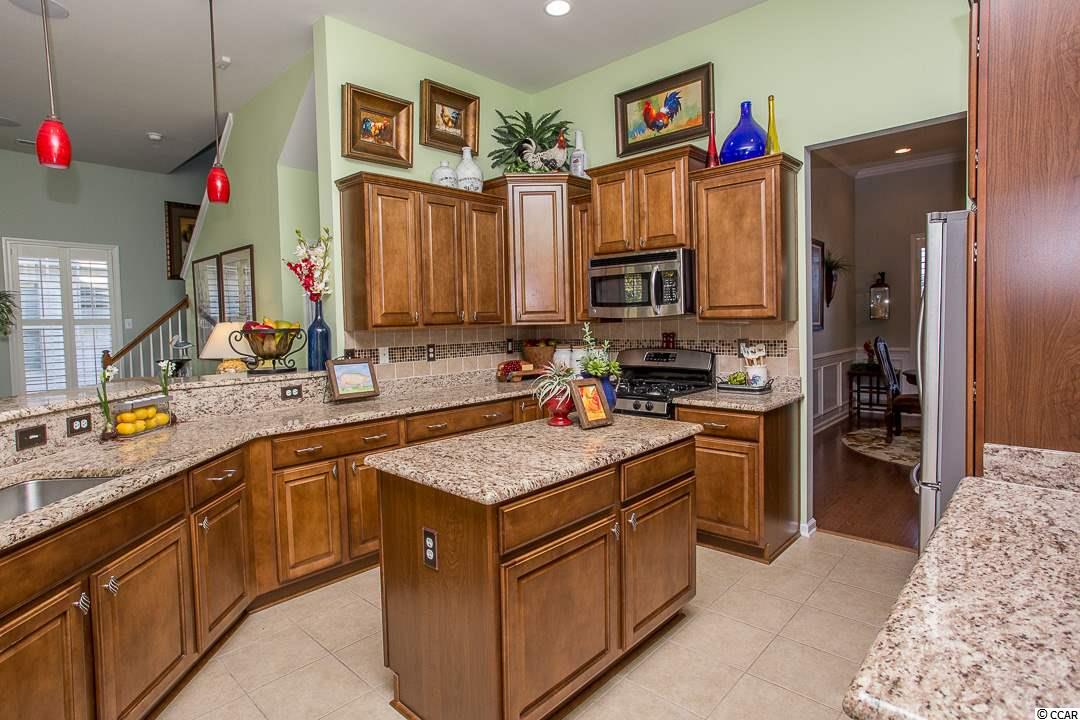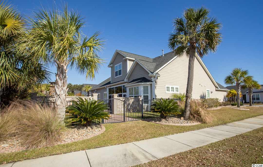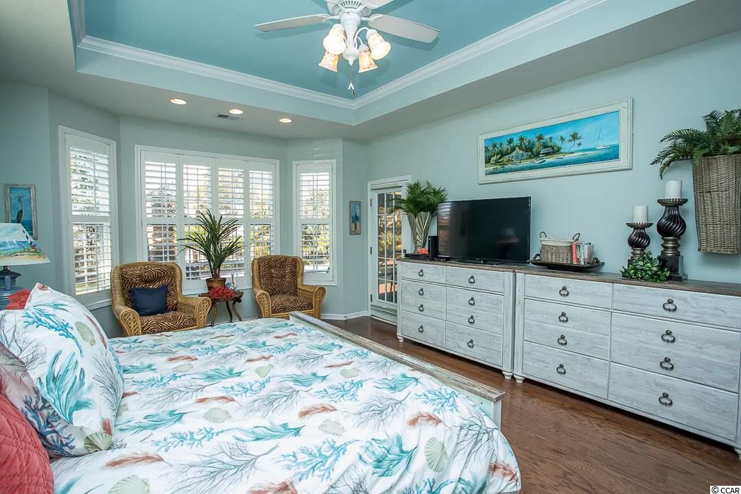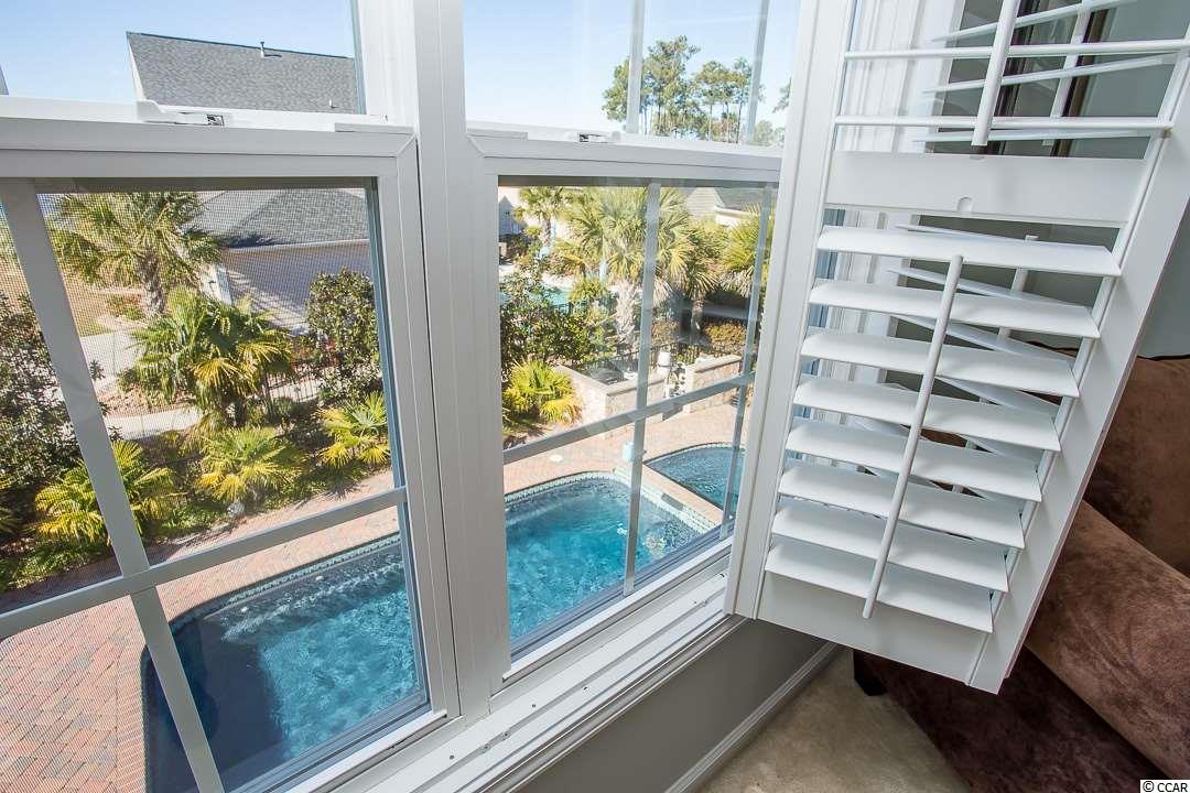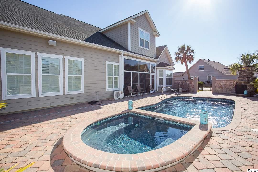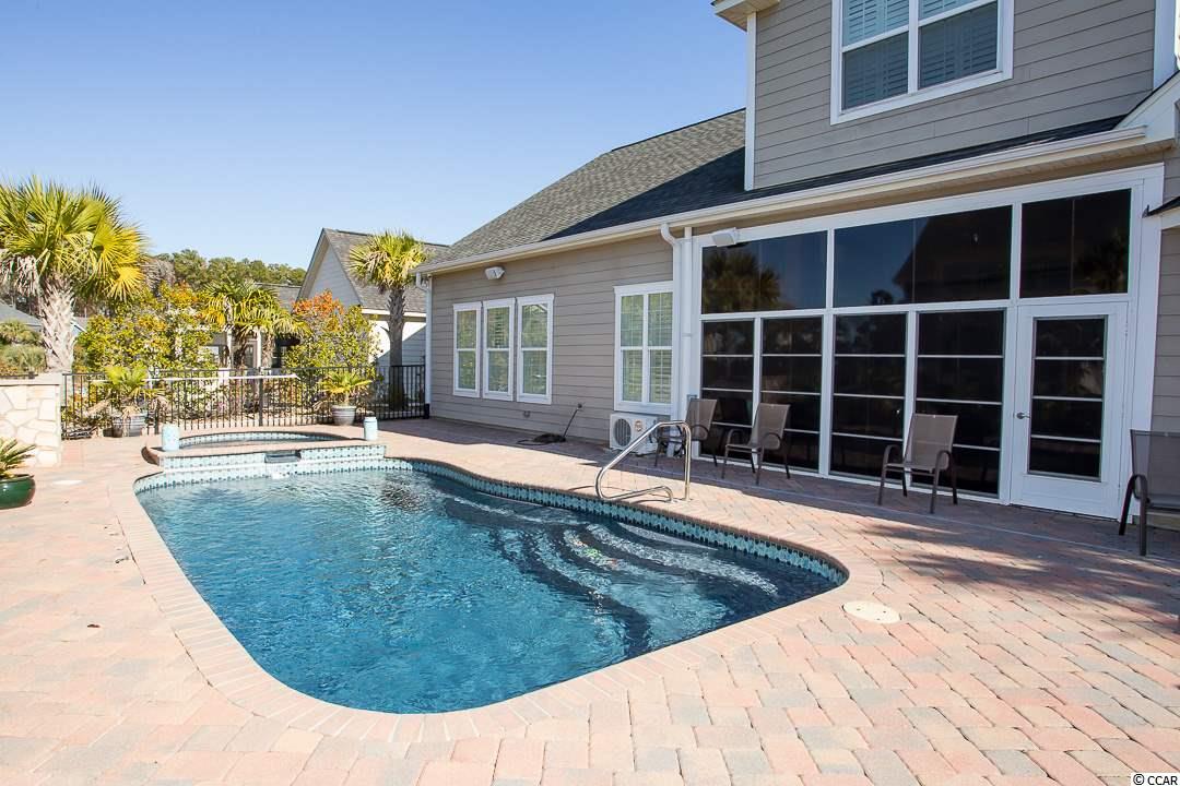 Just a golf cart ride away to the Market Common where you will enjoy upscale shopping, restaurants, movies, parks, lakes, walking trails. In minutes you can be sitting on the white sandy beaches at the oceanfront Myrtle Beach State Park. Enjoy the sand, surf & fun then come home to your own personal tropical backyard oasis.This 4BR/3.5BA home includes an inground fiberglass pool with a heat and cooling system and separate heating for the hot tub. A stone wall and iron fence enclosure, pavers, fireplace and professionally landscaped yard complete your retreat. The exterior is low maintenance fiber cement with accents of stacked stone, shake, architectural shingles and metal roof. The interior of this home is just amazing with hardwood flooring throughout the first level, tile in all the bathrooms and laundry, and carpet in the 14x22 4th bedroom upstairs. Custom plantation shutters, lighting & ceiling fans, recessed lights, vaulted and tray ceilings. A private master suite with a large bay window, access to Carolina room, walk-in closet, en-suite with a garden tub, glass enclosed shower and double sinks. Two additional guest bedrooms on the opposite side of home share a jack and jill bath. A formal dining room and living room give extra space for entertaining. The large chefs kitchen offers granite counter tops, tile back splash, center island, breakfast nook and all stainless steel appliance include a gas range and Samsung french door refrigerator. Family room off kitchen has a gas fireplace and surround sound. A must to see! Call today! Square footage is approximate and not guaranteed. Buyer is responsible for verification.