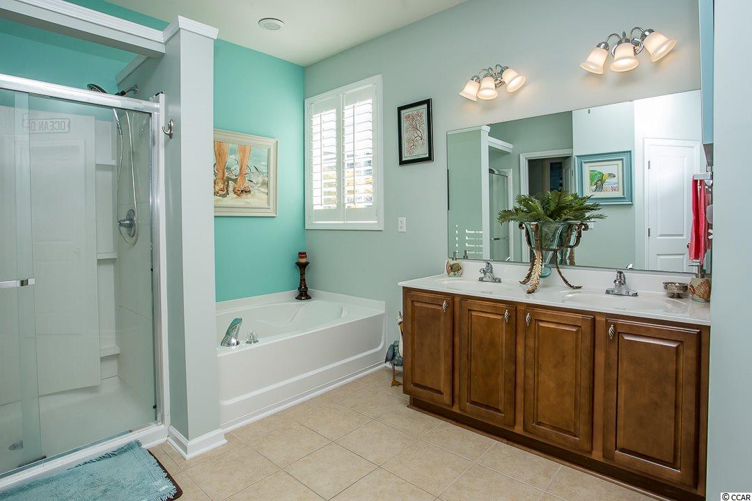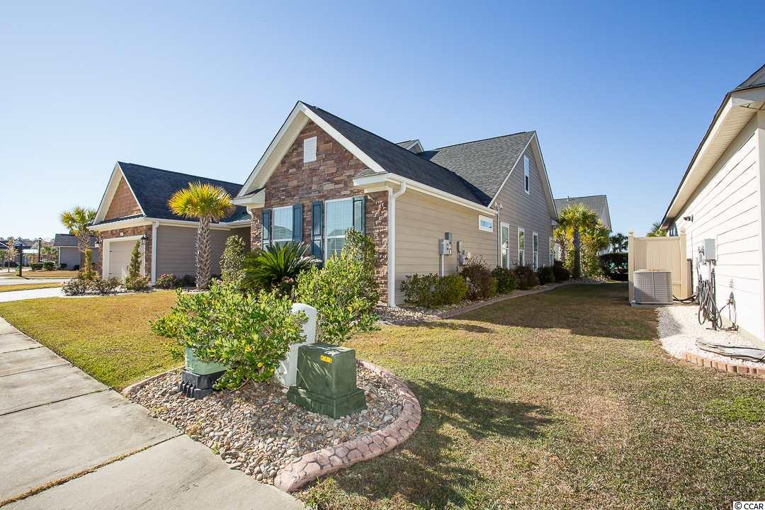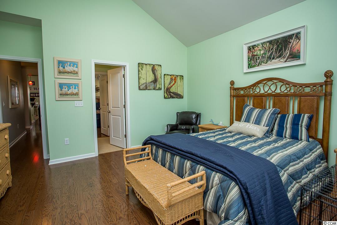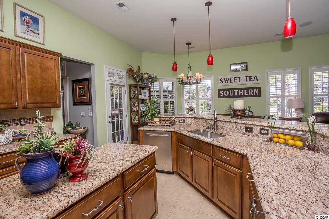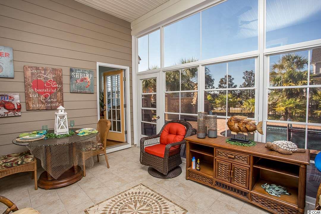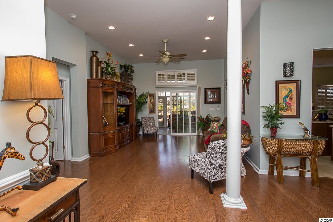 Just a golf cart ride away to the Market Common where you will enjoy upscale shopping, restaurants, movies, parks, lakes, walking trails. In minutes you can be sitting on the white sandy beaches at the oceanfront Myrtle Beach State Park. Enjoy the sand, surf & fun then come home to your own personal tropical backyard oasis.This 4BR/3.5BA home includes an inground fiberglass pool with a heat and cooling system and separate heating for the hot tub. A stone wall and iron fence enclosure, pavers, fireplace and professionally landscaped yard complete your retreat. The exterior is low maintenance fiber cement with accents of stacked stone, shake, architectural shingles and metal roof. The interior of this home is just amazing with hardwood flooring throughout the first level, tile in all the bathrooms and laundry, and carpet in the 14x22 4th bedroom upstairs. Custom plantation shutters, lighting & ceiling fans, recessed lights, vaulted and tray ceilings. A private master suite with a large bay window, access to Carolina room, walk-in closet, en-suite with a garden tub, glass enclosed shower and double sinks. Two additional guest bedrooms on the opposite side of home share a jack and jill bath. A formal dining room and living room give extra space for entertaining. The large chefs kitchen offers granite counter tops, tile back splash, center island, breakfast nook and all stainless steel appliance include a gas range and Samsung french door refrigerator. Family room off kitchen has a gas fireplace and surround sound. A must to see! Call today! Square footage is approximate and not guaranteed. Buyer is responsible for verification.