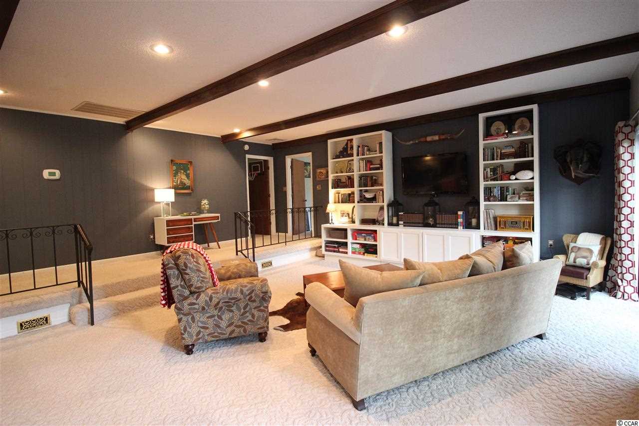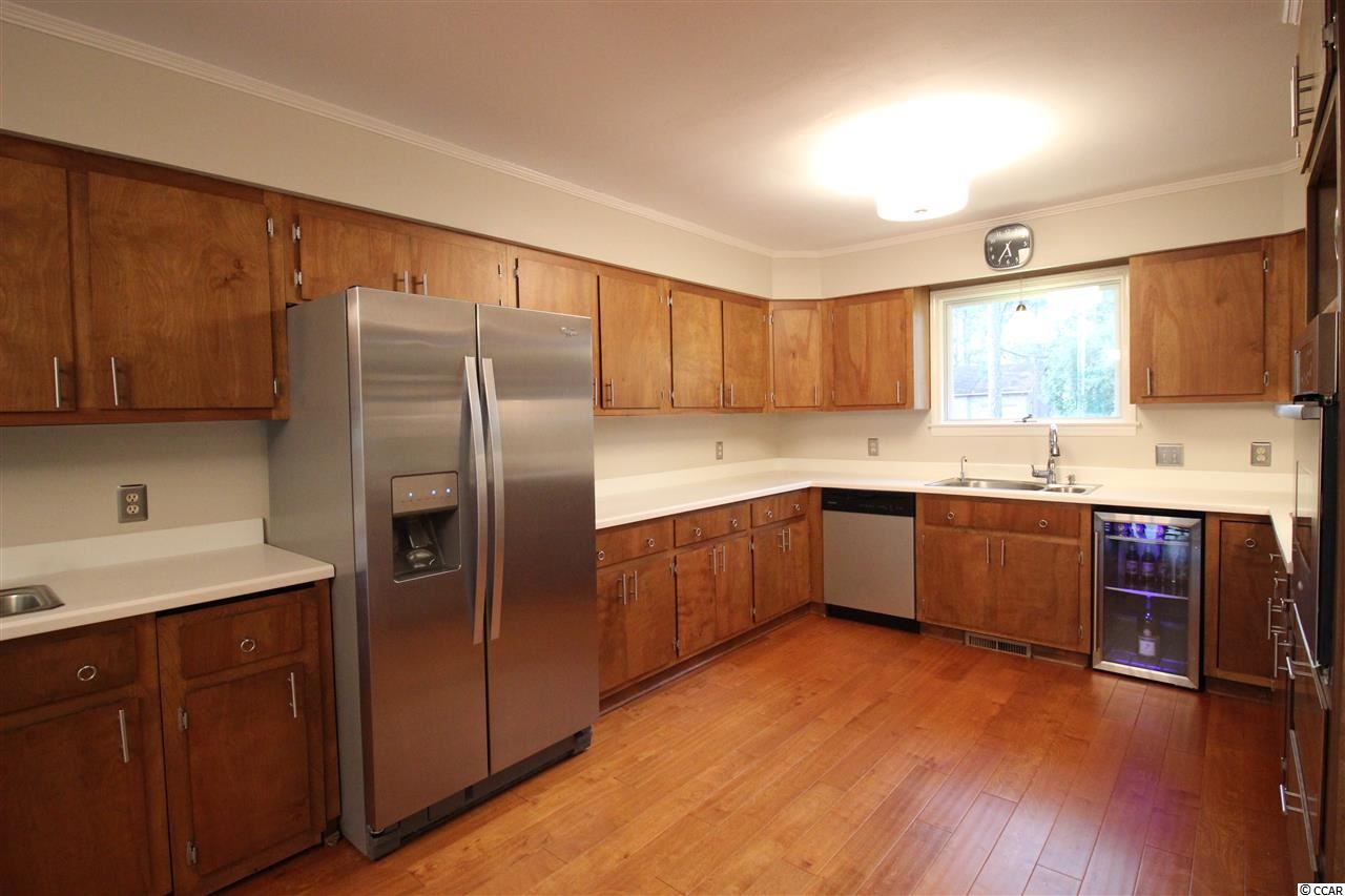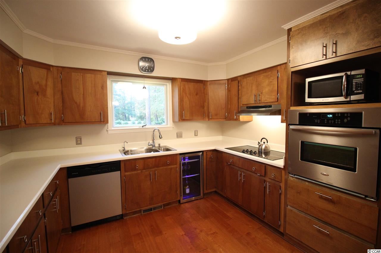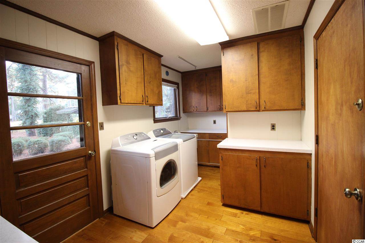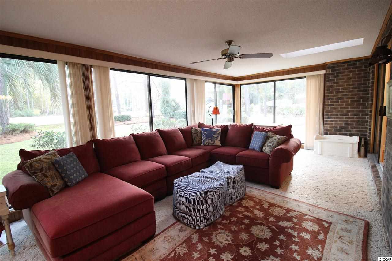Great home on one acre lush and mature lot on Founders Club golf course fairway and green. Well appointed and tastefully updated three bedroom home features large master suite and spare bedrooms with Jack and Jill baths. Formal and eat in dining rooms. Sunken family room, master bedroom and carolina room all have expansive views of the floral landscaped yard through to the fairway and green.Utility room has built in desk, laundry and a half bath. Heated shop/storage in garage could be small study or home office. Huge yard lends to many uses and has detached storage shed,irrigation, firepit,and plenty of room for boats or RV's. Brand new HVAC and ductwork, appliances, standing seem metal roof and brick exterior should lend peace of mind and comfort in this low maintenance and updated home. Great neighborhood with little restrictions and convenient location close to public boat landing on waterway and short drive to beach.