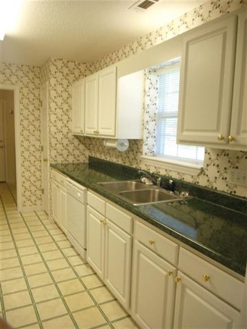 This beautiful home features a split floor plan. The living/dining area is uniquely shaped to allow for an area for tv area with built in book cases. The galley kitchen features a pantry and storage closet. Large utility room adjoins the garage. Master Bedrm. features 2 closets(one a walk in). Spacious master bath. Natural barriers on two sides of the back yard provide privacy. All measurements should be verified by potential buyer.