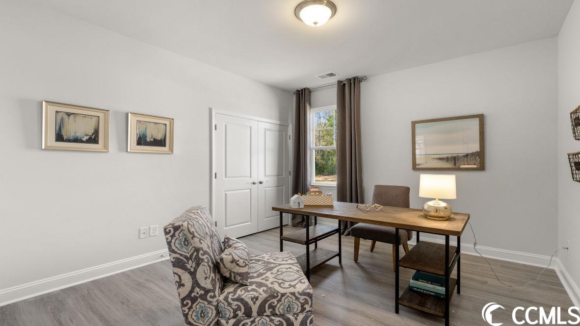 This is the previous Litchfield model home! Garage will be converted from sales office to regular functional garage. Home is sold as is. Blinds and window treatments will convey with the sale. Balance of the 10 year structural warranty will convey to new owner. The popular plan is now available in our new natural gas community where you will enjoy a spacious clubhouse with sprawling verandas, impressive swimming pool, conditioned fitness center, fenced dog park, playground area, and blueberry garden! Featuring four bedrooms all on one level, the Litchfield is one of our most desirable homes. The open concept design, lots of windows, and 11 ft. ceilings through the main living areas create a wonderful space for entertaining! This home has granite countertops, and beautiful yet durable wide plank laminate wood flooring. Extended front porch plus a large covered rear porch making the transition from indoor to outdoor living effortless! It gets better- this is America's Smart Home! Control the thermostat, front door light and lock, and video doorbell from your smartphone or with voice commands to Alexa. *Photos are of a similar Litchfield home. (Home and community information, including pricing, included features, terms, availability and amenities, are subject to change prior to sale at any time without notice or obligation. Square footages are approximate. Pictures, photographs, colors, features, and sizes are for illustration purposes only and will vary from the homes as built. Equal housing opportunity builder.)