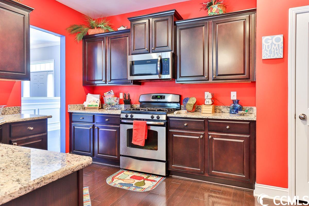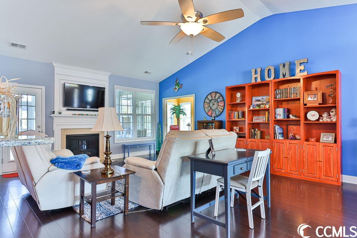 Welcome to 1189 Parish Way, a captivating 3 bedroom, 2 bathroom haven nestled within the esteemed Highlands at Withers Preserve community in the coveted Market Commons of Myrtle Beach. The open living room is adorned with high ceilings that amplify the sense of space. Sunlight dances through ample windows, highlighting the room's inherent warmth, while a charming fireplace stands ready to cast its cozy glow on tranquil evenings. The kitchen boasts sleek stainless steel appliances including a gas range. Storage is abundant with wood cabinets that harmonize functionality and aesthetics, accompanied by a convenient pantry. The breakfast bar stands as an inviting focal point, seamlessly merging with the living area. The master bedroom features tray ceilings that add a touch of elegance to the room's ambiance. A generously sized walk-in closet provides ample storage, while an inviting sitting area offers a private retreat. The master bathroom exudes tranquility with its dual sink vanity that speaks to modern convenience. A spacious walk-in shower and separate tub beckons you to indulge in moments of relaxation and self-care. Additionally, a bright and airy Carolina room adds to your entertaining or living space. A formal dining room sets the stage for intimate gatherings and cherished memories, while a dedicated laundry room ensures practicality is never compromised. The front porch offers a front-row seat to the neighborhood's vibrancy, allowing you to soak in the community's sights and sounds. The enclosed back porch provides a year-round haven, allowing you to bask in the outdoors regardless of the weather. The back patio, nestled within the fenced backyard, provides an ideal backdrop for entertaining or unwinding at the end of the day. Highlands at Withers Preserve offers a sparkling pool great for beating the heat on those hot summer days. Positioned just steps away from the Market Commons, your home is also a gateway to the finest amenities of Myrtle Beach - from the serene Myrtle Beach State Park to the allure of Broadway at the Beach, the retail therapy at Coastal Grand Mall, the timeless charm of Garden City Pier, and so much more. Don't miss your chance to experience Market Common living, book your showing today!
