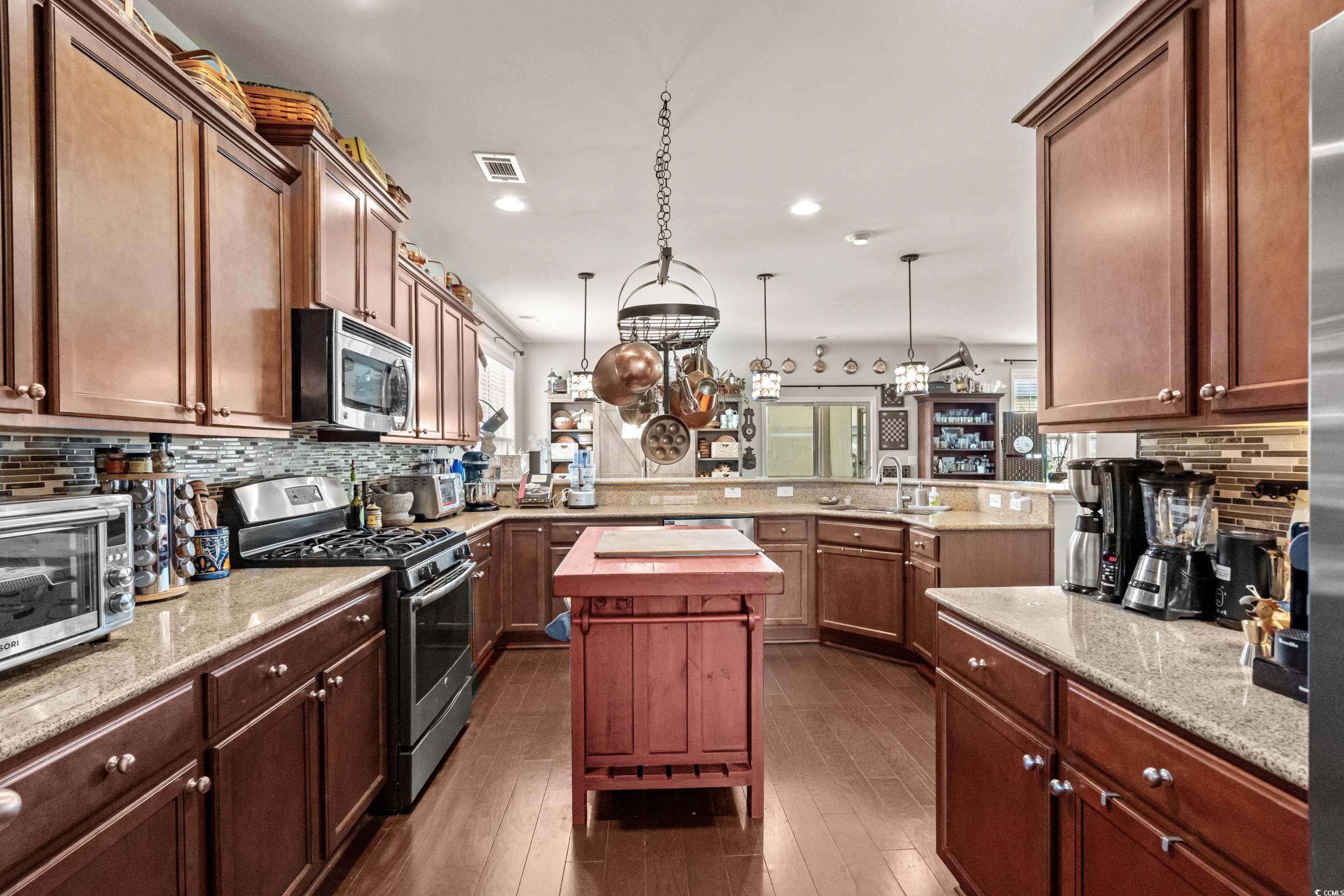 Large, Level pool-sized yard equipped with a 54"" tall fence. Perfect for parties, play and pets. It is all about LOCATION! Discover your dream home in this spacious two-story, 5 bedroom, 2.5 bathroom home in the heart of the Market Common. Highlands at Withers Preserve is a highly sought-after, vibrant community which boasts beautiful homes and curb appeal. As you enter this home you will notice elegant hardwood floors throughout the main living spaces. The home has a separate formal dining area which is perfect for hosting dinners and special occasions or can easily be turned into a useful space for your needs. The open floor plan, Kitchen/ Great Room, offers a seamless layout for entertaining and everyday living. The kitchen features modern stainless steel appliances which includes a gas stove and granite countertops. The great room includes a gas fireplace which gives it a cozy and relaxing ambiance. If sitting outside to enjoy the nice coastal breeze is more of your style you will most certainly enjoy the screened-in back porch and additional patio space. This particular home sits on a large over-sized corner lot, which is a rare find in the Market Common! The yard has been professionally landscaped and even includes beautiful olive trees! The 54"" fence in backyard is equipped with an 8' street side gate which conveniently permits vehicles to enter as needed for maintenance, deliveries or any future projects. The back yard is the ideal space for gardening, recreation, or even adding a pool! This is one of the few lots located in the Market Common that could accommodate a private pool. The possibilities are endless! All 5 generously sized bedrooms are located on the second floor with carpeting and fresh paint. Owners upgraded to a Rinnai gas powered hot water heater system which provides unlimited hot water. This home being nestled in the market common makes for easy access to dining, shopping, movie theater, parks, walking trails, Savannahs playground, the Myrtle Beach State Park and less than 2 miles from the Atlantic Ocean! The community pool for Highlands at Withers Preserve is located on Yorkshire Pkwy. The current owners are also members of the Market Common resort pool & fitness center. Membership is transferrable. This is one you don't want to miss. Schedule a private tour today!