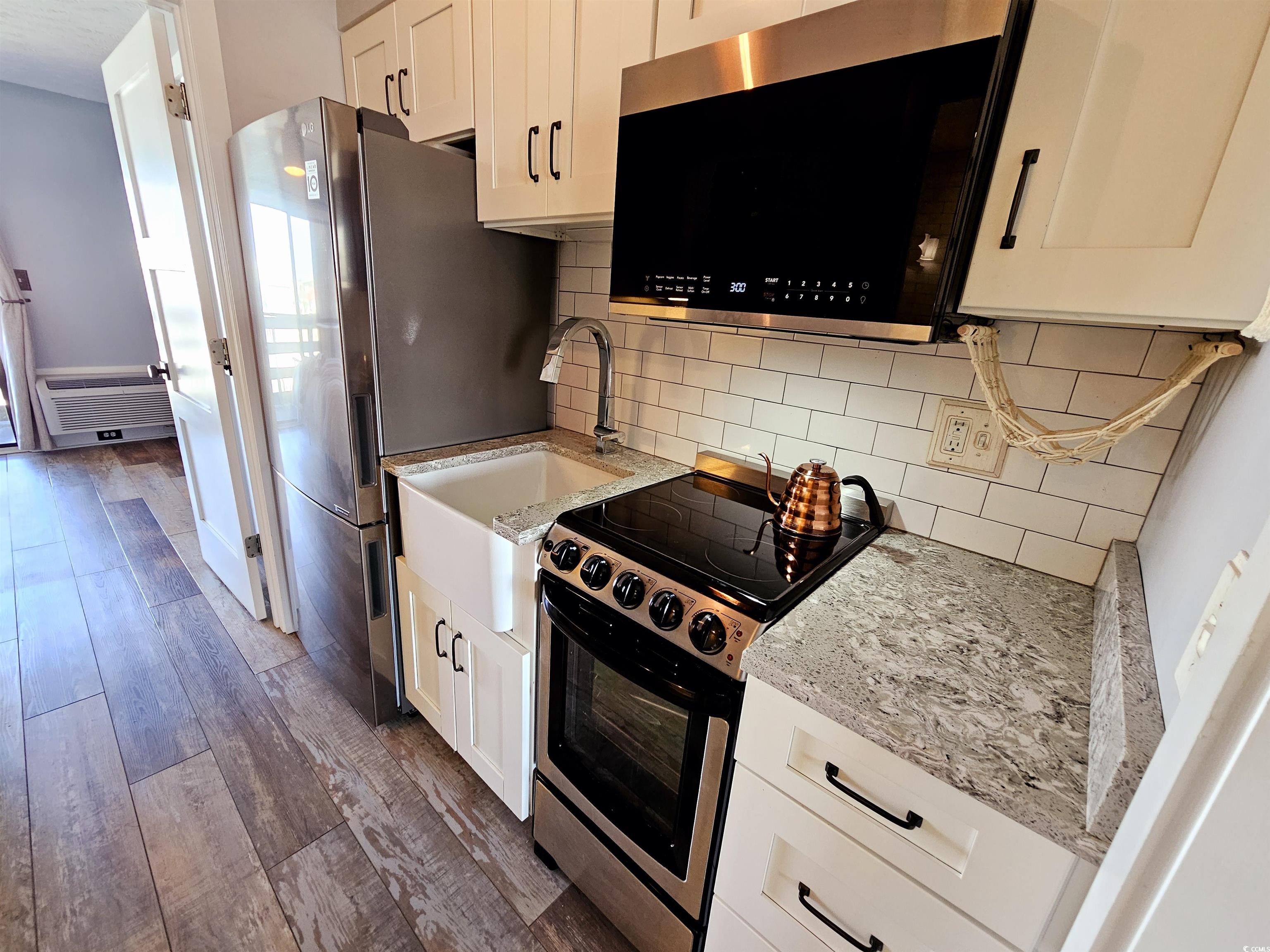 Unit 312 at the Guest House in Garden City has all the check marks for your beach cottage that will not break the bank. Guest House is located one block from the Garden City Pier as well the closest beach access. Sam's Corner, Causeway Bar, and all other restaurants and shops are located within one block of your building. After taking the elevator up to the third floor, you will start to enjoy the views of the pier and the crystal blue Atlantic. Once inside, you will notice this unit has been completely remodeled to the studs. No money was wasted in this tastefully done beach remodel . New floors, walls, cabinets, appliances, countertops, interior doors, showers, and all fixtures. Hot water tank replaced in 2020 along with Trane wall units. Peaceful rear porch off your bedroom with ocean and marsh views. Still looks news and smells new. One of the most affordable oceanside condos when factoring cost and HOA fees.