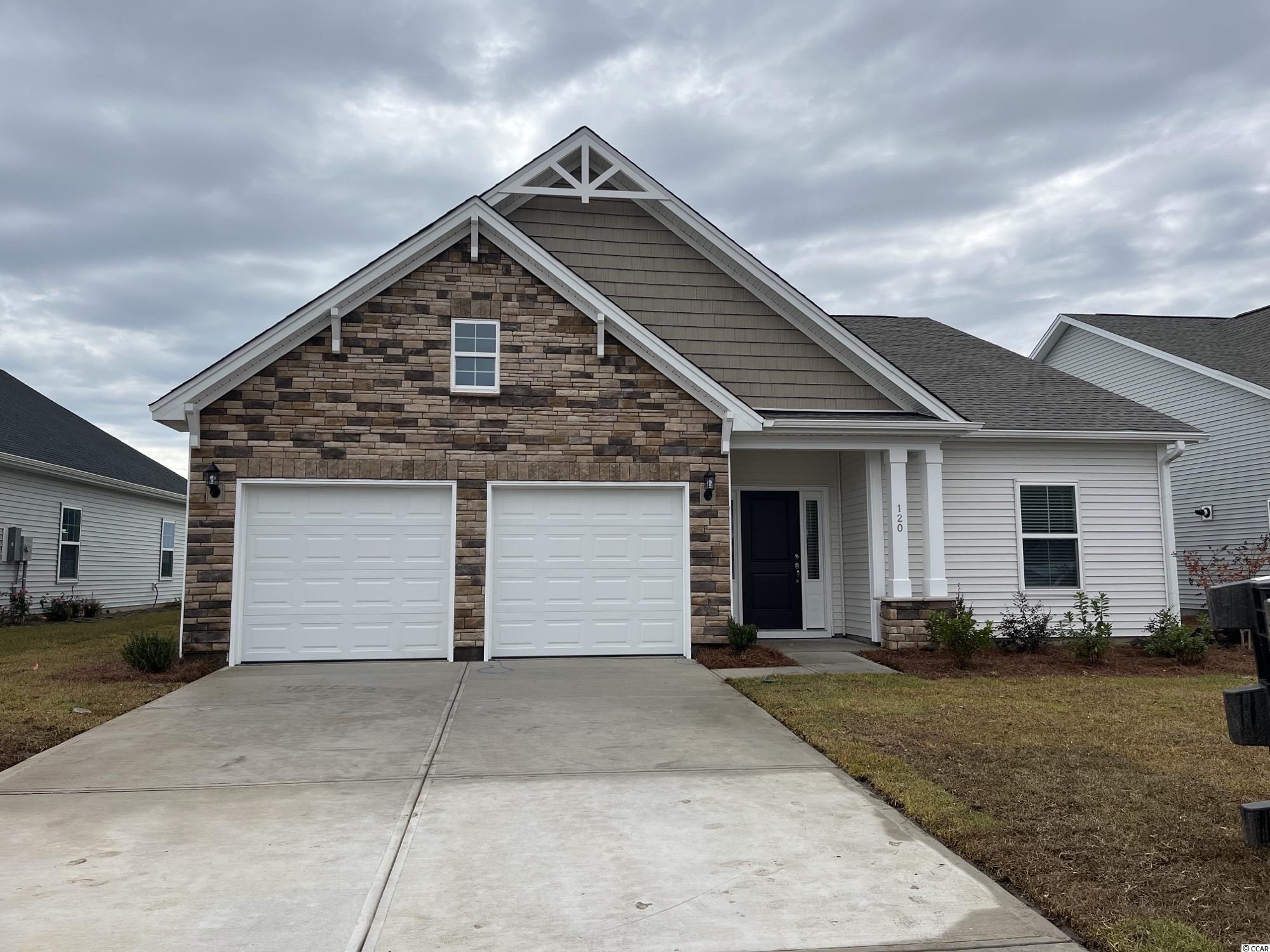 Sitting on a direct pond lot! WELCOME TO EVANS PARK IN MURRELLS INLET! 10 MINUTES TO THE BEACH, MARSHWALK and convenient to all roadways and area attractions! Evans Park is a natural gas community - energy efficient with tankless hot water system, gas heat and gas cooking. This one-story Allerton floorplan comes complete with a two-car garage, two bedrooms plus an office with french doors to hall and two full bathrooms. The primary suite is located in the rear of the home and there is a fabulous backyard sitting pretty on the pond and hearing the mesmerizing fountain day or night! Features include a spacious walk-in closet, large shower stall with tiled walls and floor, open kitchen flow with an amazing extra large island countertop that is open into the great room. There is also a large laundry room and rear covered patio. Luxury Vinyl Plank flooring throughout the home and two gas fireplaces both inside & out! Stone accents too! Don't miss this one - its a BEAUTY! Photos for representation/illustration purposes - this home is currently under construction with a Fall 2022 Delivery.