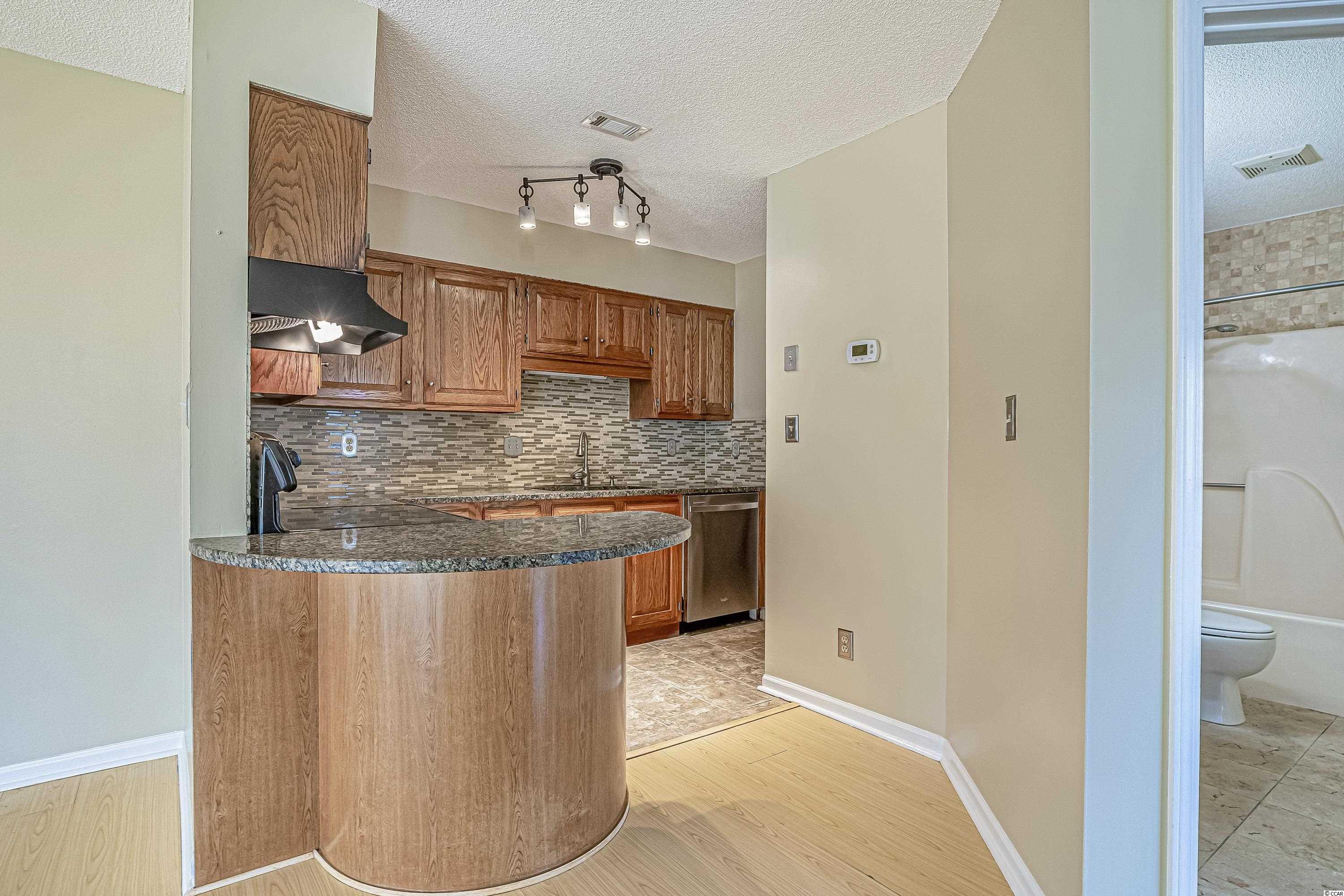 First floor condo with an open floor plan and lots of natural light. Conveniently located close to shopping, restaurants and just a mile from the beach. This move in ready home has a fireplace, stainless steel appliance, granite counter tops, washer and dryer, and patio. There is also a community pool. Perfect for either full time or second home living. Don't miss out on this great opportunity to get your own place at the beach!