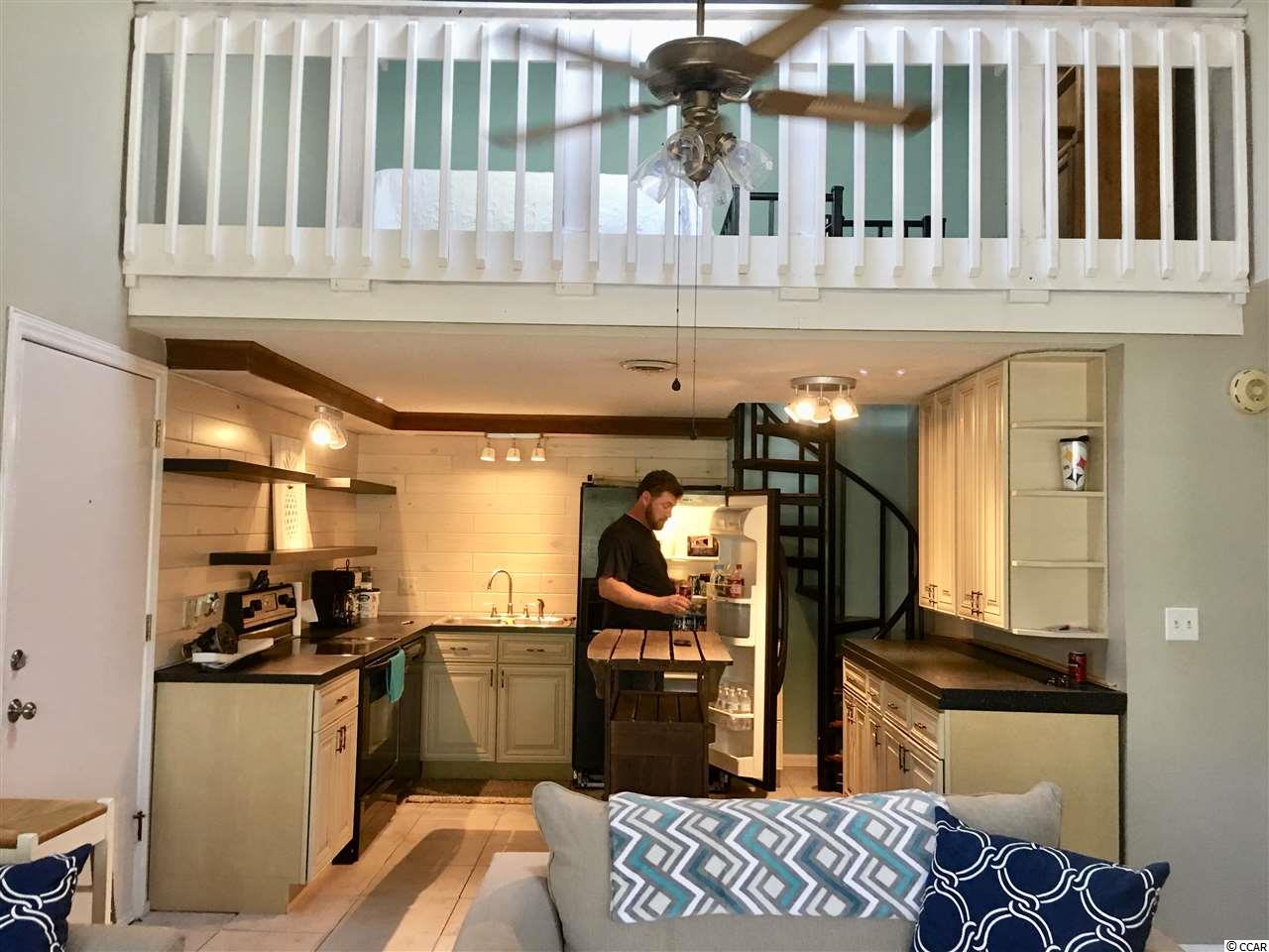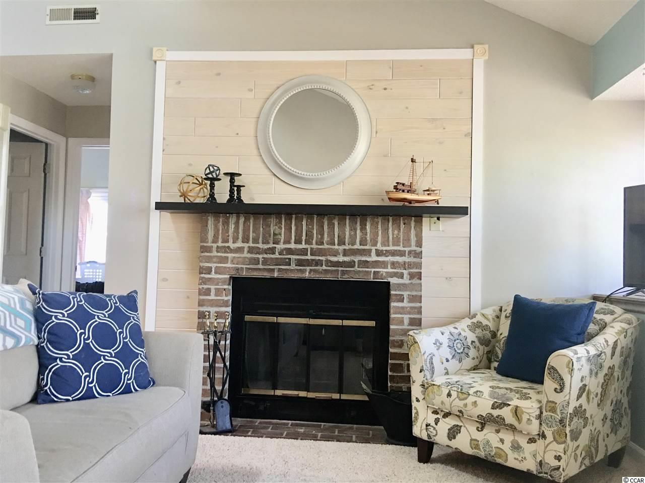 Exquisitely upgraded charming two bedroom condo in Quiet Sterling Village. Loft with closet is the second bedroom, would make a great office as well. Morning sunshine lights up this 2nd floor unit with vaulted ceiling, Upgraded fireplace with wood surround matching kitchen and bath, huge storage closet off the Master Bedroom. Second owner has replaced kitchen with beautiful upgraded cabinets and shelving- updated the bathroom vanity mirror and light fixture and has replaced flooring in the den. Secure entrance to building is a plus. Assigned parking spot prevents having to worry about parking space. Community has a pool. 0.6 miles from the beach and near Airport & Market Commons, this condo is perfectly situated close to shopping, attractions, restaurants but far enough away from the hustle and bustle of the tourists. AC and water heater replaced in 2016 Unit sold As is No Pets allowed in this subdivision