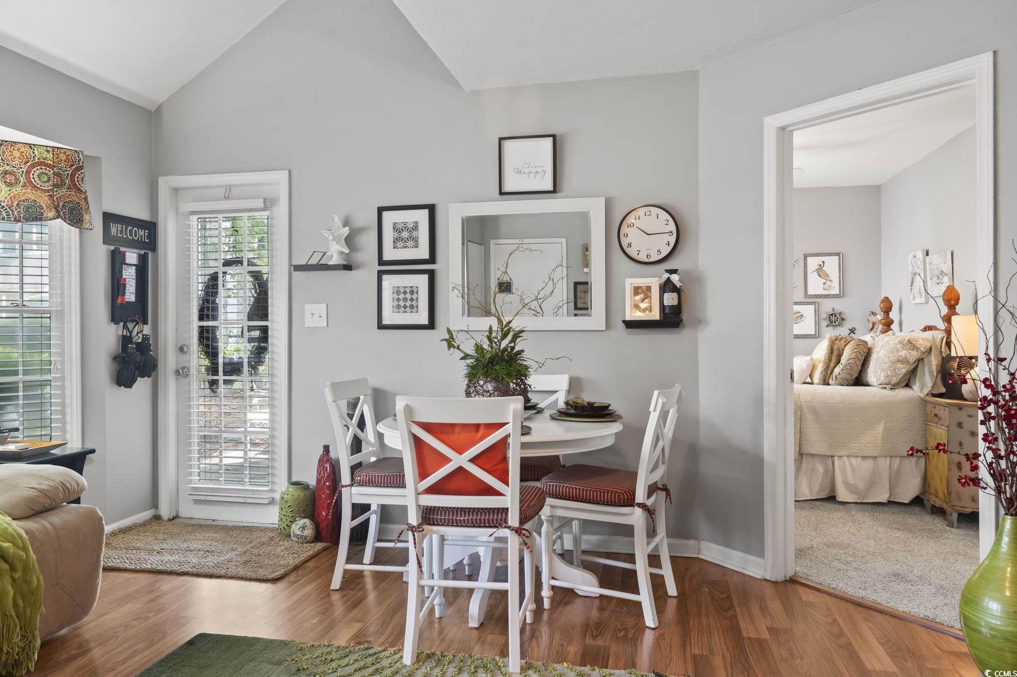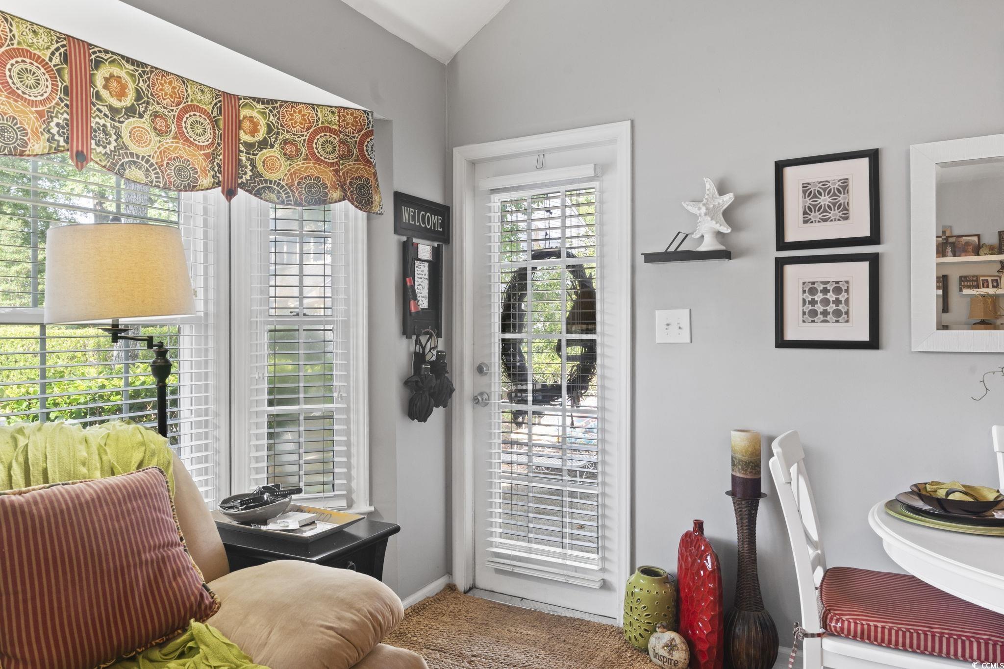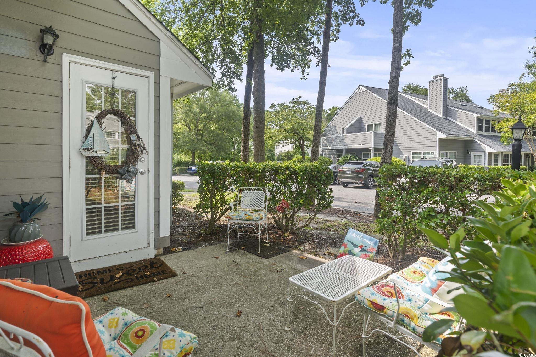Fabulous one of a kind furnished 2 bedroom 1 and 1/2 bath condo within walking distance to the beach! This condo features low HOA fees, high end stainless steel appliances, custom granite countertops, beautiful ornate glass tile backsplash, new kitchen cabinets, custom drapes throughout and much more. This unit has an interior designer feel and has to be seen to appreciate all the high end tasteful furnishings and materials that have been used to create this dream condo. The primary bathroom has a new cabinet, a new mirror and lighting. There are tile floors in both bathrooms and laminate flooring in the main living area. The outdoor space is serene and relaxing with amazing mature trees to help you stay cool during the warm South Carolina Summers. There is a sunny community pool for those lazy days when you just want to stay close to home and relax. This condo has been lovingly cared for and only used as a second home and not rented for the 11 years this owner has owned the unit. Call to see this rare luxurious condo today! Some items do not convey. Ask me how you can finance up to 100% on this condo with no mortgage insurance required.