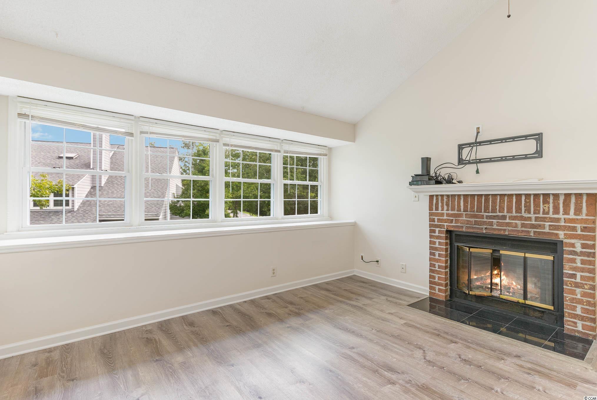 Dont miss this end unit condo just a golf cart ride away from the beach! This condo features an open floor plan, double windows for plenty of sunshine in the rooms. Enjoy your morning coffee in the balcony or relax in the evenings by the fireplace or take a walk downtown Myrtle Beach. Featuring high vaulted ceilings in living and bedroom which give you even more room. Additional space on second floor for your study, work or additional bedroom. In addition, Sterling Village is a well taken care of and peaceful neighborhood with beautiful lawn care and an outdoor pool for relaxing on the hot summer days. Located in the heart of Myrtle Beach, enjoy everything our city has to offer, from world class dining and entertainment and miles of beaches! This unit will meet all of your needs and it will not last.