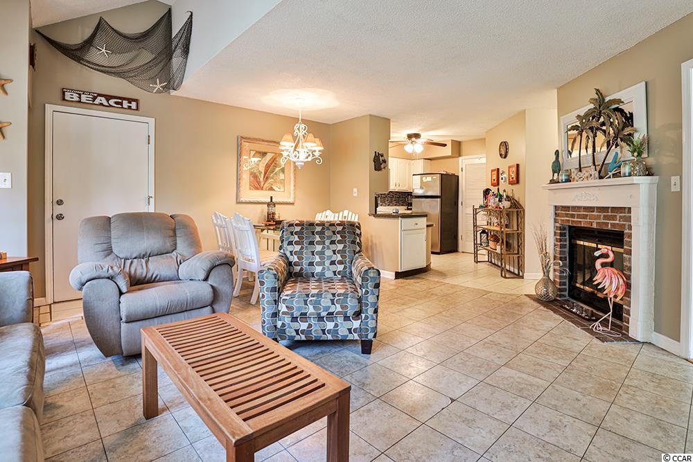 First floor living in this fully furnished 2BR 1.5BA condo with beam ceilings and a wood burning fireplace located just steps to the ocean down the sidewalk in the heart of the south end of Myrtle Beach. Do not miss this opportunity to own such an affordable beach retreat or primary residence as first floor units rarely come available. All appliances including washer and dryer convey, please note only the refrigerator is stainless steel. New HVAC and new windows, recently replaced water heater and garbage disposal. Sterling Village I HOA recently replaced the roof and the exterior siding was replaced with hardiplank. HOA fees include basic cable, trash removal, pest control including termite bond, building insurance, pool and gazebo (no clubhouse or workout facilities). Please note Sterling Village I DOES NOT ALLOW PETS for owners or tenants and only long term rentals are allowed, absolutely NO SHORT TERM RENTALS. Along with being just steps to the ocean, this condo is also located within minutes to the Myrtle Beach International Airport, Coastal Grand Mall, Market Common, Myrtle Beach State Park, Broadway at the Beach, many restaurants, entertainment and amusement venues. Call your agent today or you just might miss this little gem!