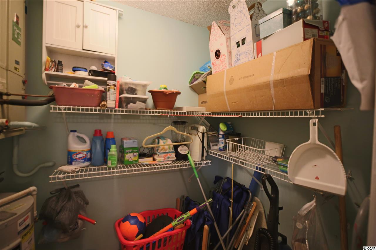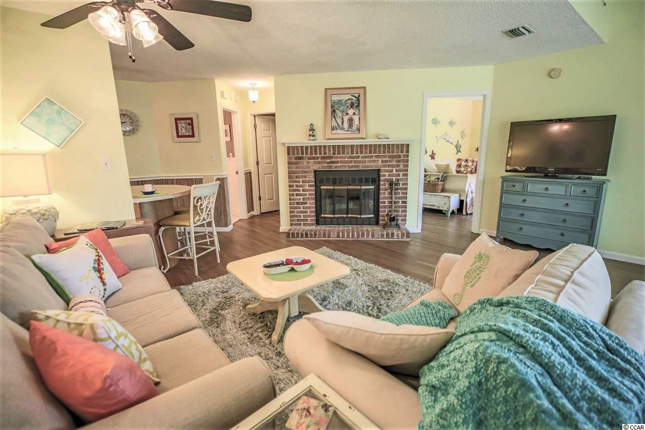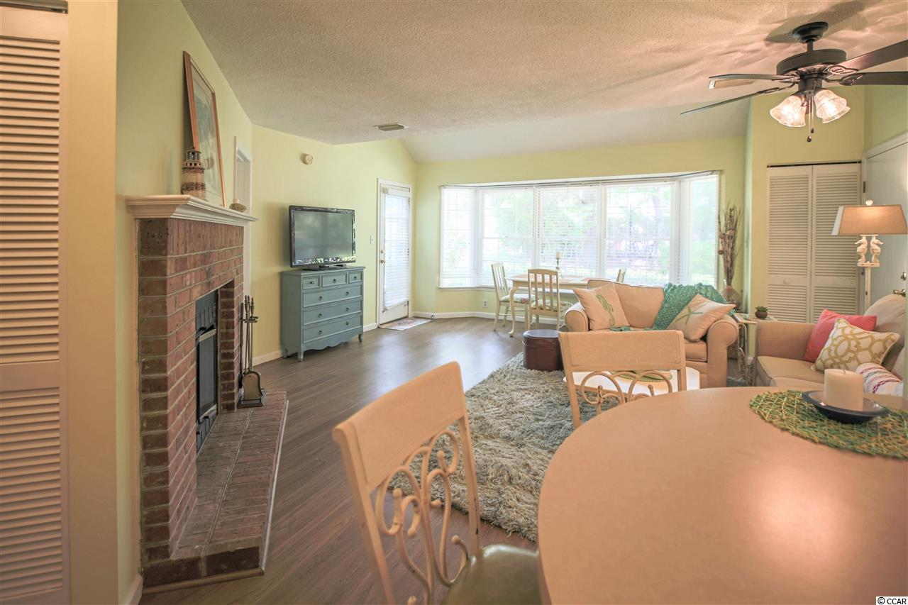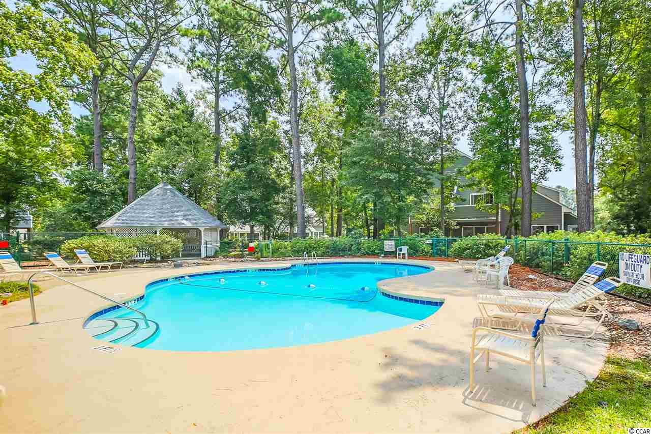 Bike or walk to the beach from this fully furnished quaint and secluded nature lover's paradise ! This home is turn key with nicely appointed furnishings, walk in laundry and storage, fireplace and a private patio with yard space to play corn hole or pass football. A fully equipped kitchen, luxury vinyl plank flooring and a wall of windows that keep it bright and airy. What a perfect getaway after a day at the beach to come home and relax by the pool or patio or maybe curl up on those chilly days by the warmth of the fire. Great location to airport, mall and Market Common. You won't want to miss out on this one!!