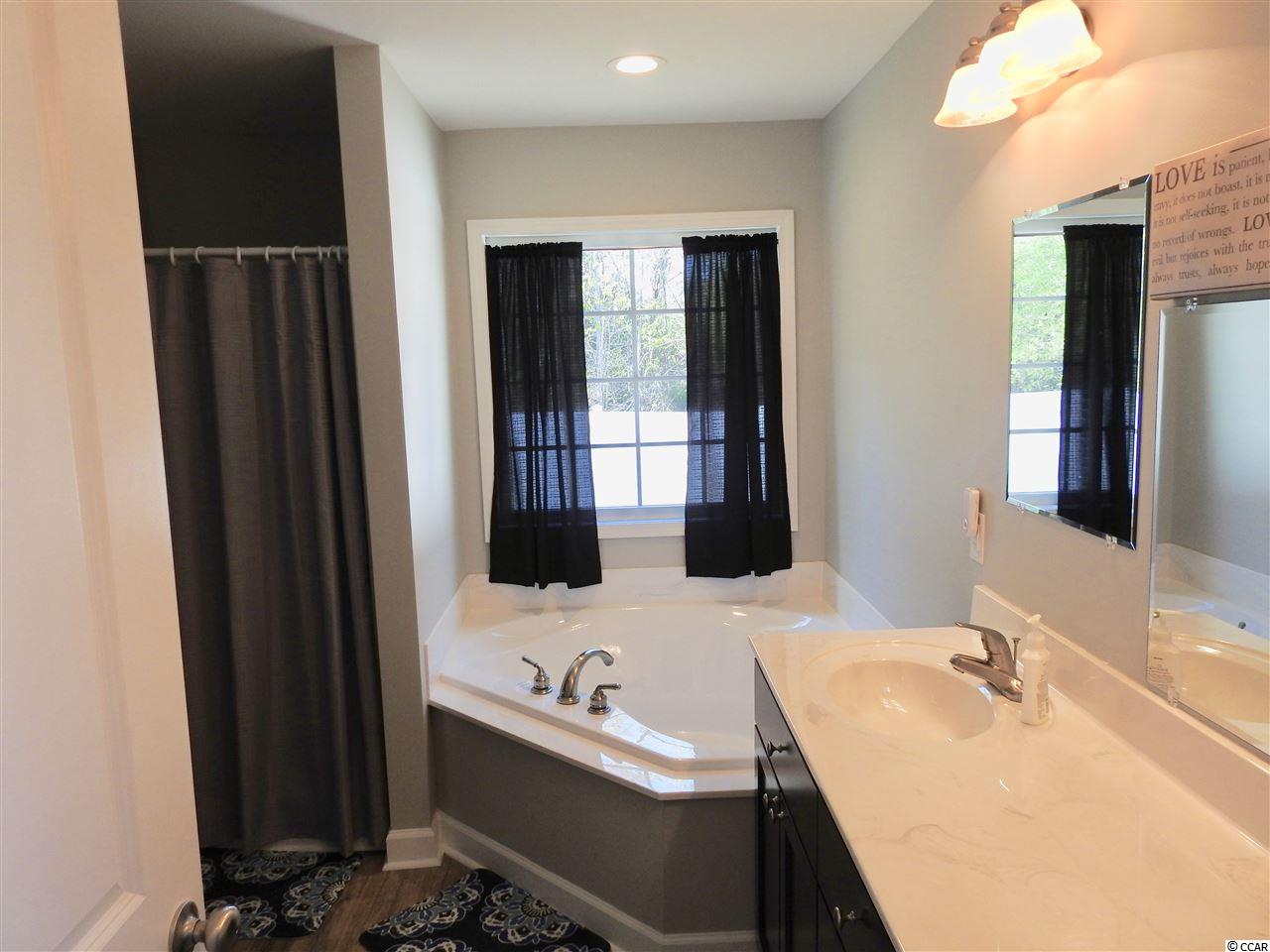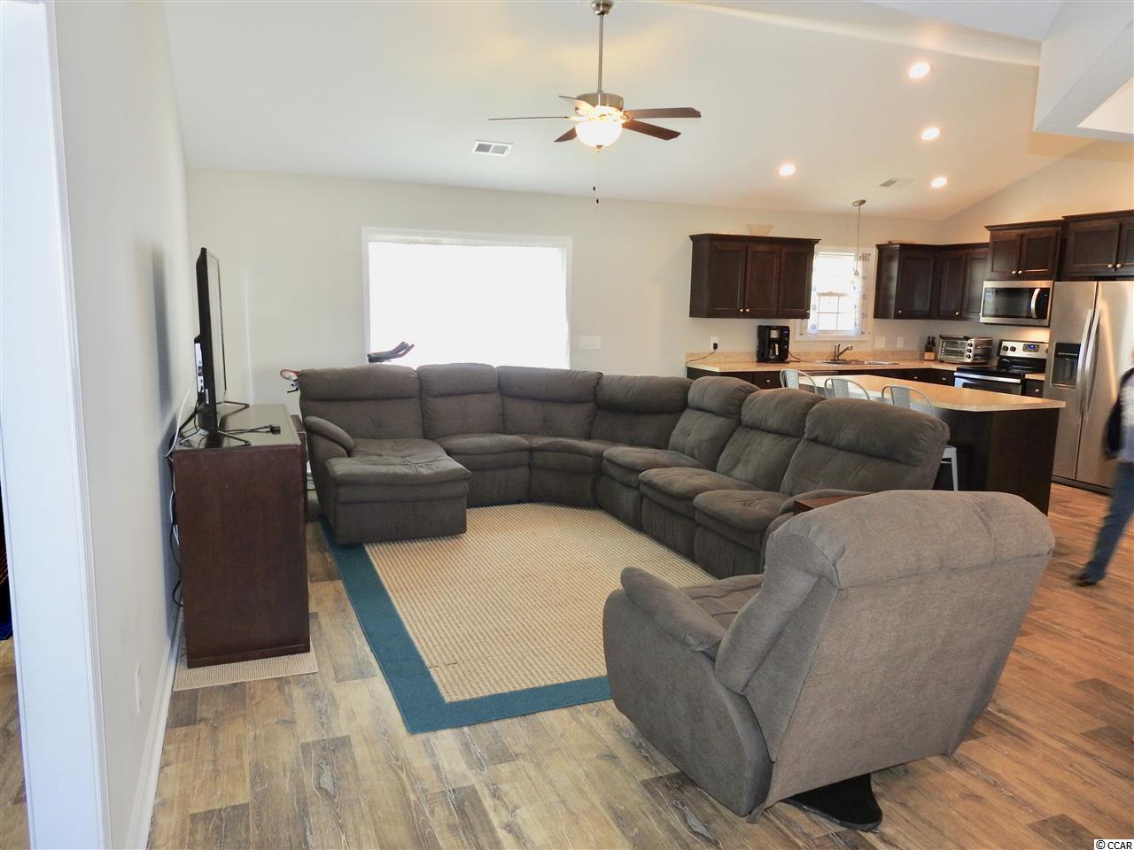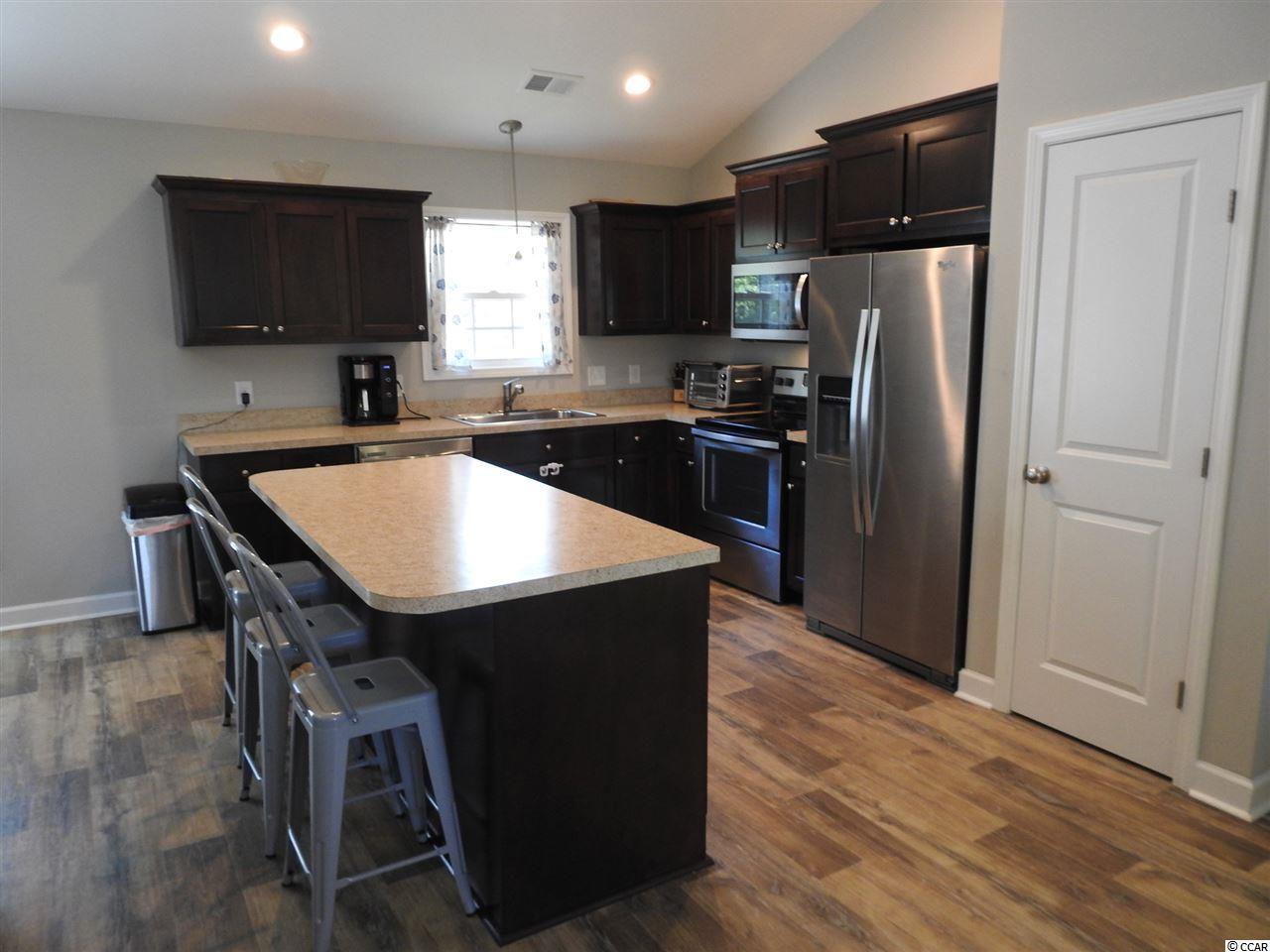 Your next home could be in Pecan Grove, a charming neighborhood located just inside the city limits of Conway, SC. This 2017 ranch style home is well cared for, has an open floor plan with hues of gray and beautiful hard surfaced flooring throughout the home. The vaulted ceilings in the open concept family room creates a spacious feel. The kitchen boasts stainless steel appliances, and a work island large enough for a double duty breakfast bar. The livings so welcoming with natural sunlight streaming through the sliding glass door directly connecting to the back patio and overlooking the spacious fenced in back yard. The Master Bedroom is located separately from bedrooms two and three provides privacy and elegance with a beautifully lit tray ceiling. On to the Master bathroom which was designed for a luxurious experience, this extra large Master bath is L-shaped with a garden tub, double sinks, a stand up shower, separate toilet and a walk in closet. It is an unexpected surprise and I'm so glad the designer aimed to please! Last but not least, he will be pleased with the double garage, it's accessed directly from the laundry room for the convenience of performing like a mud room. Don't miss this well thought out designed home, the price is right!