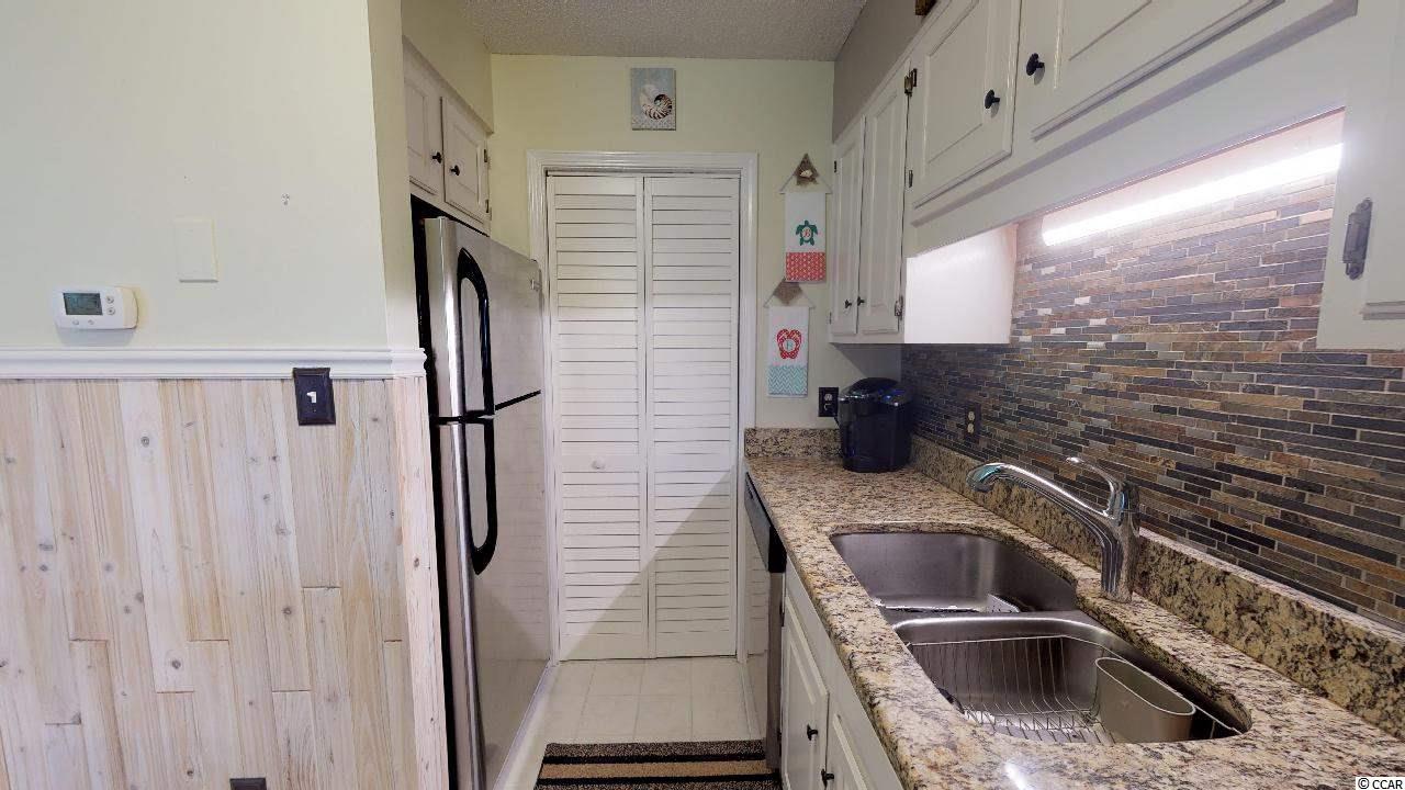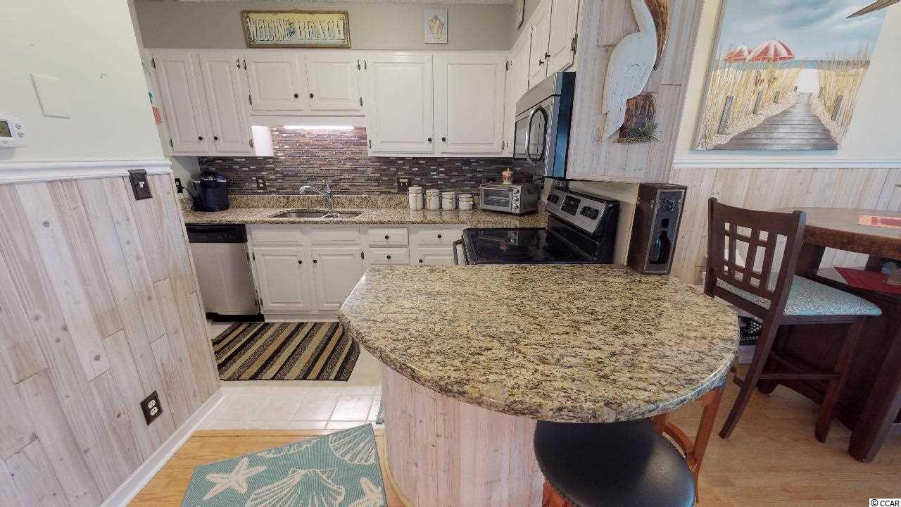 Introducing this charming 1st floor 2 bedroom 1.5 bath condo situated in the peaceful Sterling Village III complex. This sparkling condo comes with stylish furnishings, laminated wood, carpet & tile flooring, an abundance of natural lighting, vaulted ceiling with decorative beams, cozy wood burning fireplace, elegant chair railing, large bump out in living room, classic living/dining room combo, breakfast bar, granite counter tops, tile back splash, stainless steel appliances, smooth flat top range, built-in microwave, and generous cabinetry & counter space. The master bedroom features large closet and a practical private half bath. This piece of paradise is completed with an additional bedroom, full bath, and extra closet space. This condo provides you close proximity to all the attractions and amenities of Myrtle Beach, with fine dining, wonderful world-class entertainment, fishing piers, and exciting shopping experiences on the Grand Strand. Just a short drive to medical centers, doctors offices, pharmacies, banks, post offices, and grocery stores. Check out our state of the art 4-D Virtual Tour.