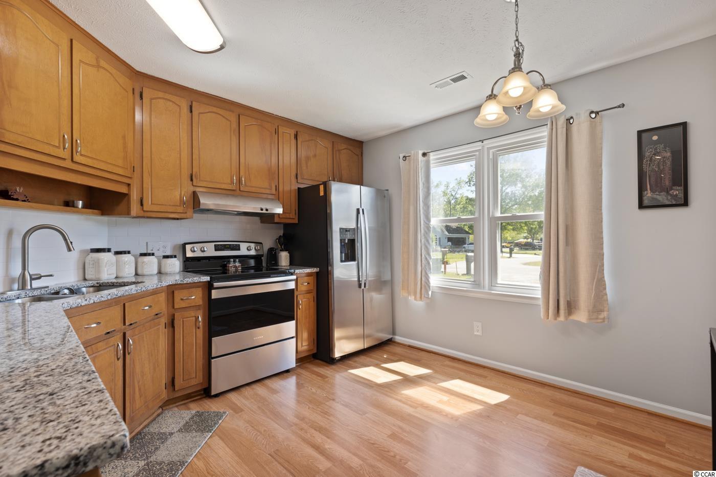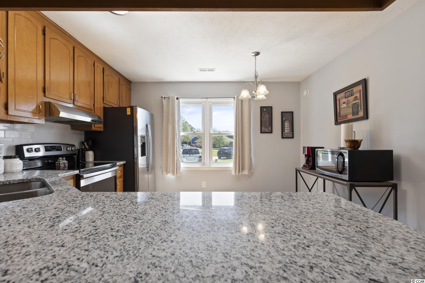 Welcome to your new home in the quiet Whispering Pines community, right across the road from the coveted Arrowhead Golf Course. Take advantage of this rare opportunity to own in a community in Myrtle Beach that has no HOA. This 3 bedroom 2 bath home is in excellent condition and boasted a lovely fireplace in the living room with vaulted ceilings. The kitchen has a brand new counter top and new appliances that have never been used. Also, you can enjoy the sunny weather of Myrtle Beach either from the Carolina room or the brand new rear porch/deck. Back yard is fenced in and the landscaping is well maintained. This beautiful home is move in ready, come check it out.