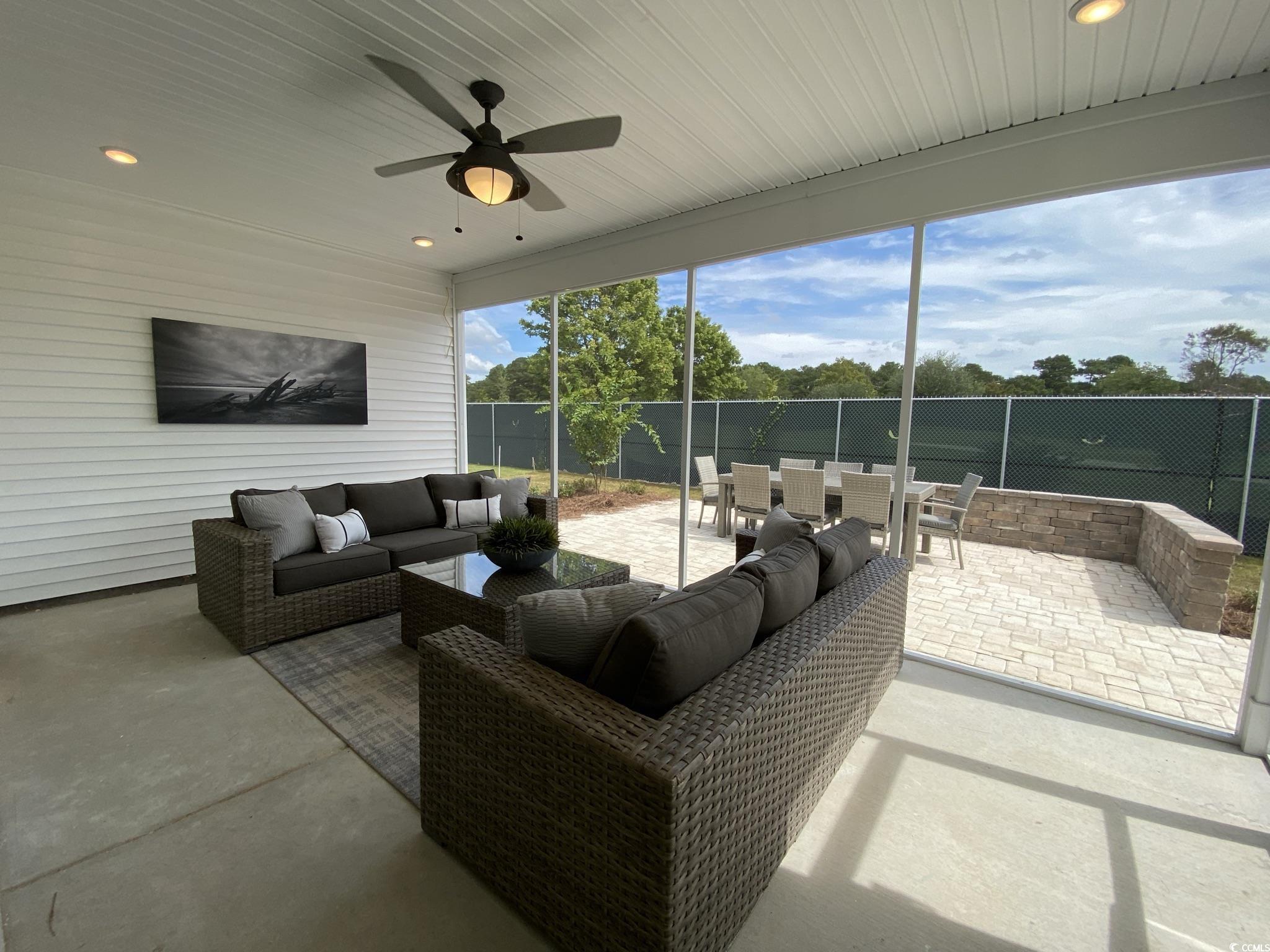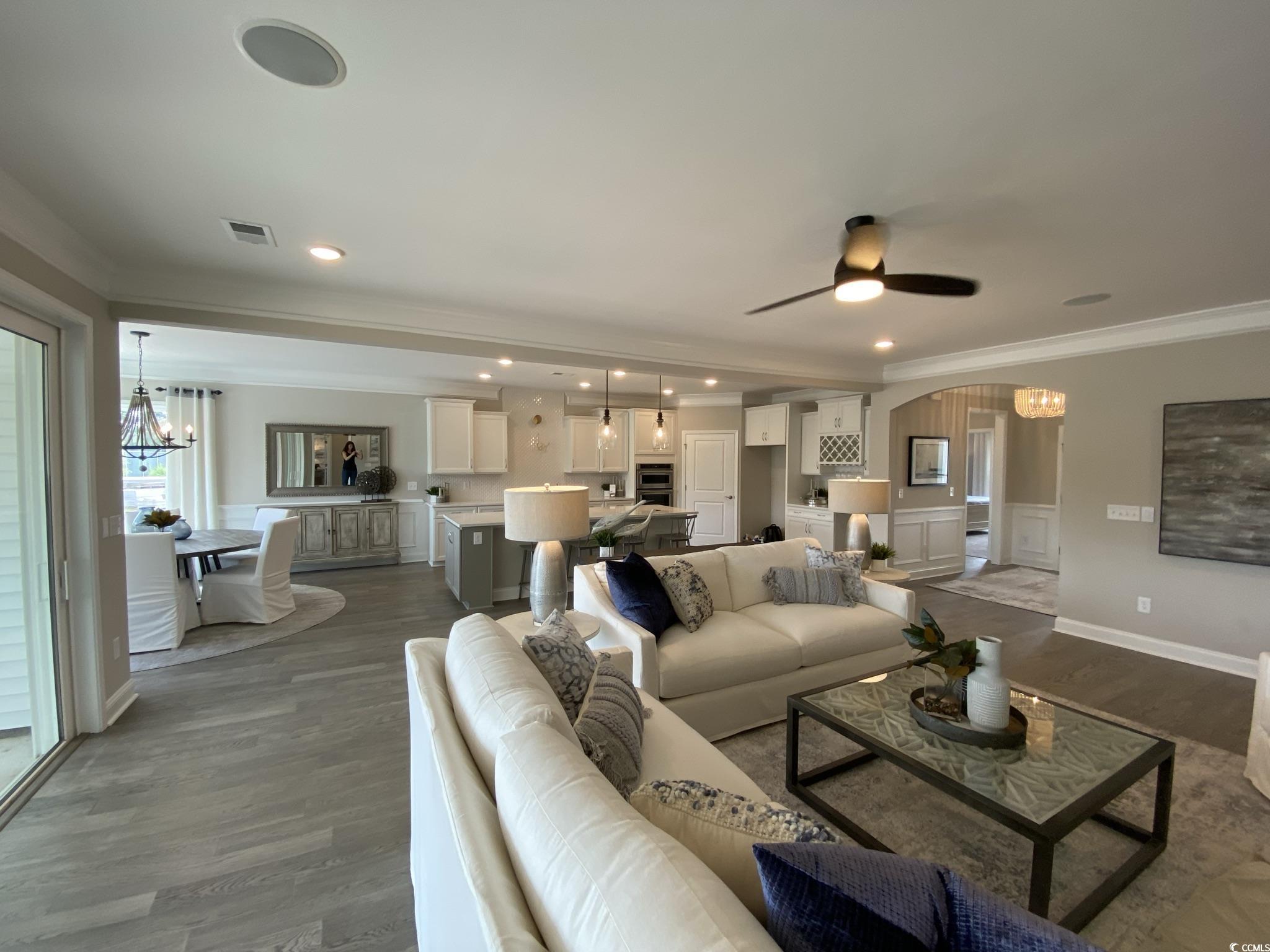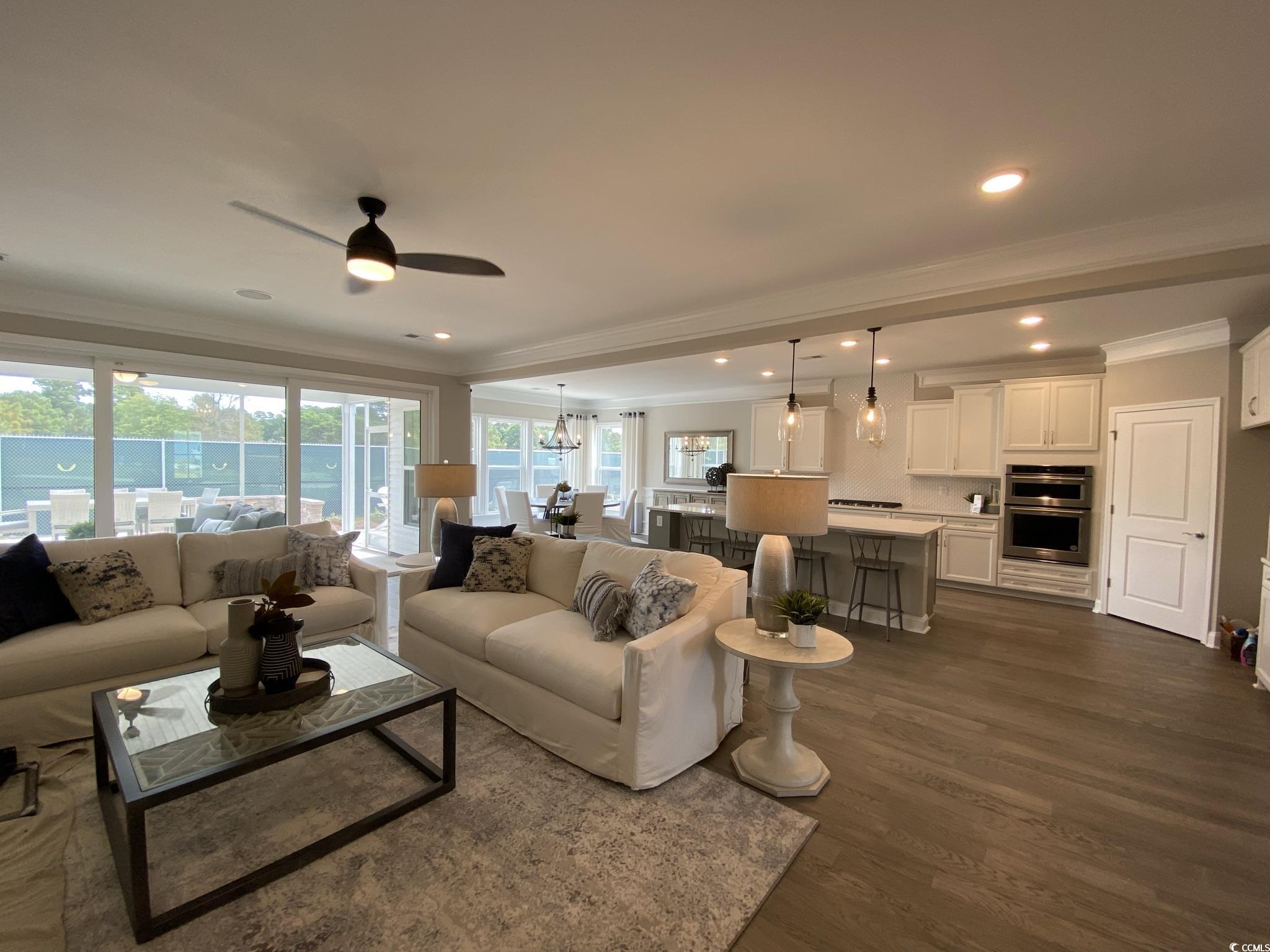 MODEL HOME FOR SALEthe last chance to own our most popular floorplan, no longer offered in future communities! This stunning Dunwoody Way model home, built in 2021, is loaded with designer upgrades, 2 car plus golf cart size garage and sits on a beautiful homesite backing up to Crow Creek Golf Course. Enjoy 3 bedrooms, 3 baths (located in opposite corners of the home for privacy), open floor plan featuring spacious living, dining and kitchen areas with beautiful trim upgrades throughout- The living area overlooks a fireplace and beverage center perfect for entertaining! The huge gourmet kitchen features upgraded stainless appliances , quartz counter tops, massive island with farm-house-style sink . Inside, enjoy open-concept living with a rare 3-panel slider that opens from both ends, creating a seamless flow to the spacious paver patio with built-in fire pitperfect for entertaining. The home also features a dual primary suite with a luxurious en-suite bath, ideal for comfort and privacy. Solid stairs in the garage leads to walk up attic storage. With gas appliances powered by a buried propane tank and thoughtful finishes throughout, this home truly stands out. Complete with a full yard irrigation system, full sod and landscaping! Municipal water/sewer, X flood zone.The community has great amenities, including a 2200 sq ft +/- salt water pool, 2 pickleball courts, a wood burning fire pit by the water, and a pavilion with restrooms for your use. Pulte is an esteemed builder who stands behind their homes with an industry leading 10 yr in-house warranty included at no extra cost. With so many amazing features and perks of owning a Pulte home, make this one yours! Eagle Run is located within 30 minutes of 60 golf courses, 10 minutes from multiple beautiful beaches and 5-10 minutes from all your shopping needs..