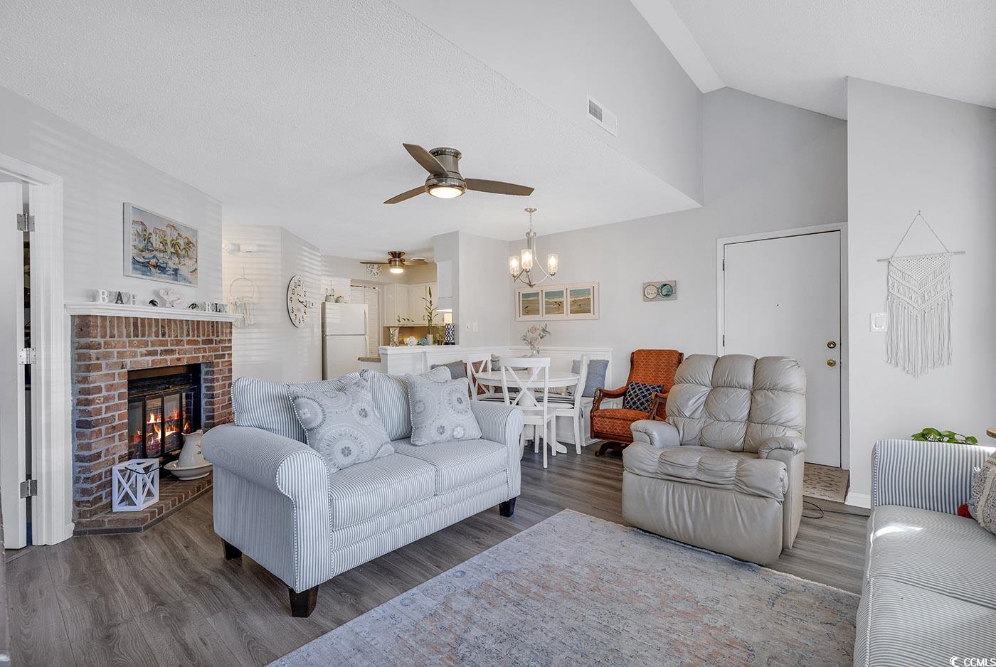Beautiful, furnished 2 bedroom, 1.5 bath condo nestled 0.5 miles from the ocean! This home features an open concept living room with a fireplace and vaulted ceilings. The kitchen has lots of cabinets for storage, large pantry, and has a breakfast/dining area. Two bedrooms, master bathroom, and 1/2 bath complete this first floor condo. There is a patio for grilling or relaxing with a cocktail. Sterling Village offers a community pool and is located a few blocks from the beach and minutes away from everything Myrtle Beach has to offer including Broadway at the Beach, Coastal Grand Mall, Market Common, Tanger Outlets, attractions and restaurants, Highway 17 and 501 and Myrtle Beach International Airport.