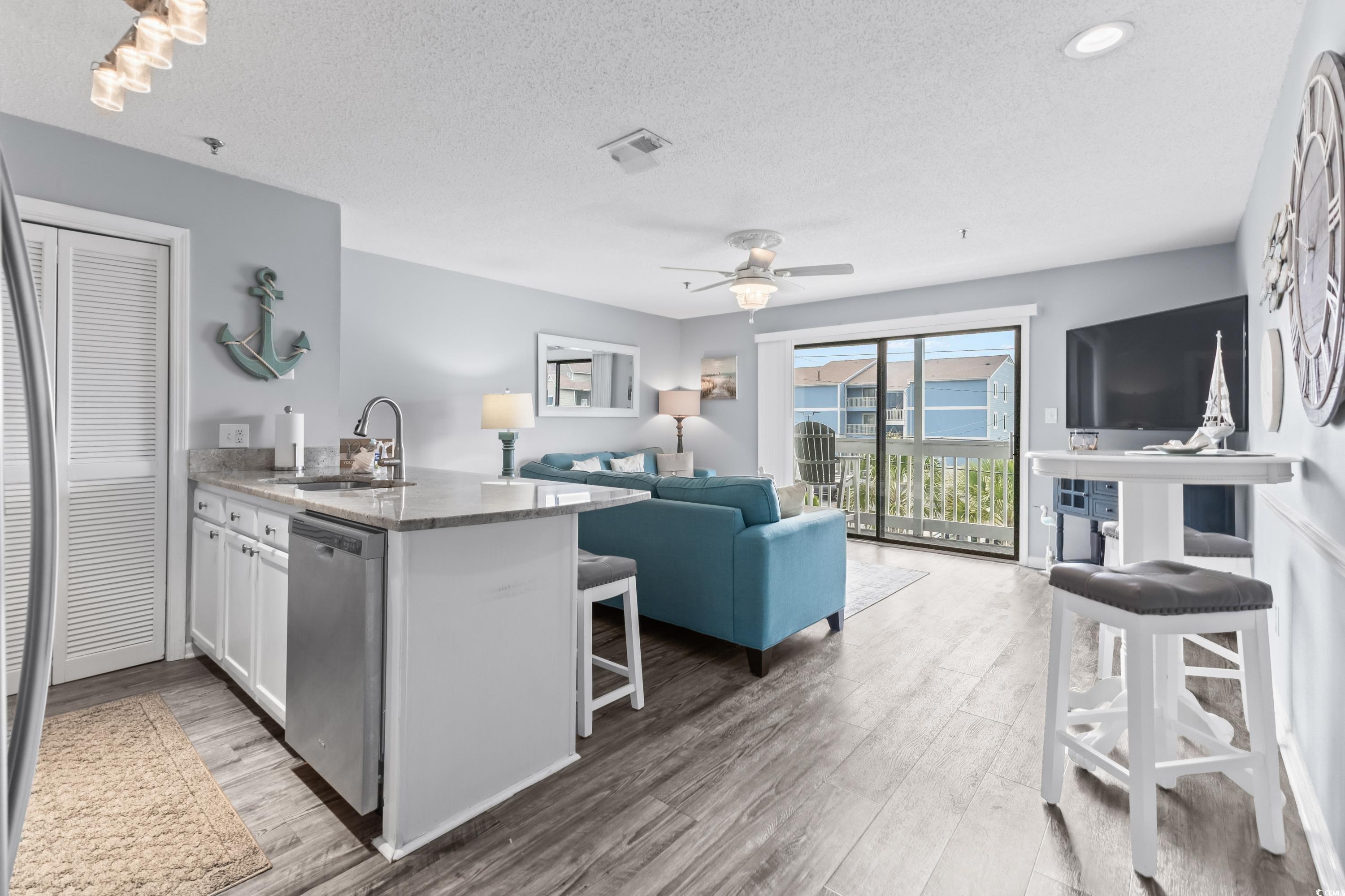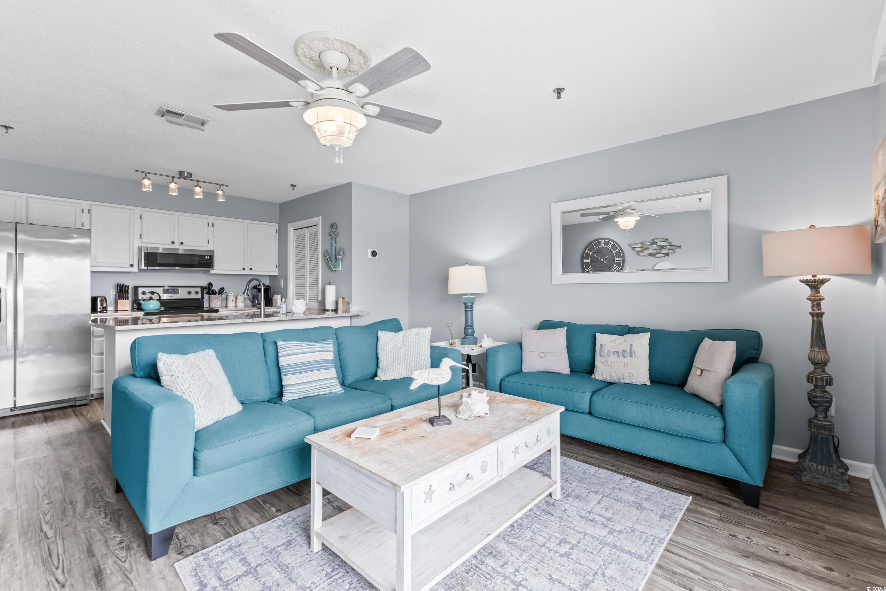 Come see this Coastal Condo Gem in Surfside Beach, SC. Embrace the laid-back beach lifestyle in this cozy, well-kept condo building, offering a rare opportunity with only 15 exclusive units. This charming two-bedroom condo, fully renovated with luxurious touches and a beachy vibe, is the perfect seaside retreat. Modern granite countertops, luxury vinyl plank flooring, and stainless steel appliances are enhanced by delightful beach decor. Move right in or start renting immediately this condo comes fully furnished. Located just across the street from the ocean in Surfside Beach, with easy access to public beach entrances, youll find convenience at your doorstep. Enjoy a refreshing dip in the communitys outdoor pool, a perfect oasis for relaxation. Recent upgrades include a new roof for the entire building in 2018, a new Rheem HVAC Condenser Unit and matching Air Handler installed in 2019, new stackable washer and dryer, along with other appliances, in 2019, and a new hot water heater installed in 2022. Your private balcony offers a perfect spot to enjoy morning coffee or an evening cocktail while soaking in ocean views. The monthly HOA dues cover nearly everything, ensuring hassle-free living. Surrounded by fantastic restaurants, shopping, and entertainment options, this tastefully decorated condo is clean, updated, and ready for your beachside escape. Dont miss out on this unique opportunity schedule your showing today, as these condos rarely hit the market!