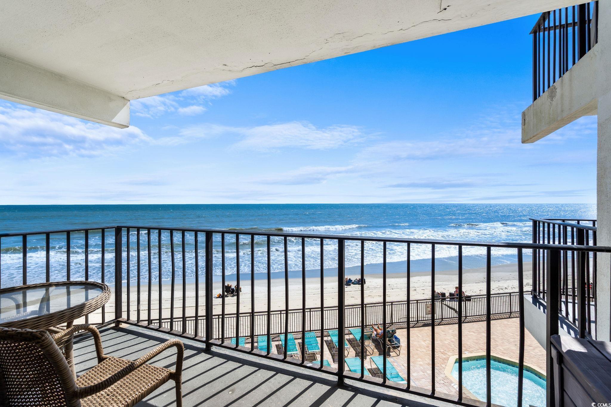 Incredible opportunity to purchase this fully furnished 1 bedroom 2 bath direct oceanfront unit in the highly sought after Royal Garden Resort at Garden City Beach! Unit 203 offers very rare and easy direct access to the condo as you can drive right up to the top deck of the parking garage and walk straight to your front door. No need for the stairs or an elevator during the busy summer months! The condo includes well appointed furnishings throughout and the kitchen comes fully equipped with stainless steel appliances, breakfast bar/work island, and plenty of cabinet space. Adjacent to the kitchen is the dining area and living area leading out to your private oceanfront balcony. Enjoy your morning coffee while watching sunrise or your favorite evening cocktail taking in those amazing views of the Atlantic Ocean! The primary suite includes plenty of closet space and a private full bath. Additionally, there is a second full bath for guests. Stackable Washer/dryer inside the unit for added convenience. Royal Garden Resort amenities include 3 elevators, indoor & outdoor pools, kiddie pool, hot tub, sauna, game room, fitness room, Salty Pickle Bar & Grill, and on-site covered parking deck. Owners are allowed pets & golf carts are allowed as well. Perfectly situated close to all of the area's finest dining, shopping, golf, entertainment attractions, Garden City Beach Pier, Surfside Beach Pier, and the famous Murrells Inlet Marsh Walk! Whether you are looking for an investment opportunity or a vacation home at the beach, you won't want to miss this. Call the listing agent today for a showing!
