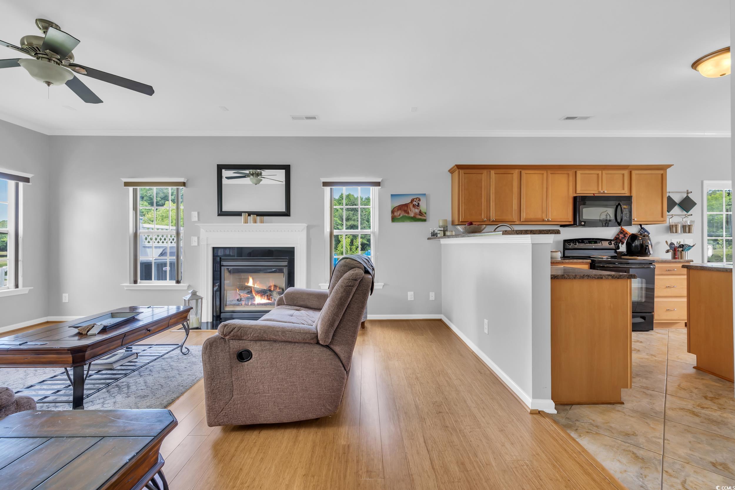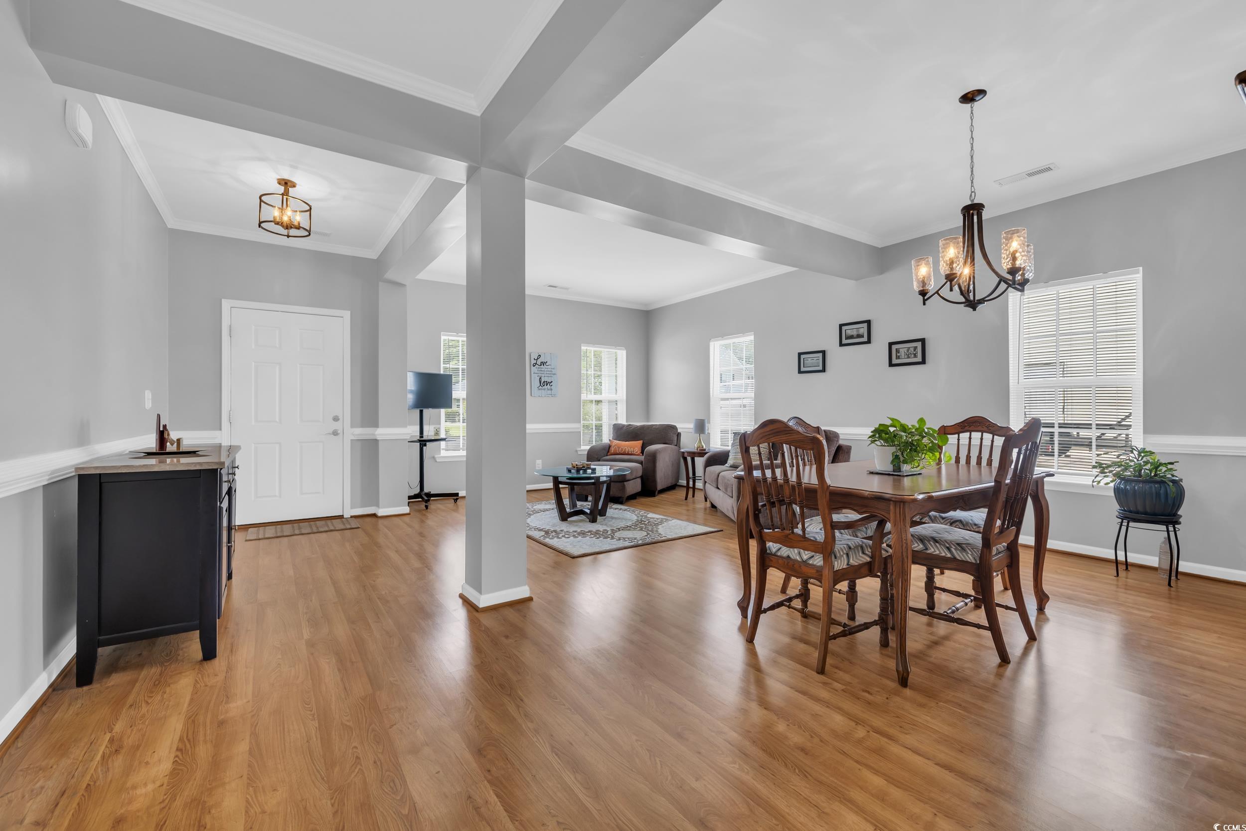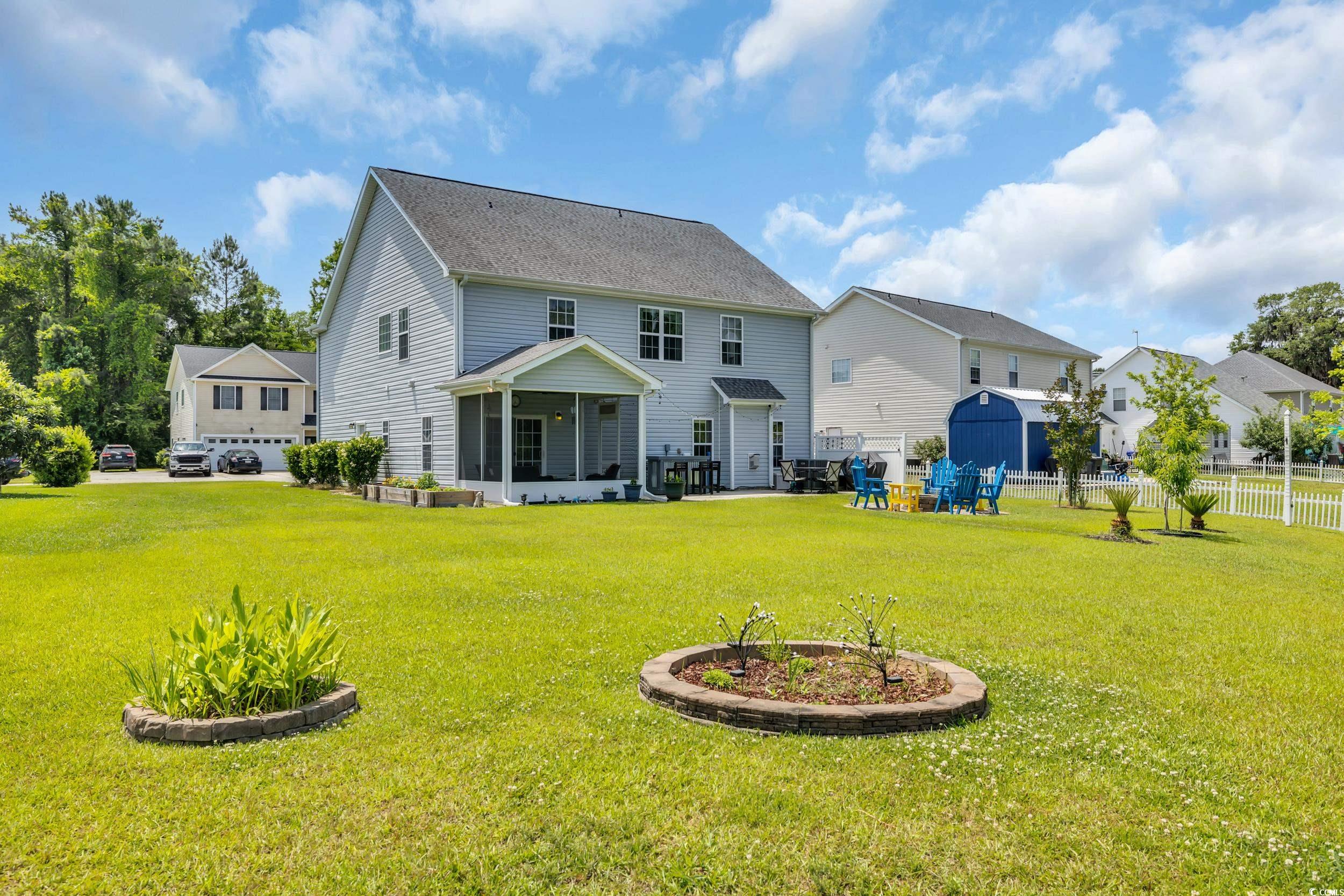 This lovely 4-bedroom, 2.5-bath, home is located in the quiet community of Pecan Grove. Only minutes away from downtown Conway! A spacious yard located on a beautiful lake! This is the perfect place to enjoy outdoor living with the screened-in back patio and fire pit. The large master suite features French doors, sitting area, tray ceiling, walk-in closet, garden tub, shower, double sink vanity, and linen closet. The bonus area can be a recreation or office space. The living room and dining combination is great for entertaining. The cozy family room has a gas log fireplace for those cold winter days. Roof replaced 2022 and HVAC 2020. All measurements and square footage are approximate and not guaranteed. The buyer is responsible for verification.
