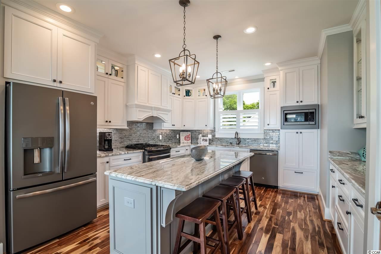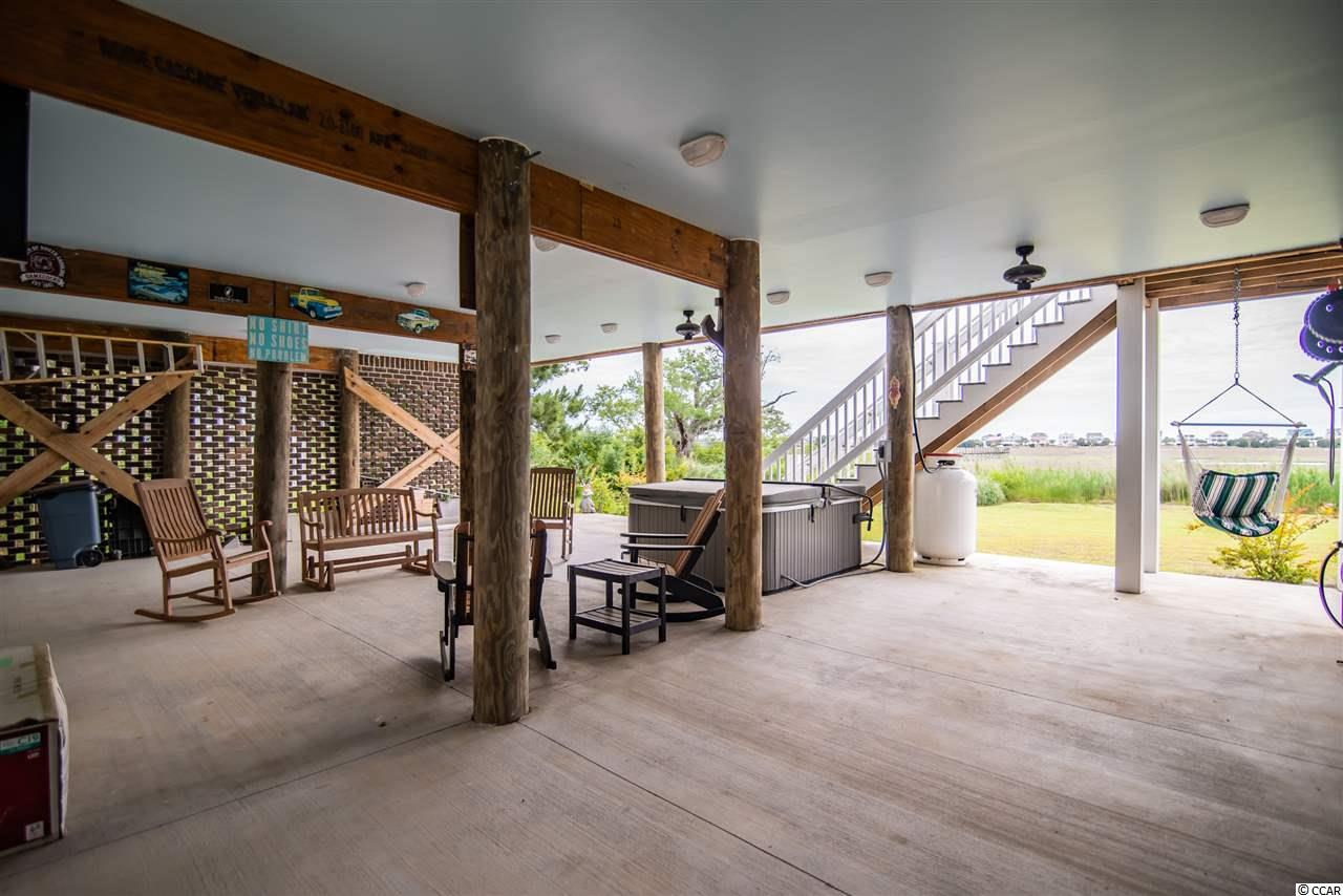 Welcome to 122 Windy Lane. Located in the sought after Litchfield Breezes subdivision. The home is East of Hwy 17 and on the marsh with ocean views. 1.4 miles to the beach. This beautiful Craftsman style raised beach home with views of Midway Inlet and Clubhouse Creek is move-in ready! The home features 4 Bedrooms and 3 Baths. Three bedrooms have a beautiful marsh and ocean view. Numerous custom upgrades and features are showcased in this custom built home. A mahogany front door welcomes you to enjoy the Acacia hardwood flooring and ship-lap accent walls. The kitchen is a chefs dream with GE Profile appliances, granite counter tops, and a kitchen island bar with seating for everyone. Relax in front of the stone fireplace with gas logs while listening to a Bose surround sound system. Need more relaxation? Soak in the hot tub then take the elevator to the Master suite. From the master suite, open the sliding glass doors and sit on the balcony and enjoy the views. If more relaxation is your style, enjoy the custom shower with double body jets, two shower heads, and a tile bench. The junior master suite with marsh and ocean views would make a great teenager or in-law oasis. Not to be outdone by the inside of the house, the exterior boasts many features and upgrades including Hardie Plank Color plus siding and the home is built on deep driven pilings. You'll not have to paint ! You will find an outdoor storage room housing the central vacuum system and the outdoor shower will refresh you after a long day of ocean activities. The large balconies and outside stairs are made from composite decking which means no staining in your future. Composite lighting can be found under the home and on the two back balconies. Copper lighting fixtures accent the front of home. All lighting inside and out are LED powered. Call me today about this beautiful custom home !