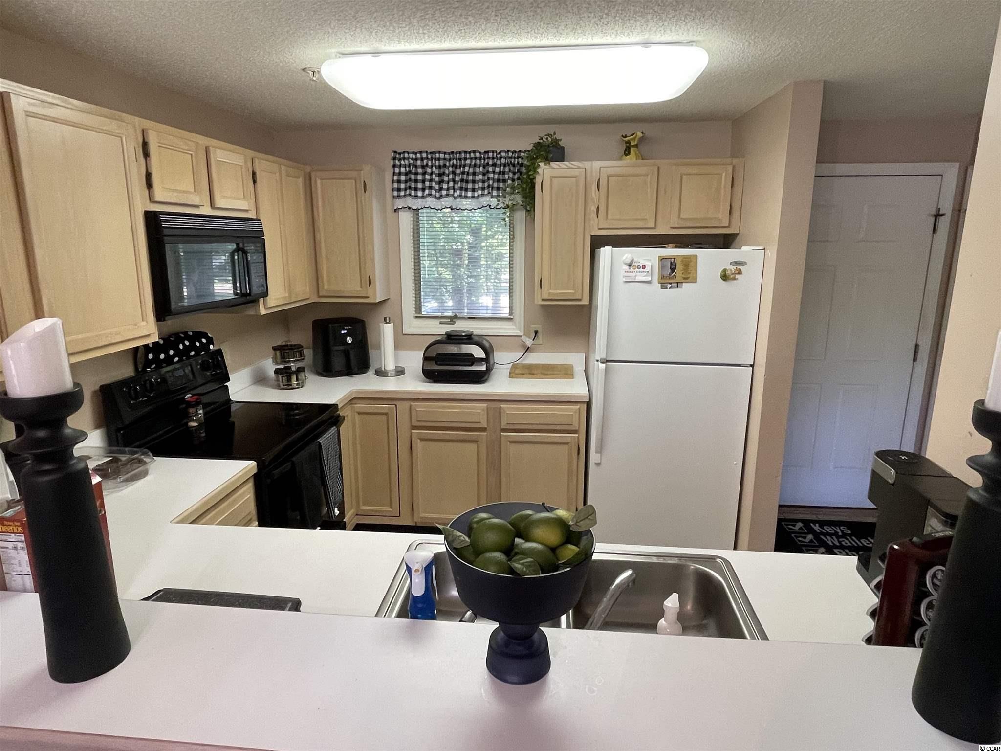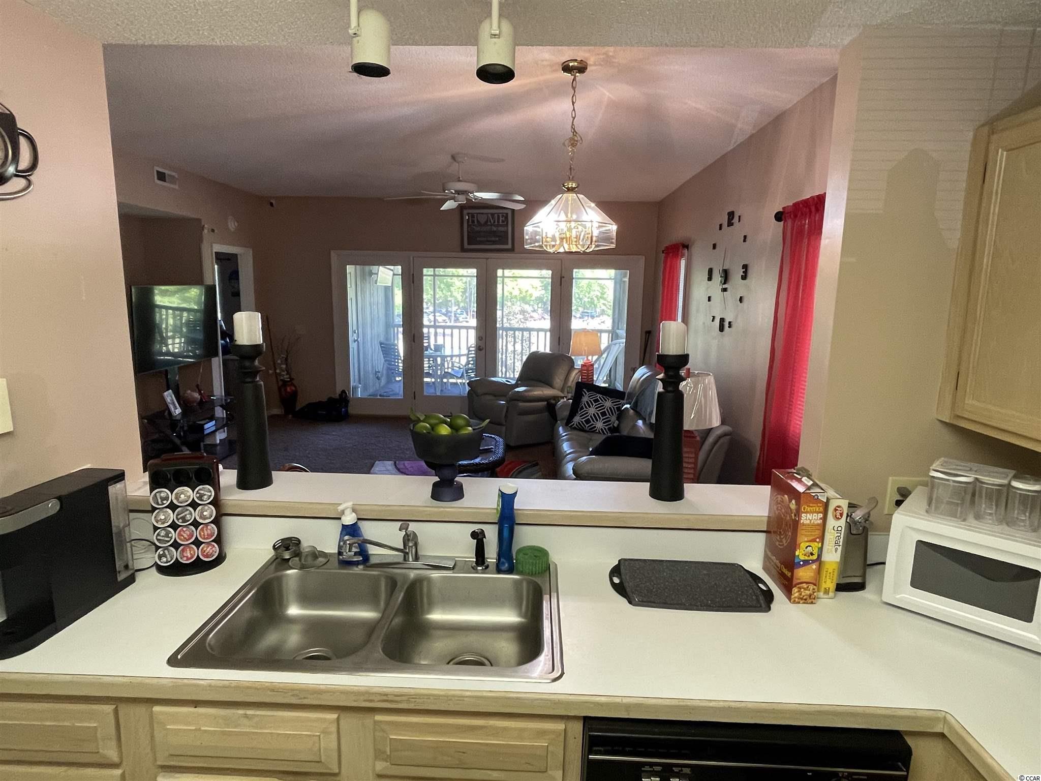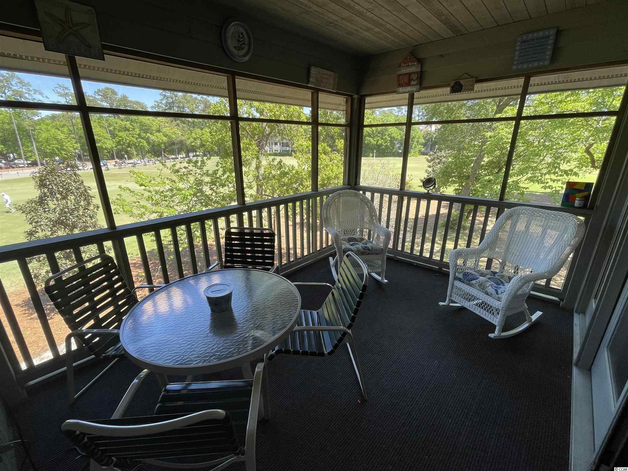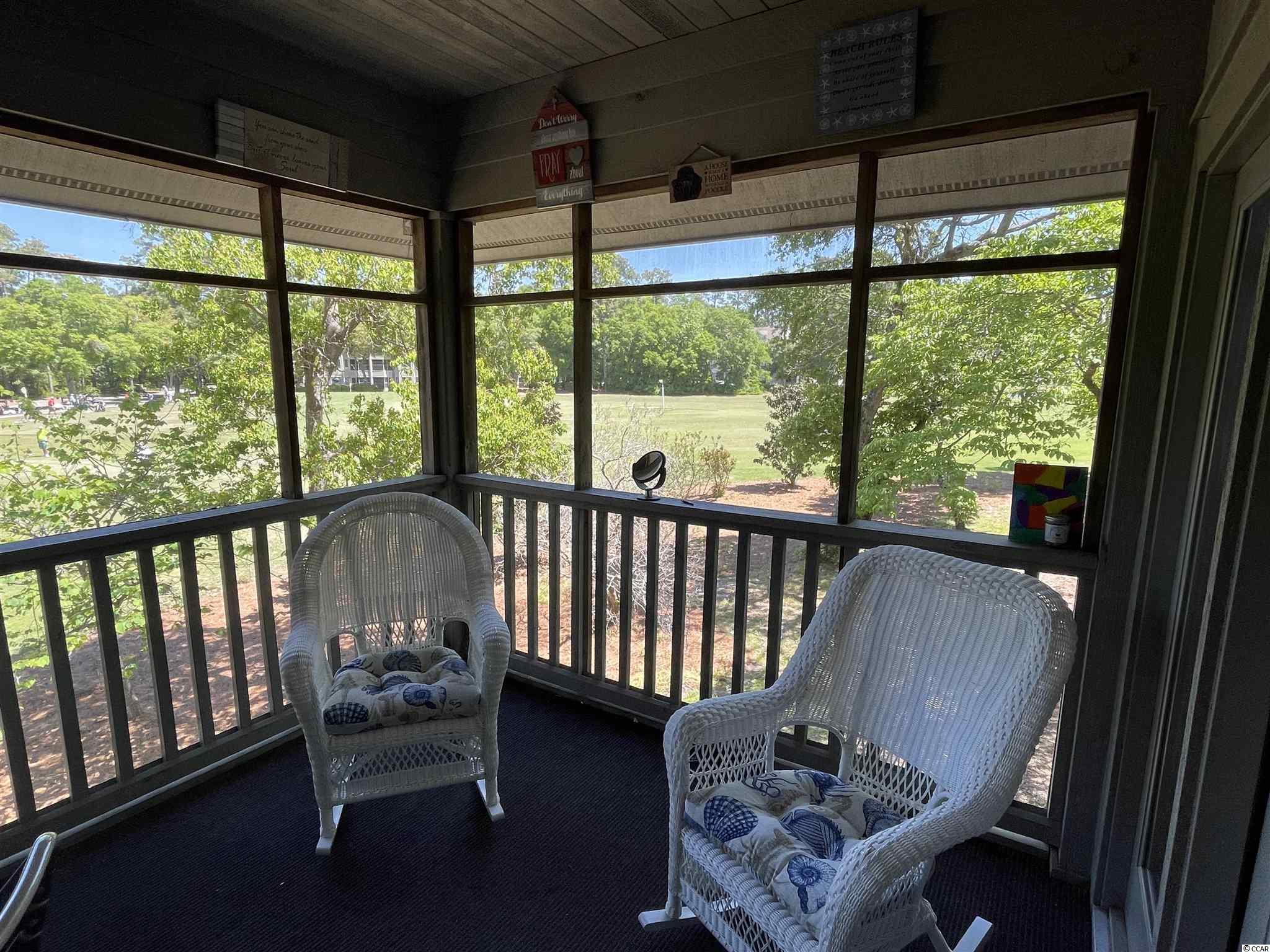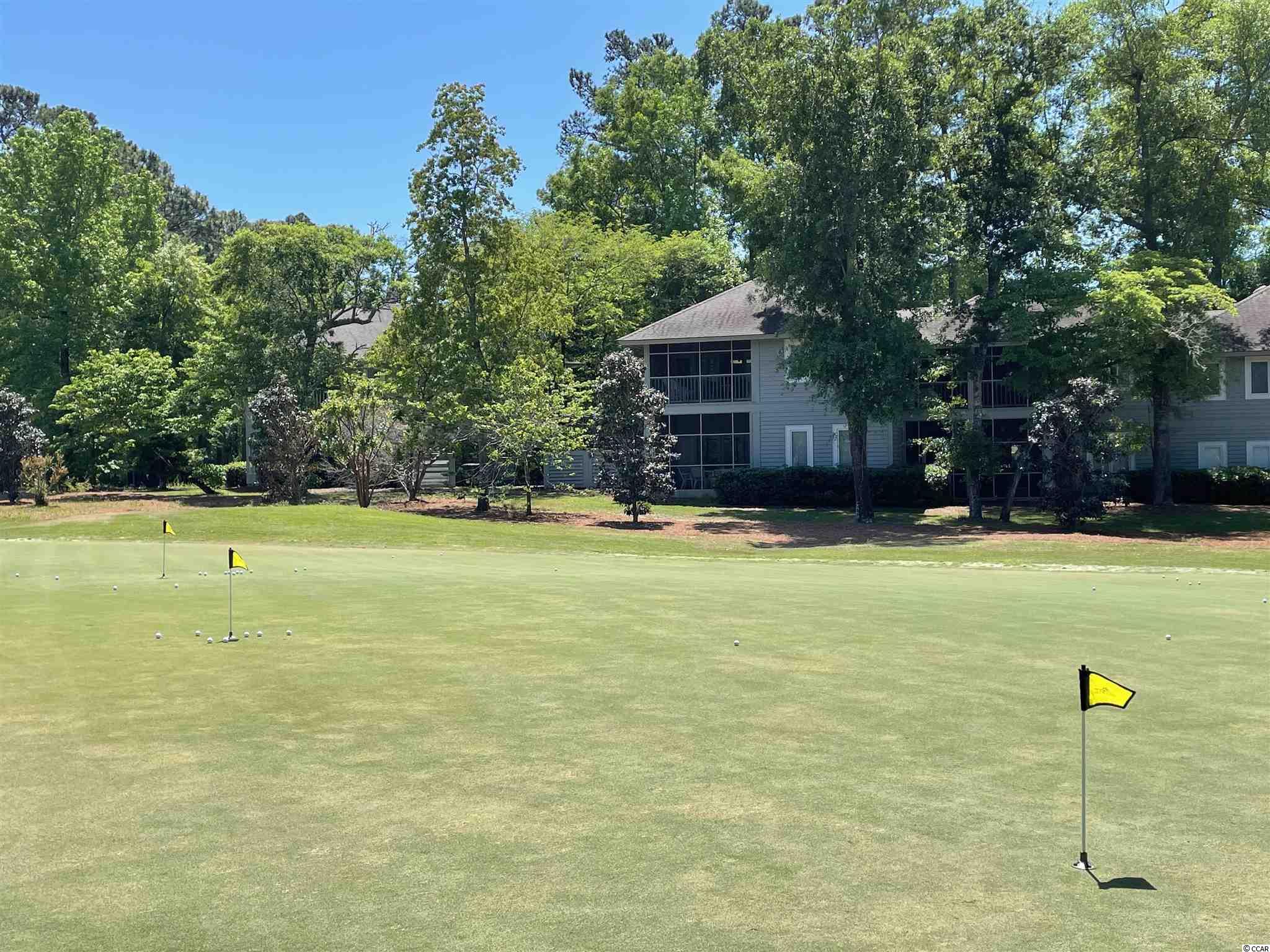 Teal Lake in Tidewater Plantation. Amazing driving range and putting green views of the Tidewater golf course from this second (top) floor, two bedroom two bathroom corner unit condo with large bedrooms, large living space, well cared for, screened in room to enjoy the breeze and front porch. Tidewater is impeccably kept and has lots of amenities including an oceanfront cabana, many pools and hot tubs, tennis courts, pickle ball court, bocce ball court, fitness center and is fully gated with 24-hour security. Renter in place.