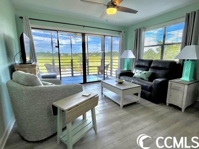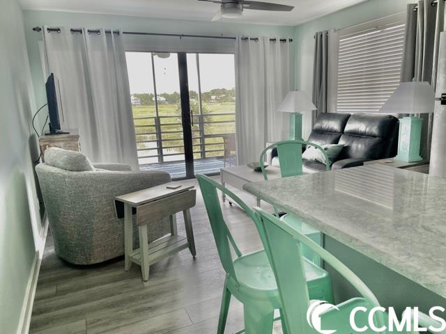 Good taste and added value are evident in this recently renovated condo in the heart of Garden City. Just one block from the ocean, this charming 2 bedroom, 1 bath unit boasts new luxury vinyl flooring, freshly painted interiors, and new orange peel ceilings. The updated kitchen features gray wooden cabinets, quartz countertops, stainless steel appliances, and a peninsula with additional storage and bar stools. The bathroom has been updated with a tiled walk-in shower and new vanity and toilet. A Rudd HVAC unit and hot water heater, both installed in 2019, are additional evidence of the care involved in the maintenance of this property. Other features include all new ceiling fans and a stackable washer/dryer. New den furniture with a power reclining love seat completes the remodel and is included in the sale. Stunning marsh and ocean views expand the interior, and a marsh side screened porch with ceiling fan provides additional living space and cool ocean breezes. A covered front balcony and a private storage room and parking under the complex add to the convenient, carefree living of this home. The Marshside Inn complex offers additional amenities including plenty of parking, a BBQ and picnic area, bathrooms, and a pool with hot tub and ample decking - all adjacent to the marsh and its beautiful vistas. This rare find is just steps from the ocean and the shops, restaurants, and entertainment of Garden City. Put this on your must-see list and prepare to be charmed.