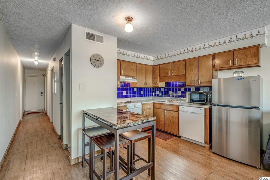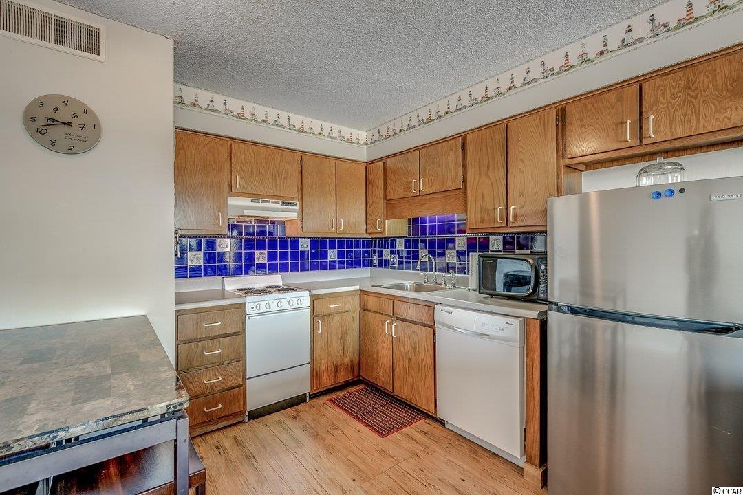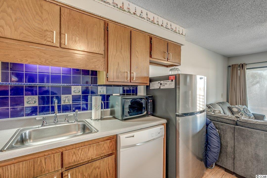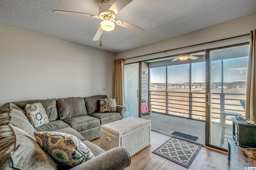 Top floor unit in the 3 story Marshside Inn complex that is situated second row from the beach. Unit features 2 bedrooms and 1 bathroom with stacked washer and dryer in the bathroom. Gorgeous views of the marsh and inlet/creek from the living room and large screened in porch. Easy to care for vinyl plank floors throughout. Unit comes furnished and with all appliances except for personal items, TV in the living room that is sitting on the coffee table, contents of kitchen and bathroom cabinets, and a picture on the wall in the hallway. Marshside Inn features an outdoor pool and hot tub with bathroom facilities, 2 common area charcoal grills with picnic tables, attached ground floor storage for each unit, and covered parking. Perfect location in the heart of Garden City that is within walking distance to the beach, restaurants, arcade, pier, and nightlife. Grocery store, pharmacy, and convenience stores a mile or less away. Improvements made in the unit are new ac unit in July 2016, new washer and dryer in August 2018, new hot water heater in August of 2019, new refrigerator in April 2020, new window in master bedroom, replaced bathroom vanity and toilet in July 2020. Perfect property for a beach getaway or investment opportunity. Schedule your showing today!