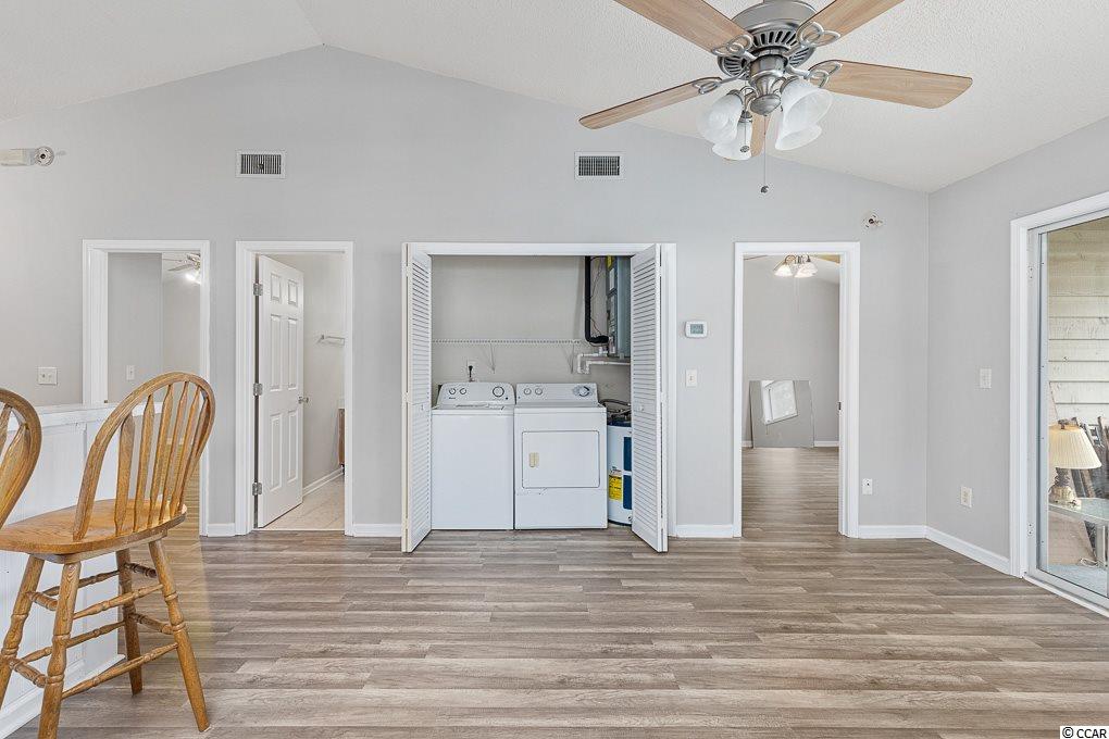 Your chance to live at the beach for less! This Island Green Condo has brand new appliances, floors and freshly painted throughout. Ready for it's next owner. This home is located on the 3rd floor and features a large, screened in balcony with a view of the pool. Vaulted Ceilings make the living space very airy and spacious. This is the perfect home for someone looking to get out of the renting rat race and own for less! Looking for an investment property? These units can make for great long term rentals. Island Green is situation off of HWY 707 with easy access to the new HWY 31 connection. Whether heading north into Myrtle Beach or south into Murrells Inlet or Litchfield, you're close to everything you need including Golf and Beaches. Make this one yours! HOA Fee includes water, sewer, trash pickup and Cable as well as access to two pools and amenities center with indoor pool.