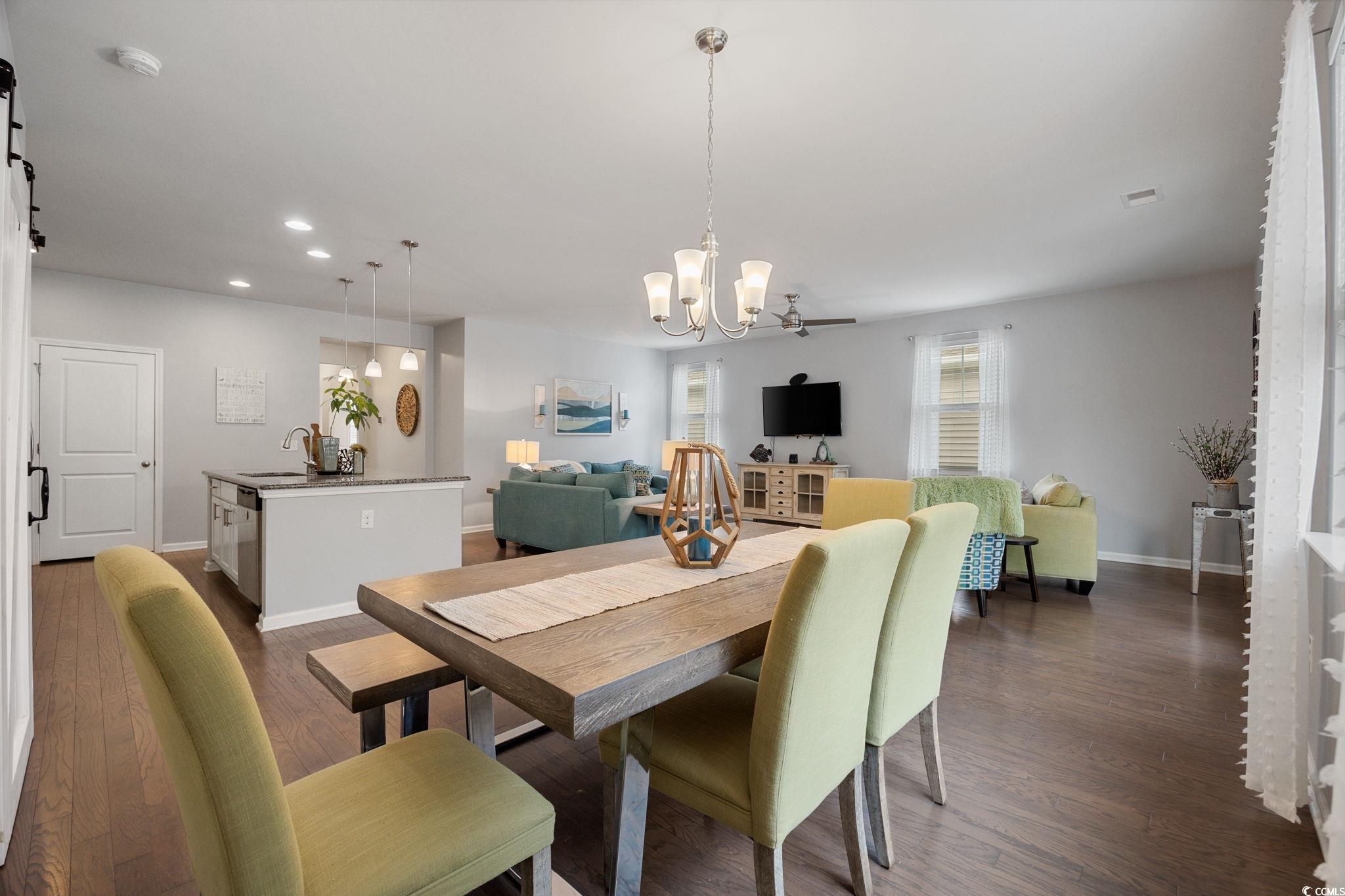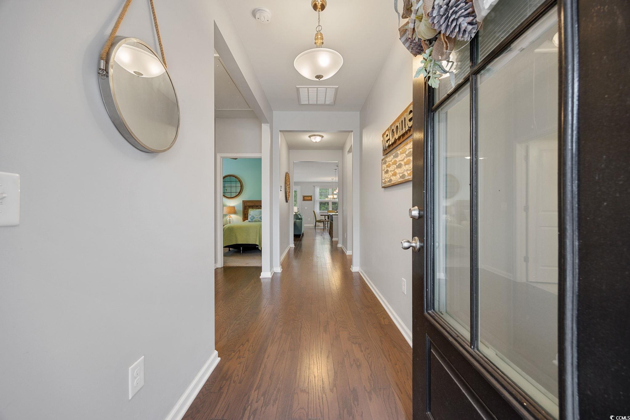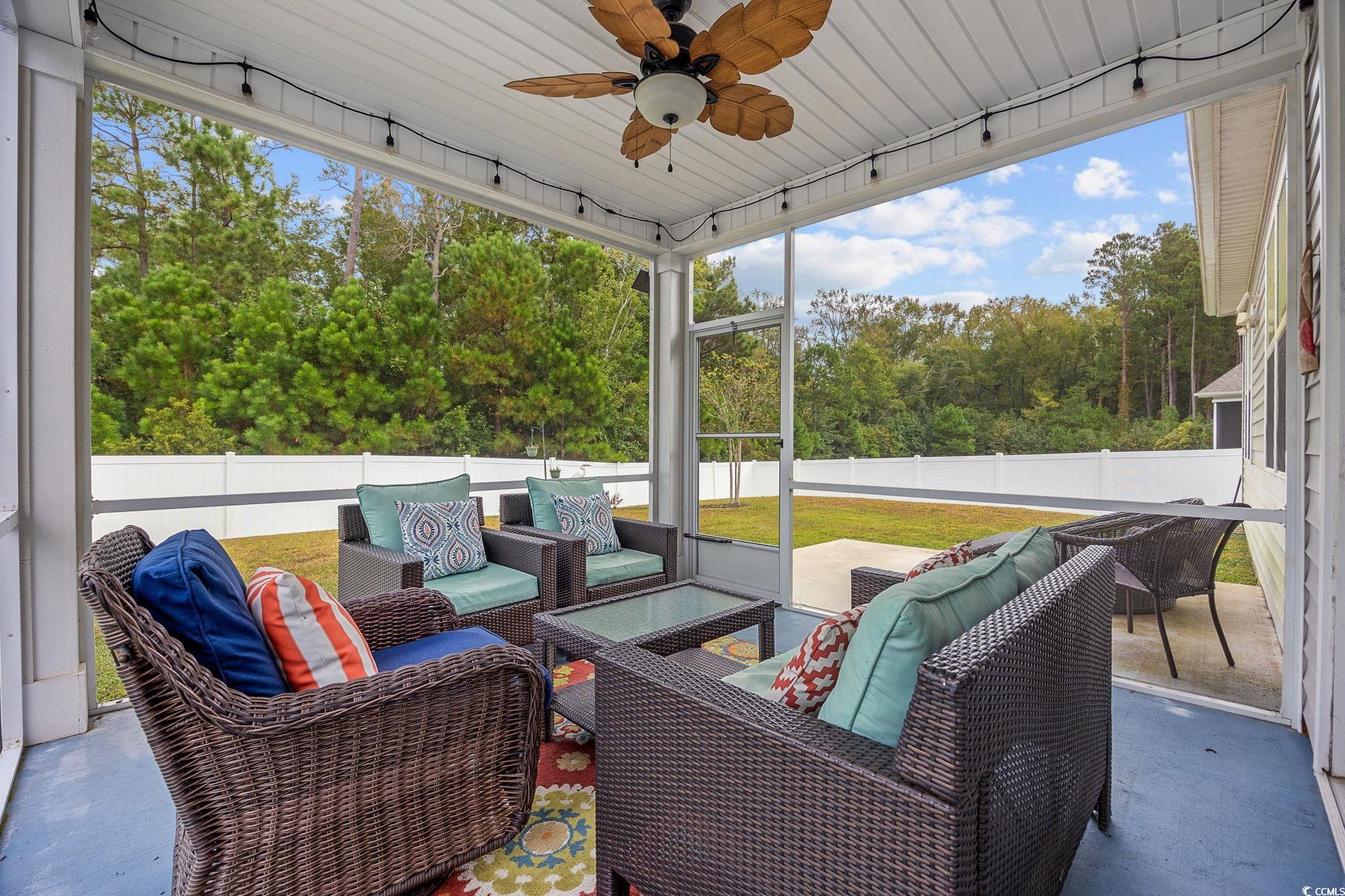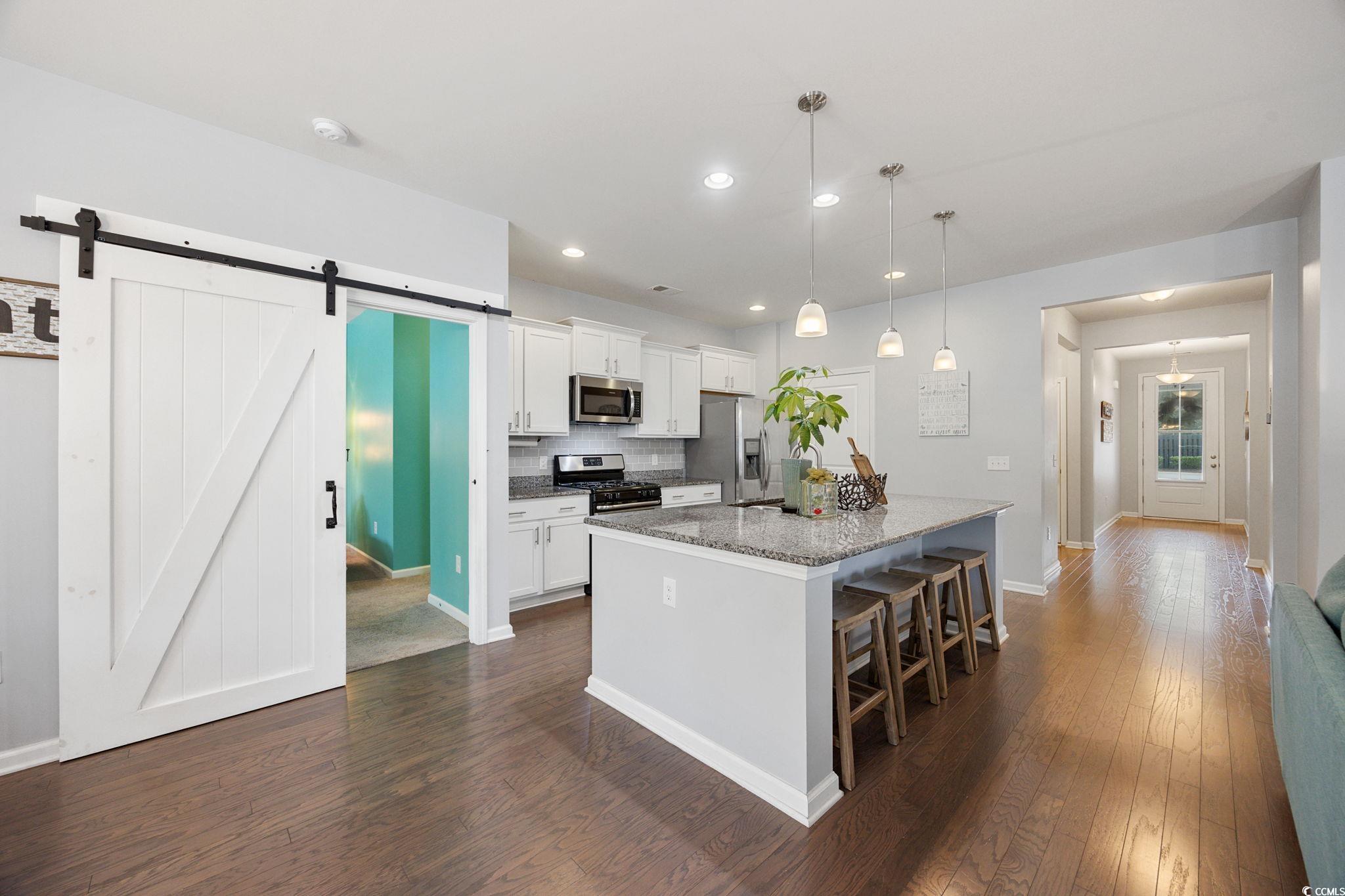 Welcome home to this move-in ready 3-bedroom, 2-bath home tucked away in Hidden Brooke. Located in Little River near the North Myrtle Beach line and in the highly desirable North Myrtle Beach school district, this home full of upgrades has everything you need. This unbeatable location is on a private cul-de-sac and backs up to peaceful, protected woods for extra privacy. Inside, youll find an inviting foyer leading into an open-concept floor plan with a split-bedroom design. The kitchen includes granite countertops and an island with a breakfast bar, complemented by stainless steel appliances and a chic tile backsplash. It seamlessly flows into the dining area and living room, both filled with abundant natural light. The spacious master suite showcases a sliding barn door entry, walk-in closet, and a spa-like ensuite bath with dual vanities, a soaking tub, and a glass-enclosed shower. Additional highlights include LVP flooring throughout the main living areas, carpeted bedrooms, tiled bathrooms, and a dedicated laundry room with washer and dryer hookups. Step outside to enjoy a screened-in porch, extended patio, and a large privacy-fenced backyard, perfect for relaxing or entertaining. Complete with an attached two-car garage, this home truly offers the best of comfort and convenience in a prime location. Amenities include a spacious community swimming pool and a serene pond. Book your showing today!